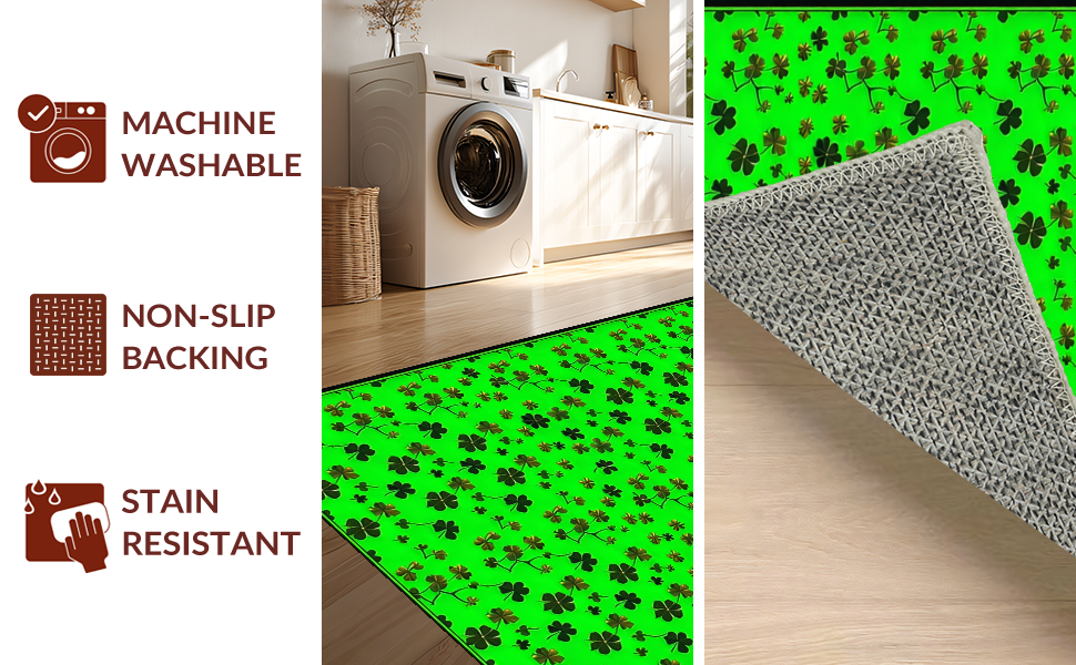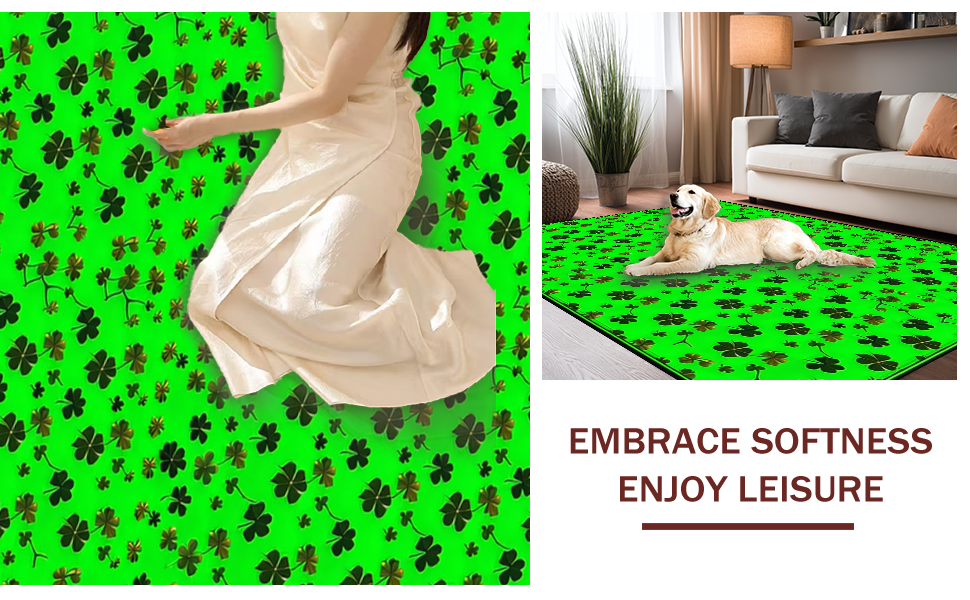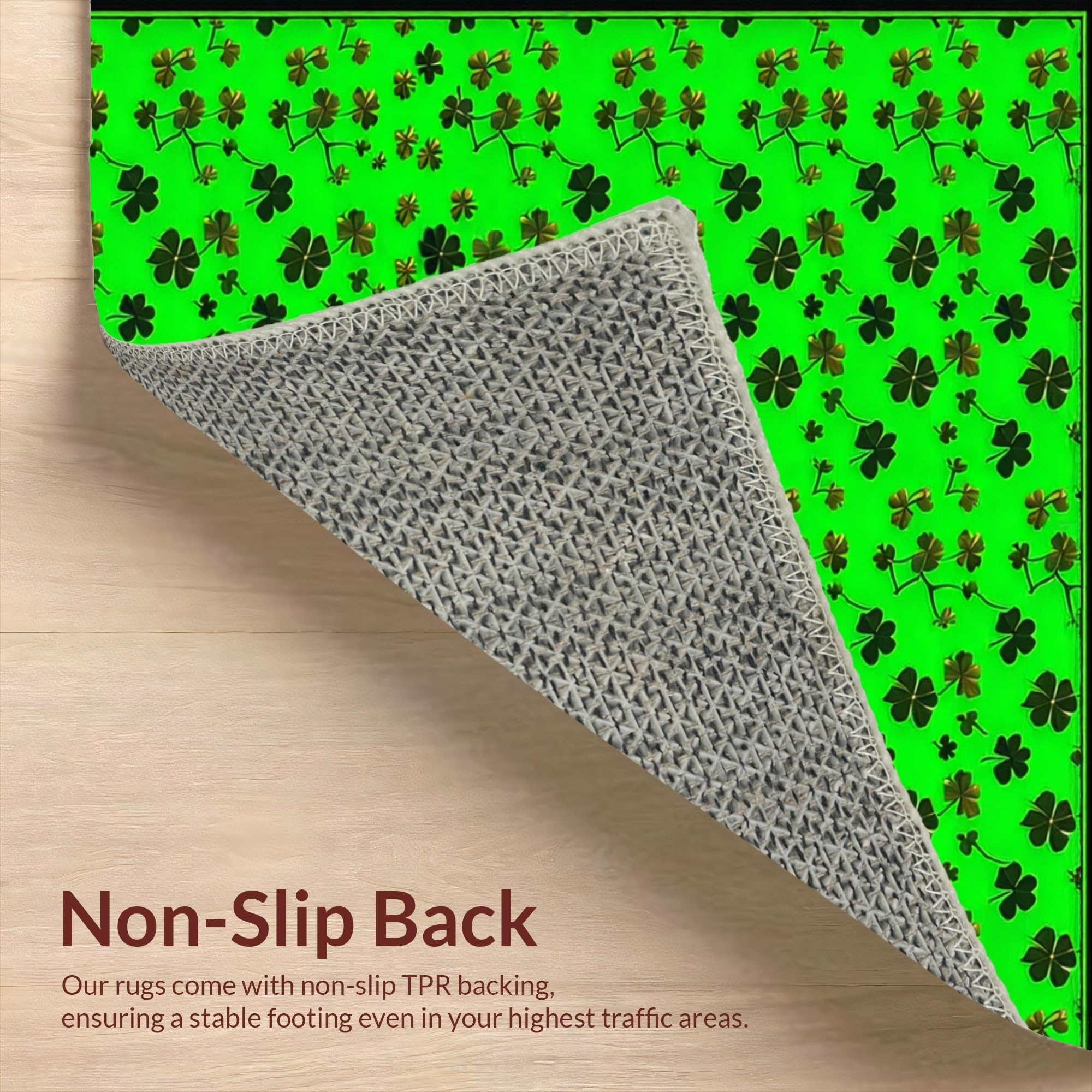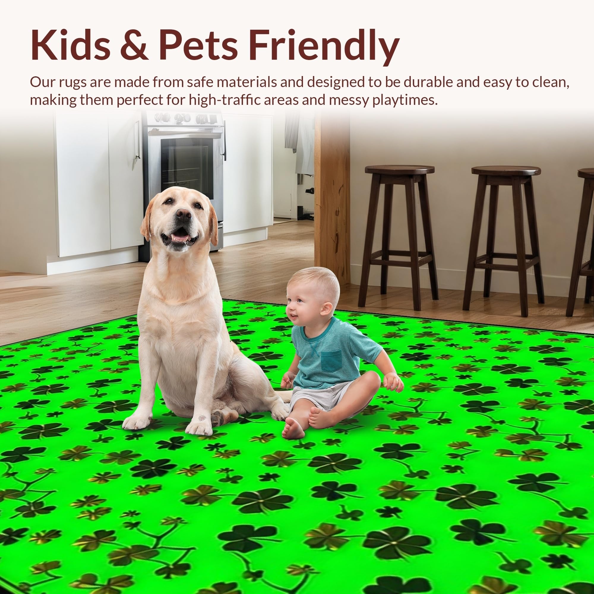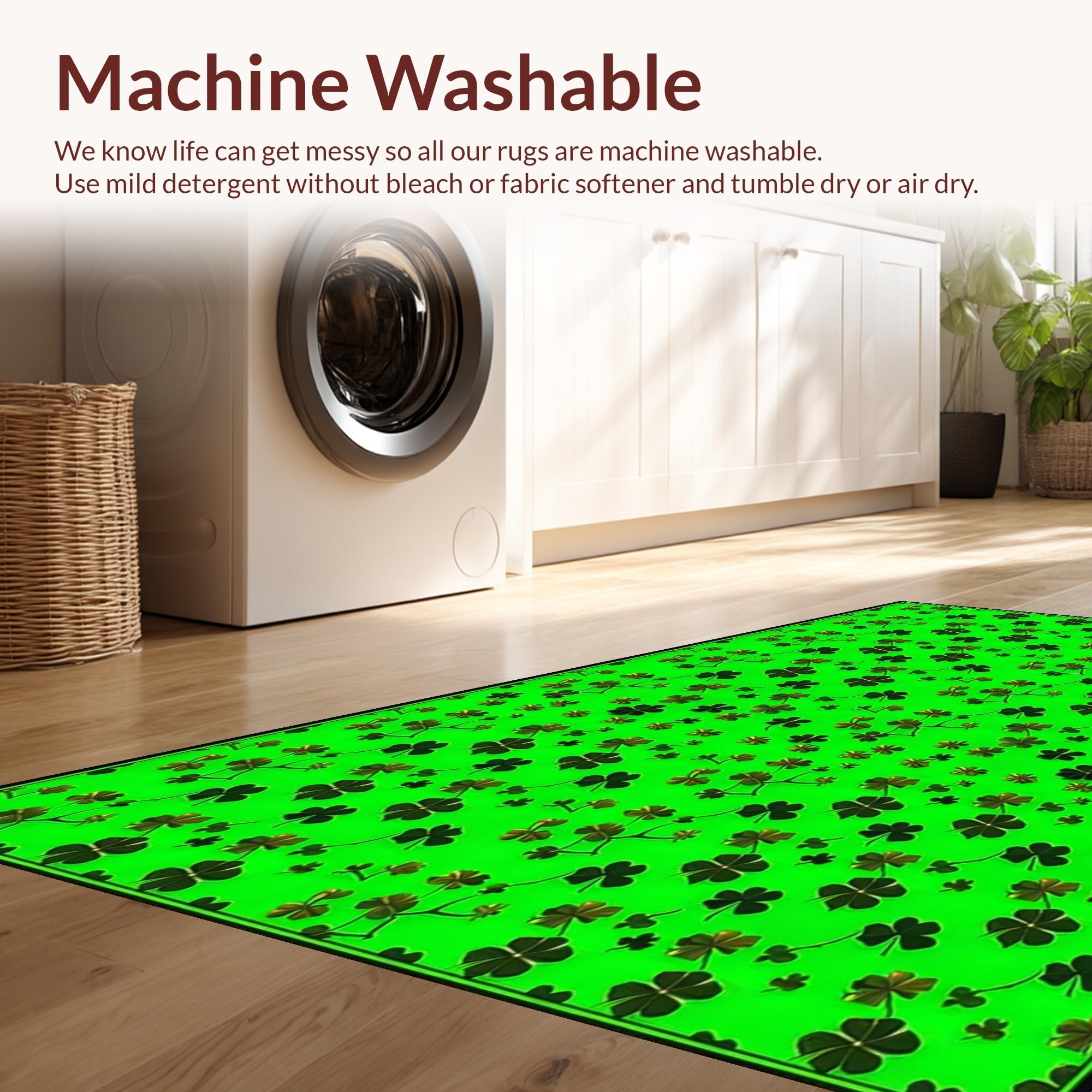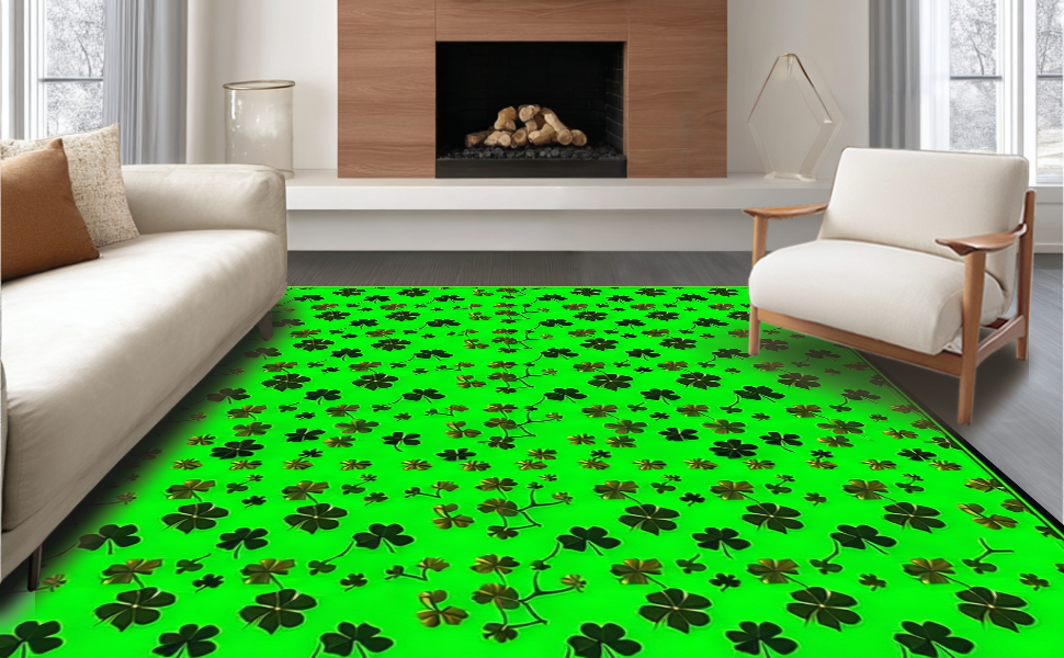Ultra Soft Area Rug, Non Slip, Stain Resistant, Washable Area Rugs for Living Room, Bedroom, Bold Graphic Shamrock Artistry(Green) Overview:
