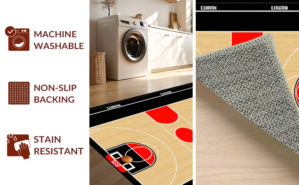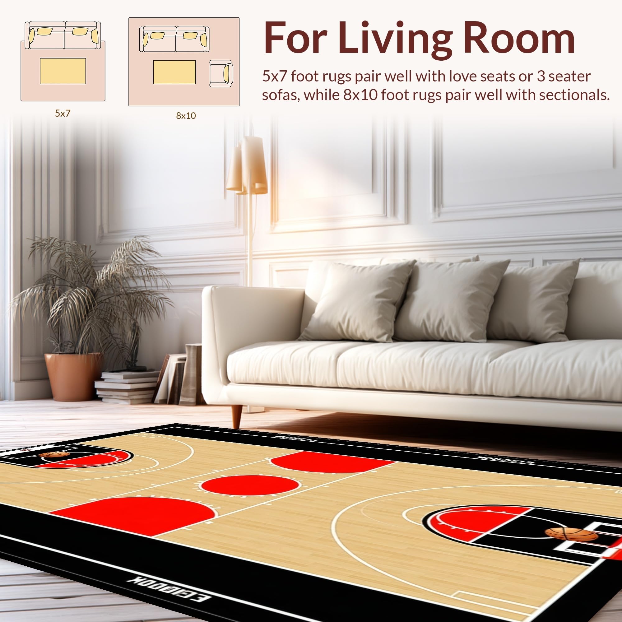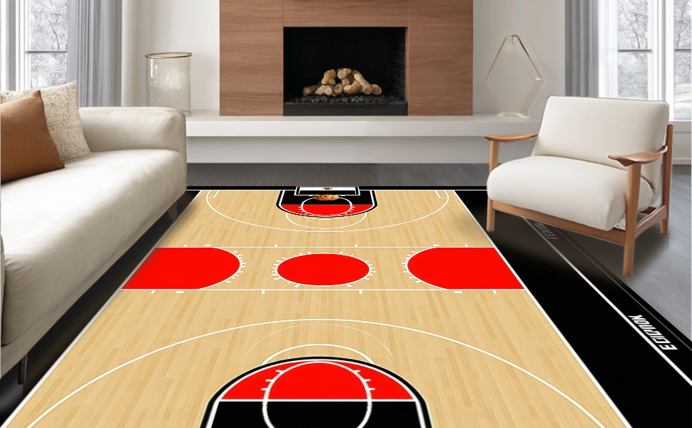 Ultra Soft Area Rug, Non Slip, Stain Resistant, Washable Area Rugs for Living Room, Bedroom, Bold Graphic Sports Theme Decor(Black) Overview: