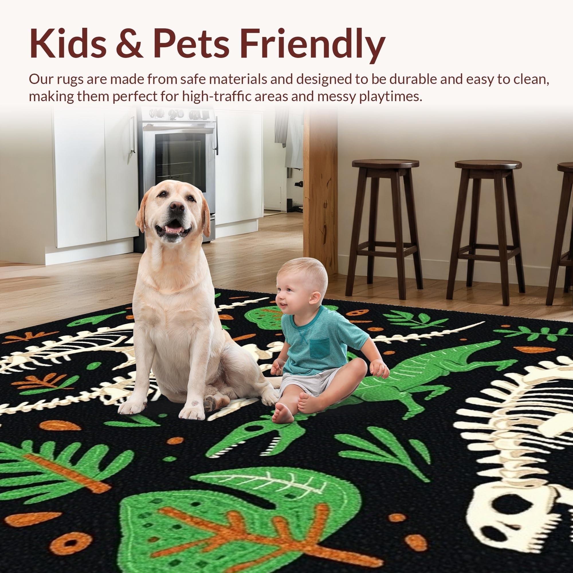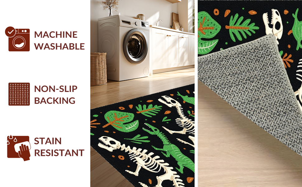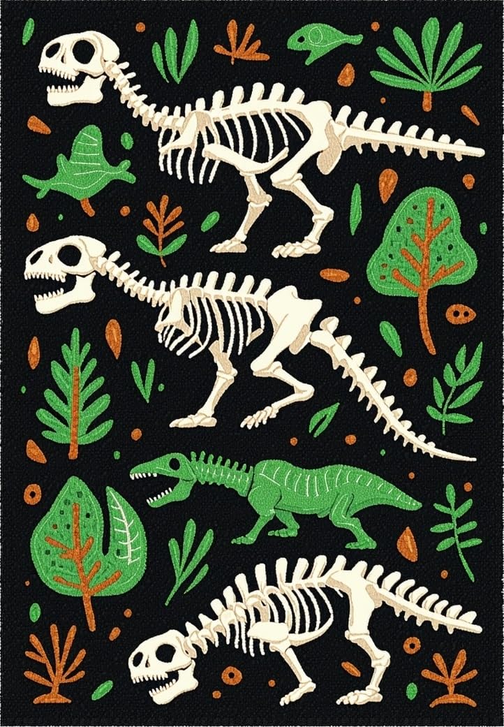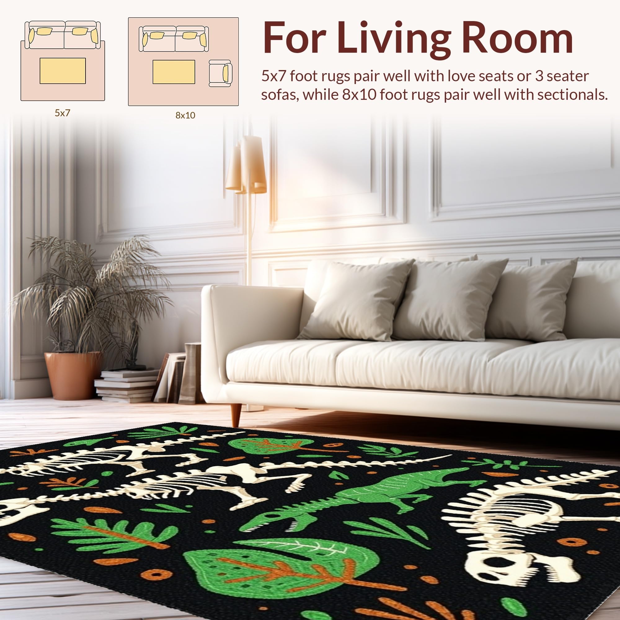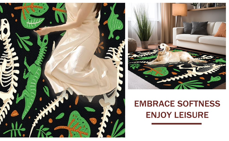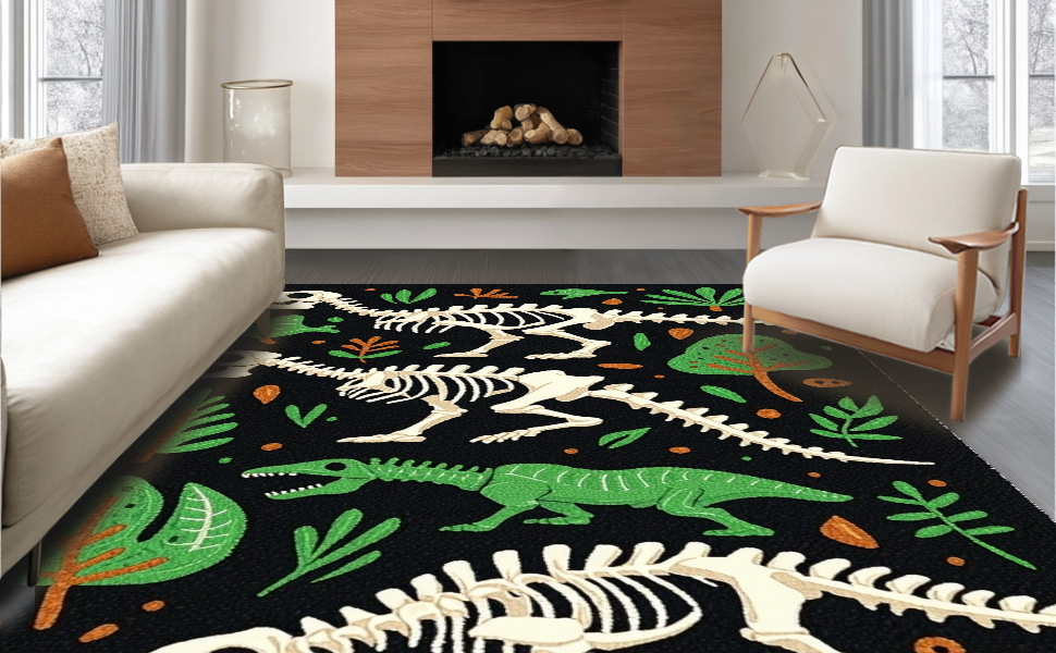 Ultra Soft Area Rug, Non Slip, Stain Resistant, Washable Area Rugs for Living Room, Bedroom, Bold Graphic T-Rex Depiction(Black) Overview: