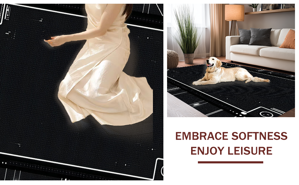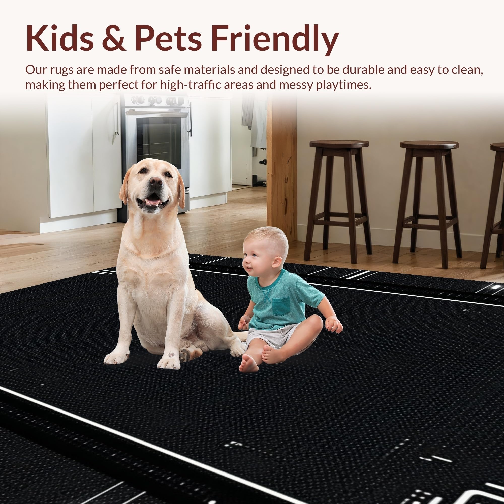 Ultra Soft Area Rug, Non Slip, Stain Resistant, Washable Area Rugs for Living Room, Bedroom, Bold Interactive Gaming Imagery(Black) Overview: