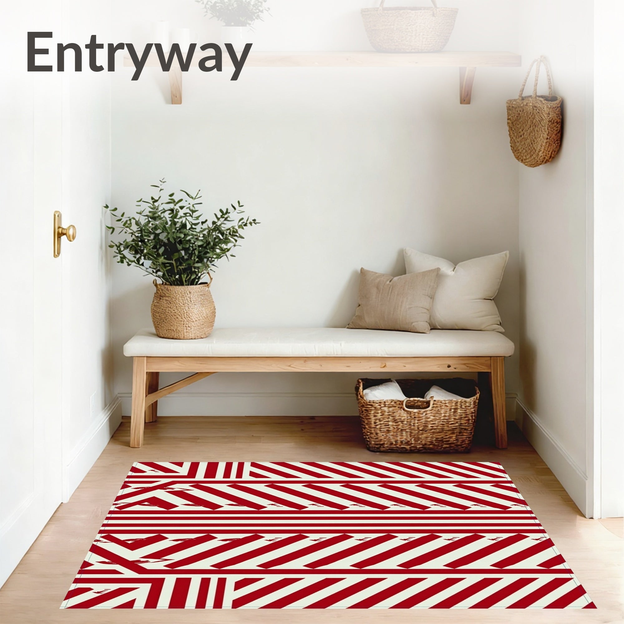 Ultra Soft Area Rug, Non Slip, Stain Resistant, Washable Area Rugs for Living Room, Bedroom, Bold Interlocking Chevron Stripes With Subtle Embellishments(Red) Overview: