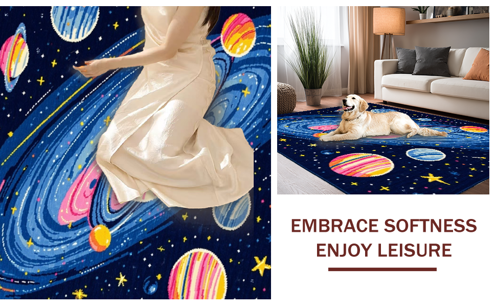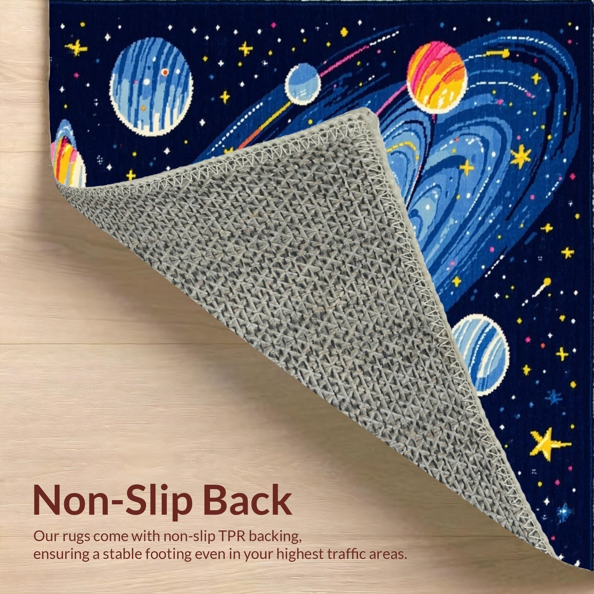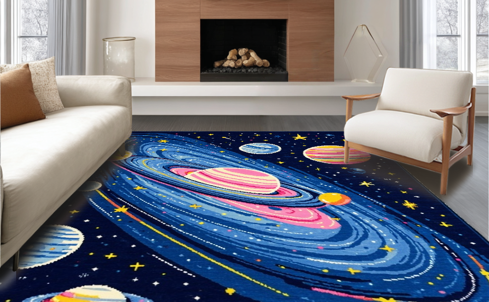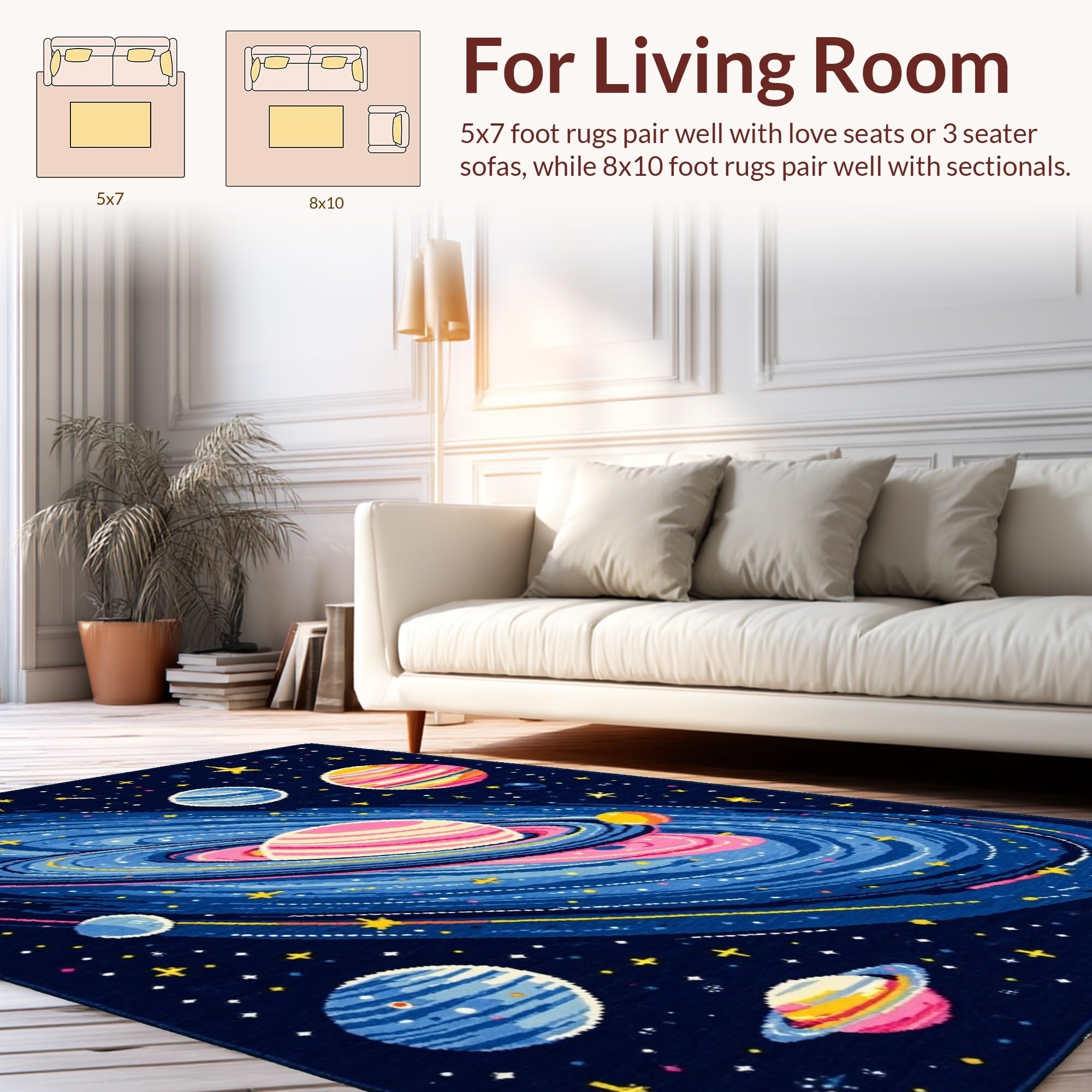 Ultra Soft Area Rug, Non Slip, Stain Resistant, Washable Area Rugs for Living Room, Bedroom, Bold Interstellar Vibe Arrangement(Blue) Overview: