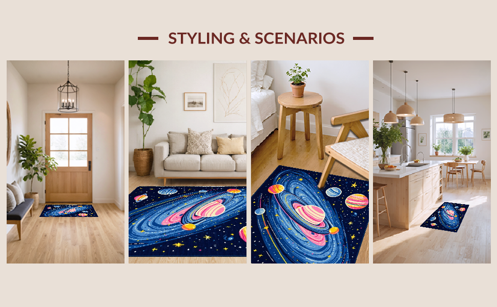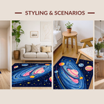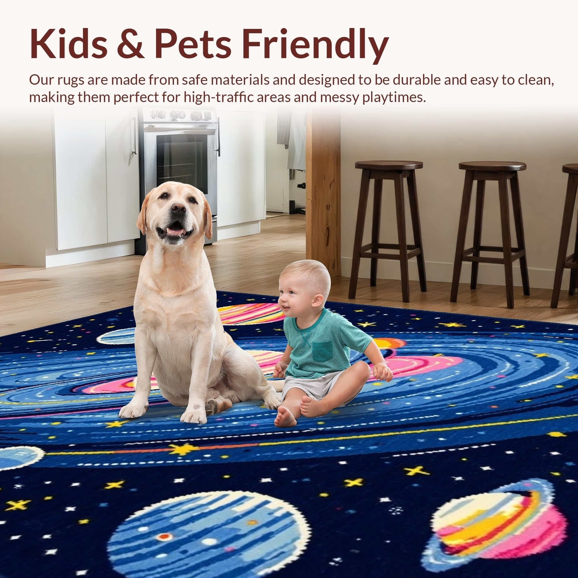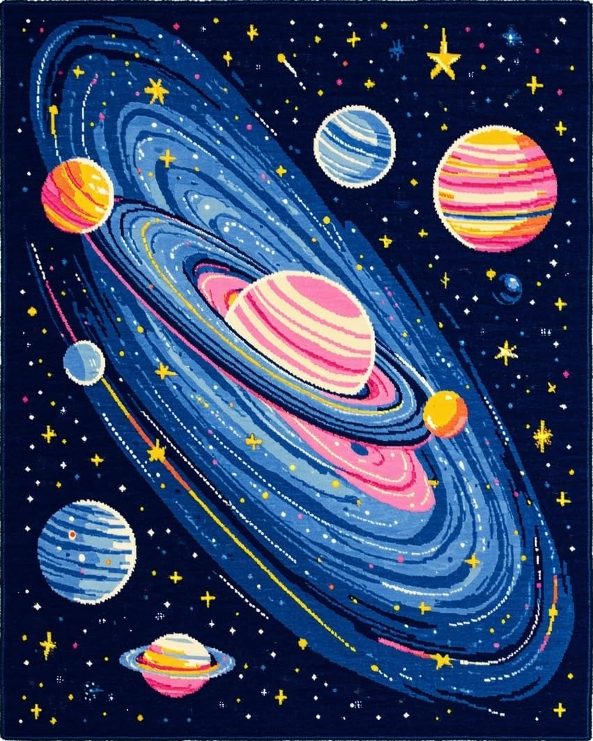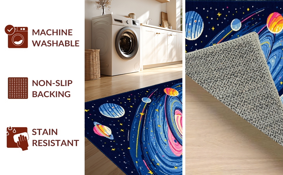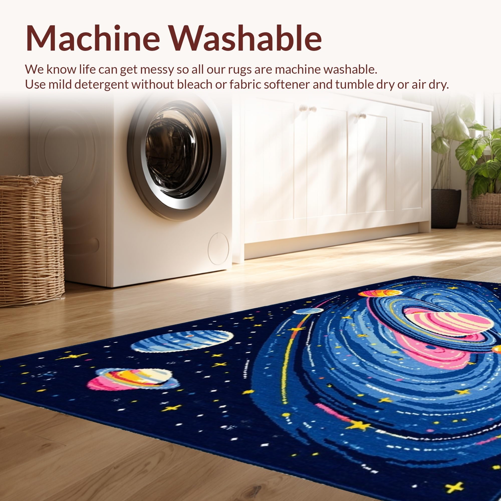 Ultra Soft Area Rug, Non Slip, Stain Resistant, Washable Area Rugs for Living Room, Bedroom, Bold Interstellar Vibe Arrangement(Blue) Overview: