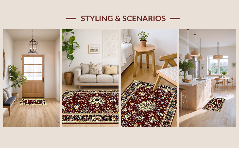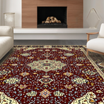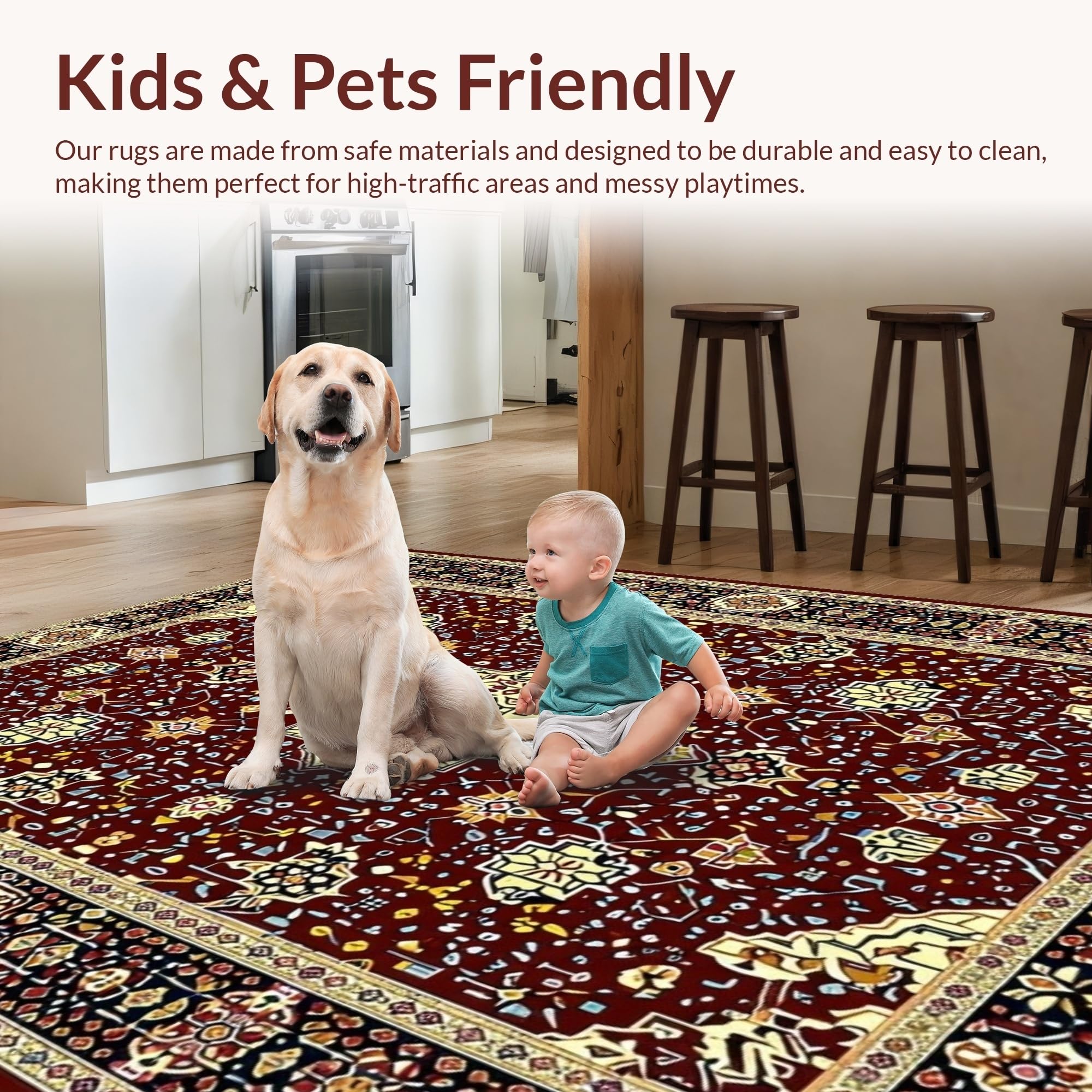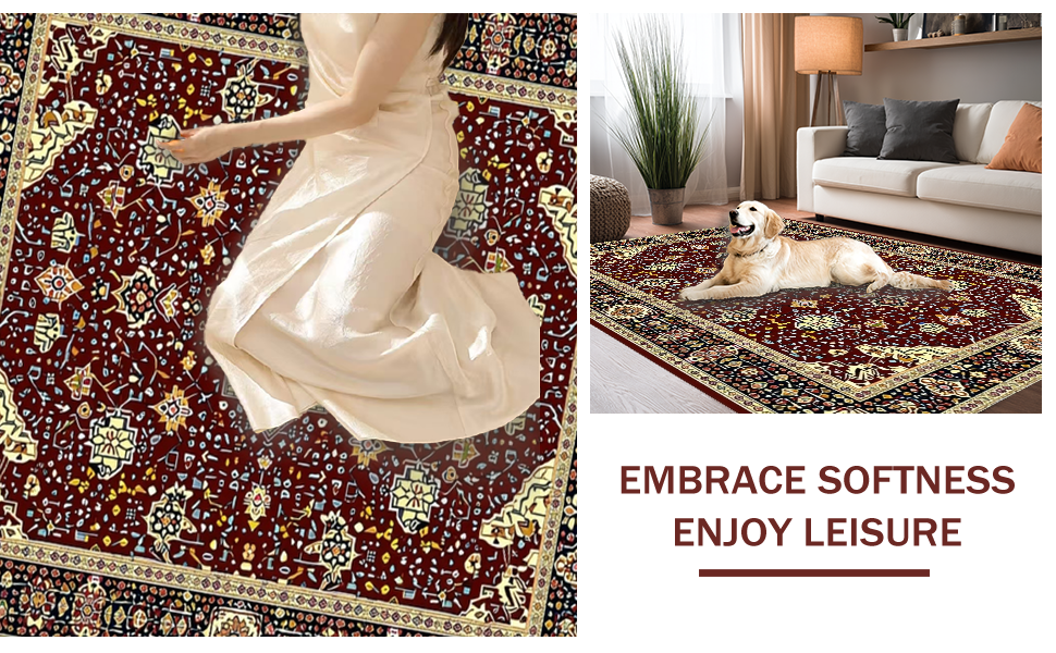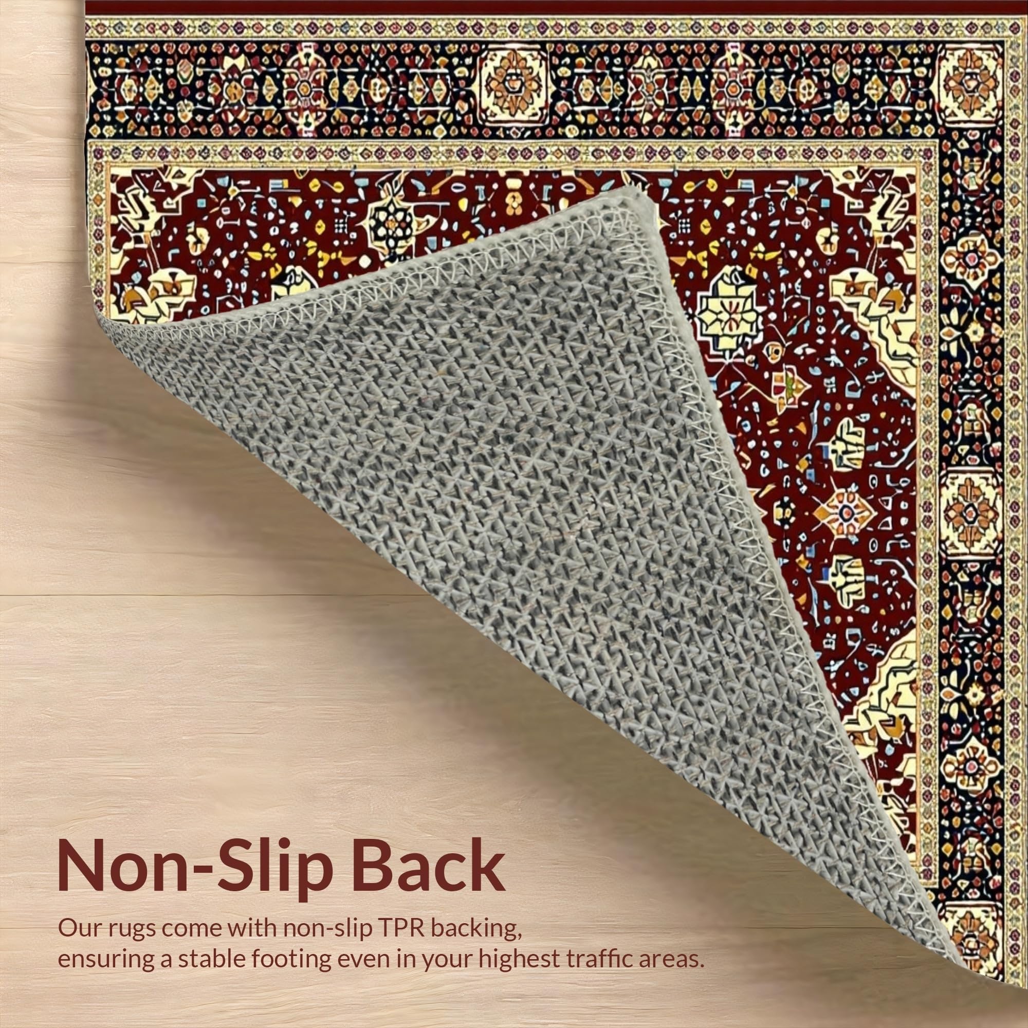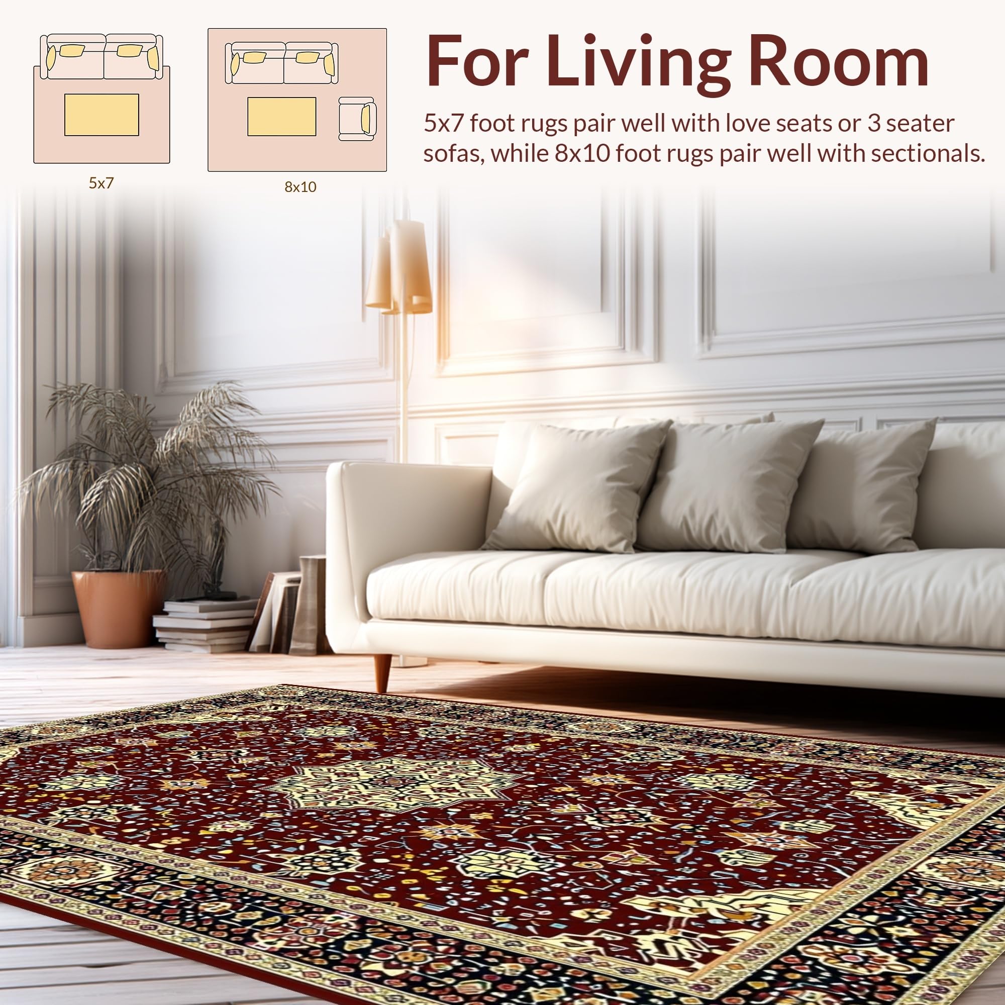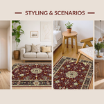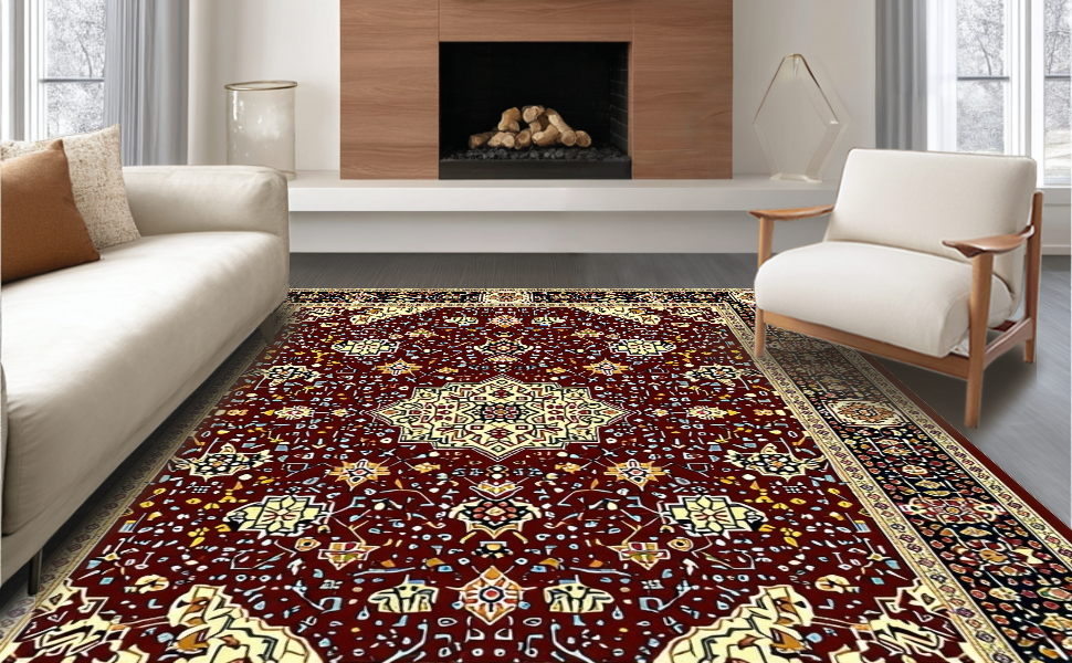 Ultra Soft Area Rug, Non Slip, Stain Resistant, Washable Area Rugs for Living Room, Bedroom, Bold Medallion Art Nouveau Influence(Red) Overview: