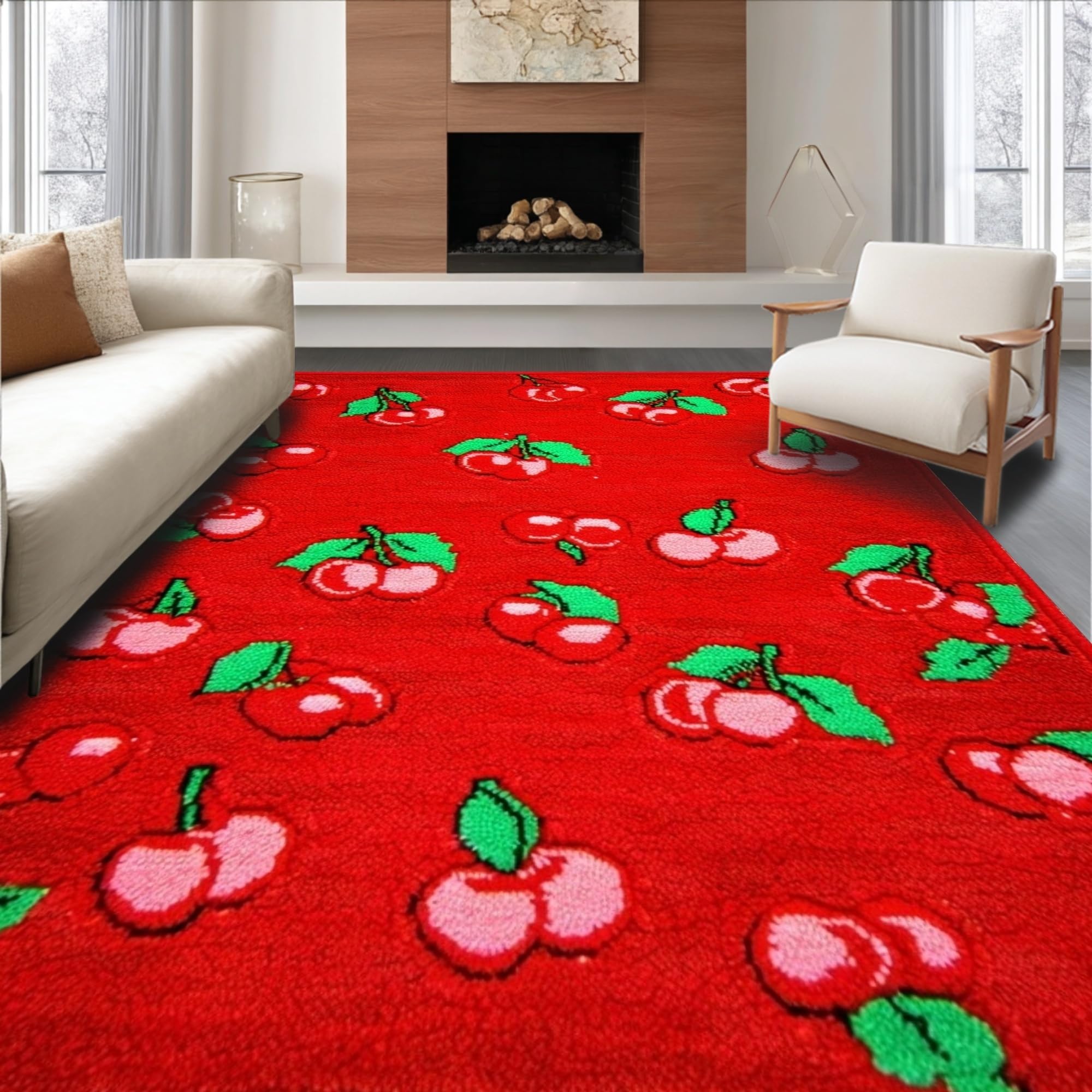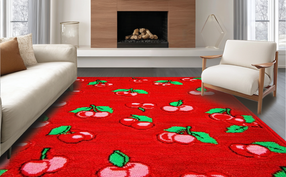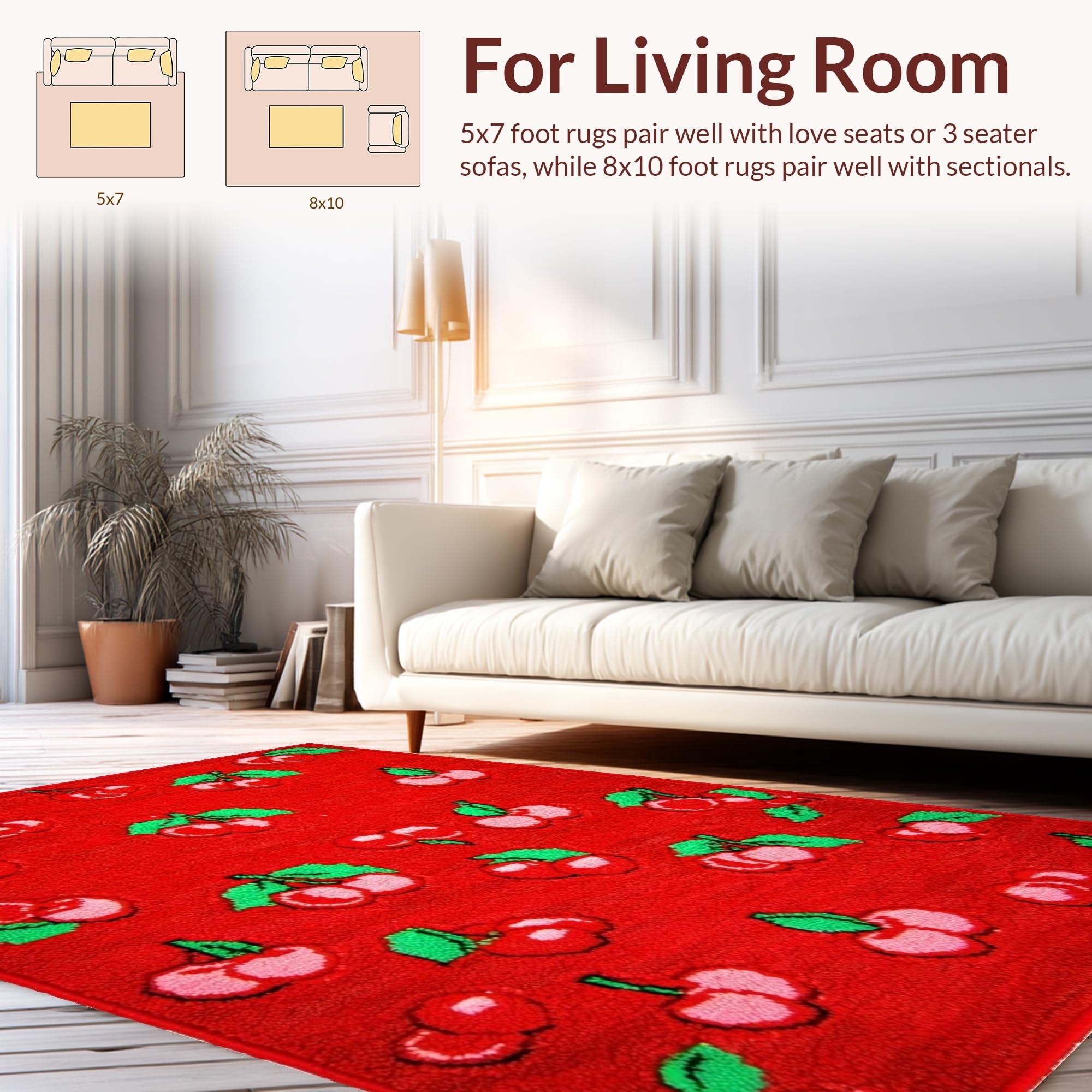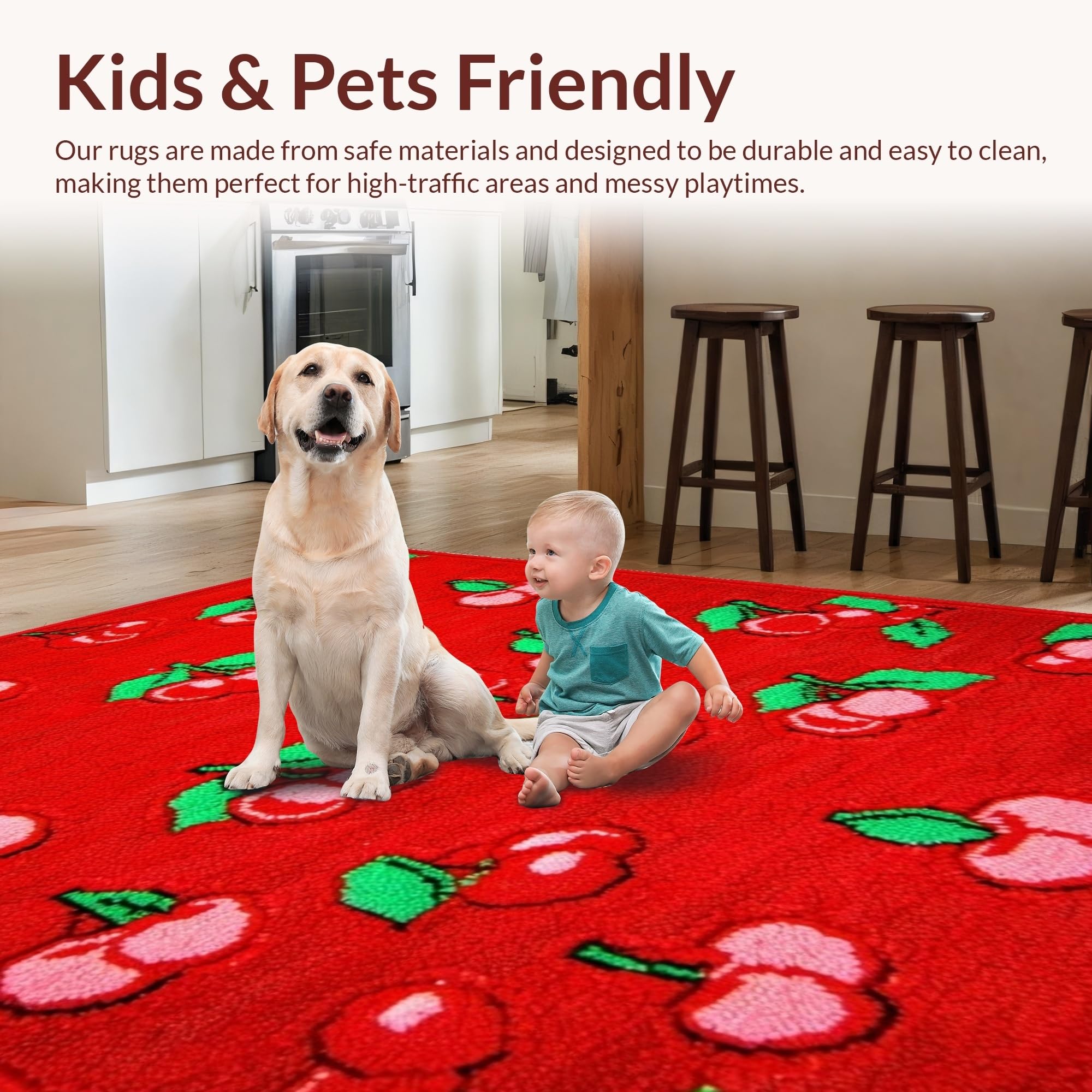 Ultra Soft Area Rug, Non Slip, Stain Resistant, Washable Area Rugs for Living Room, Bedroom, Bold Modern Fruit Illustrations(Red) Overview: