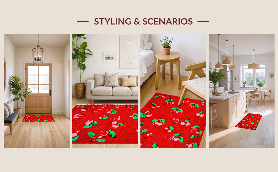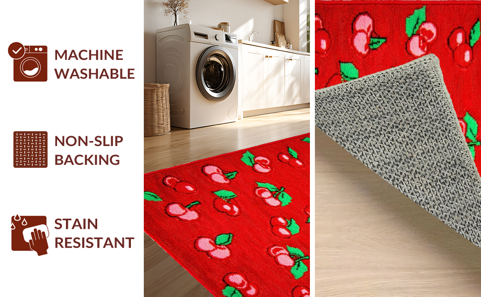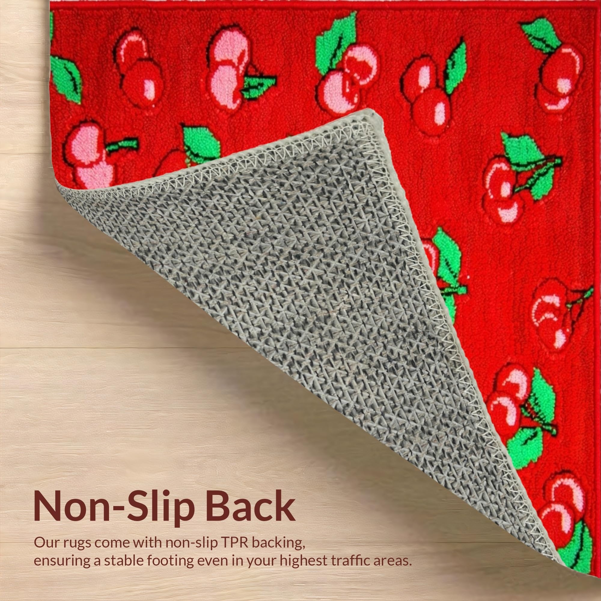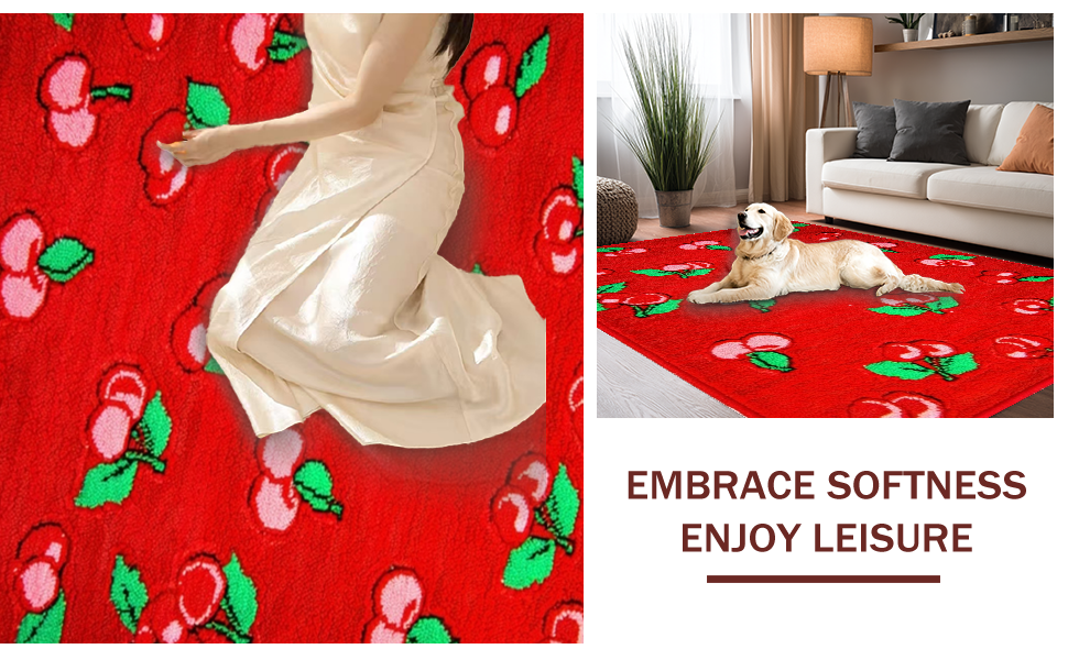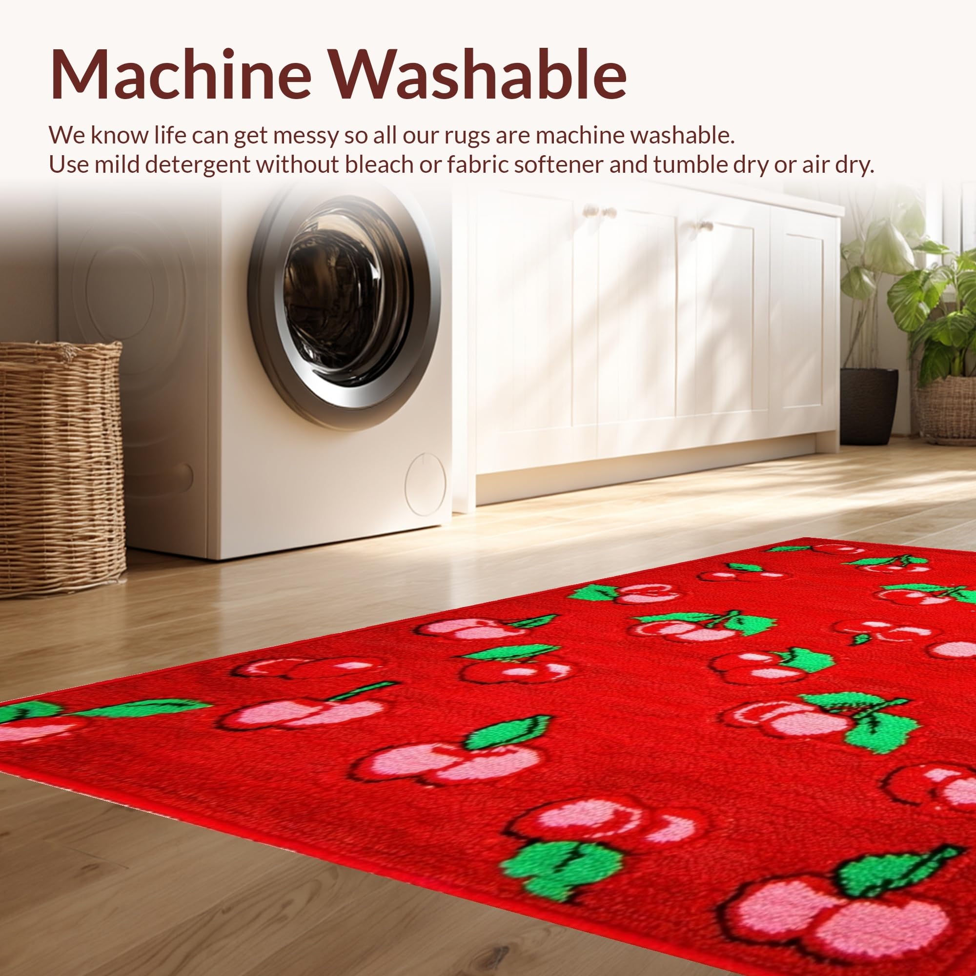 Ultra Soft Area Rug, Non Slip, Stain Resistant, Washable Area Rugs for Living Room, Bedroom, Bold Modern Fruit Illustrations(Red) Overview: