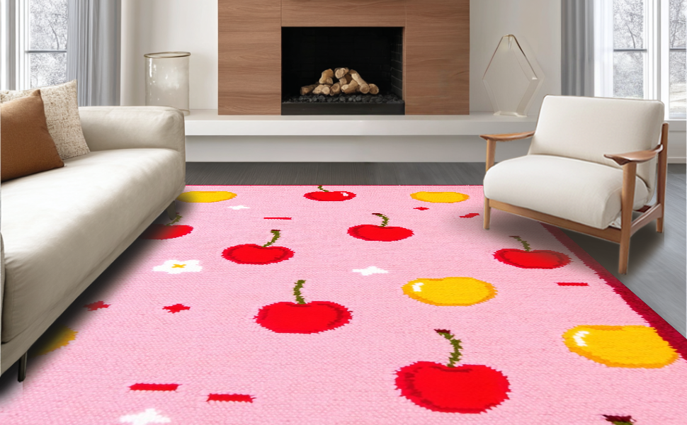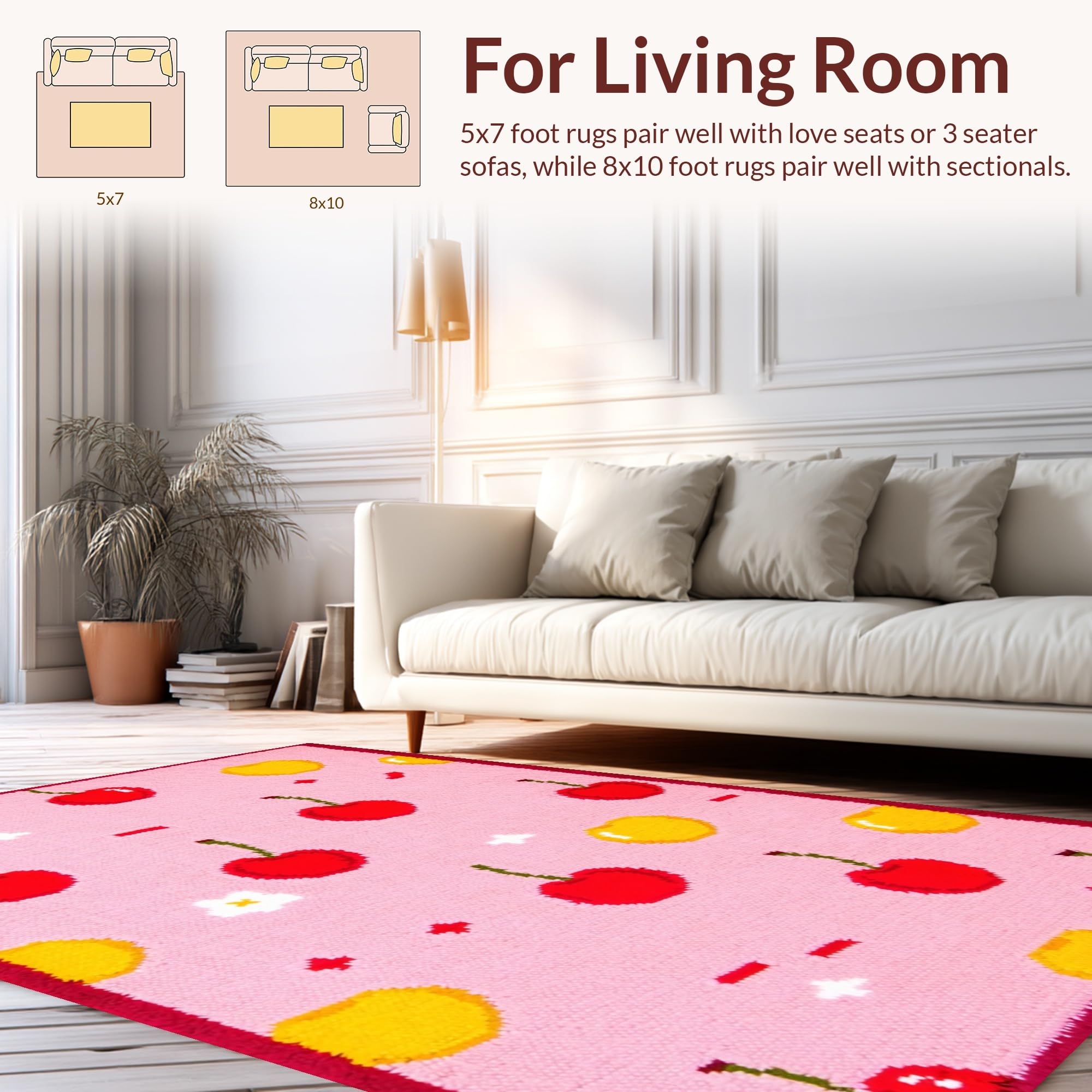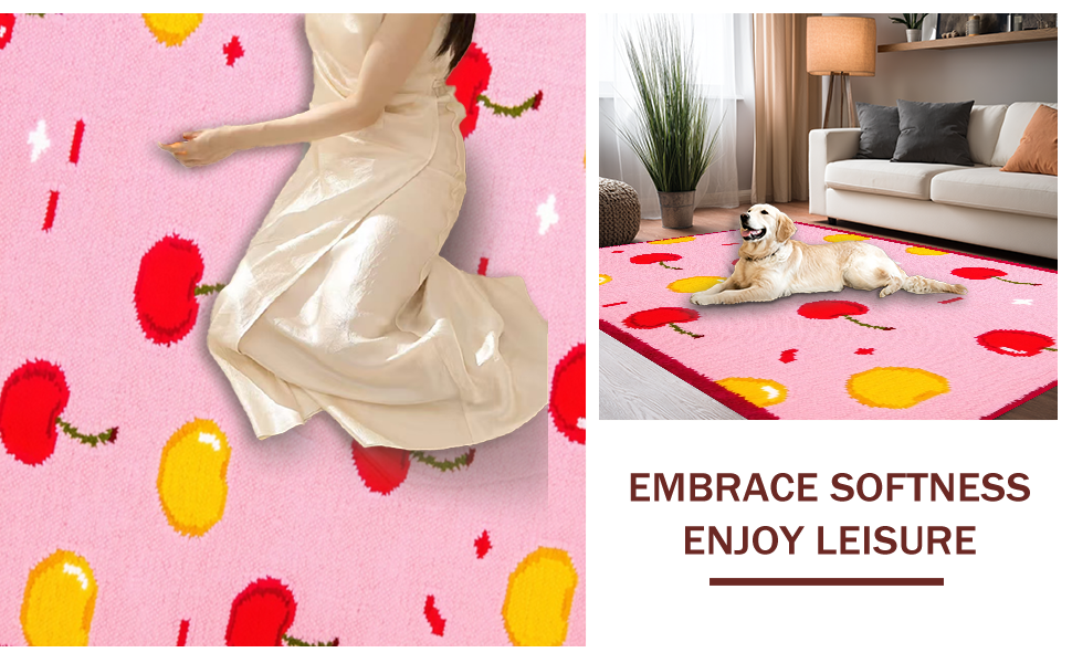 Ultra Soft Area Rug, Non Slip, Stain Resistant, Washable Area Rugs for Living Room, Bedroom, Bold Modern Kawaii Inspiration(Pink) Overview: