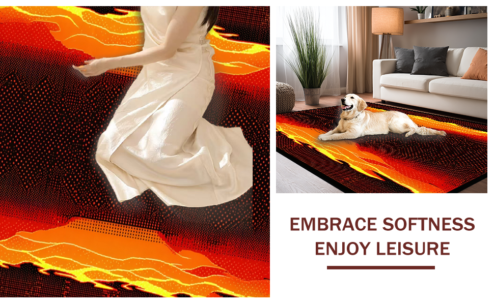 Ultra Soft Area Rug, Non Slip, Stain Resistant, Washable Area Rugs for Living Room, Bedroom, Bold Modern Lava Swirl Effect(Red) Overview: