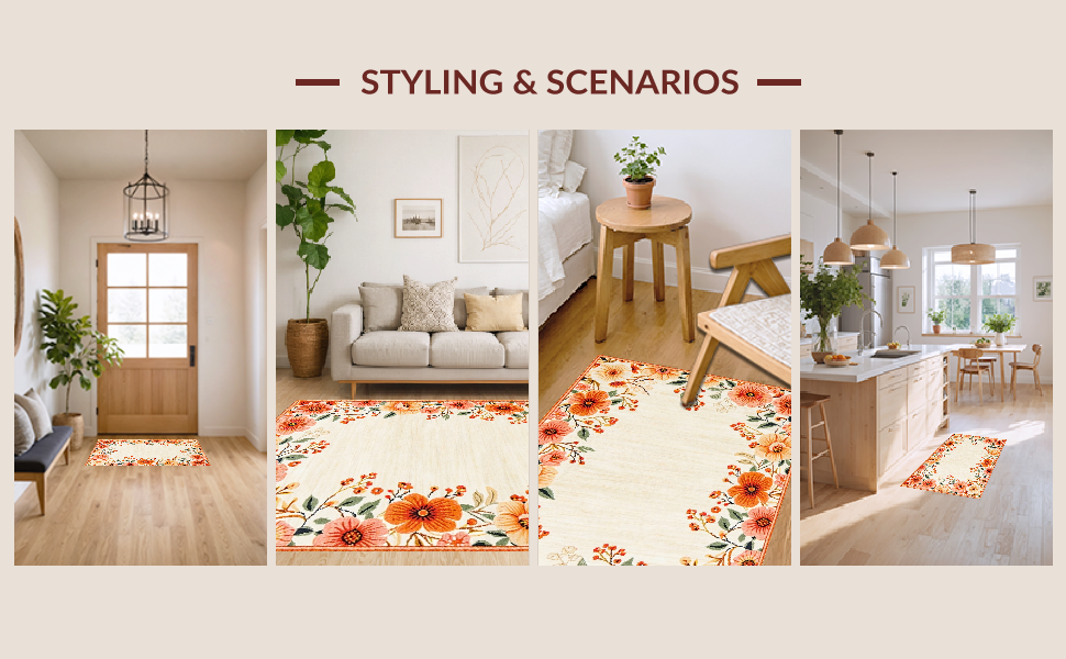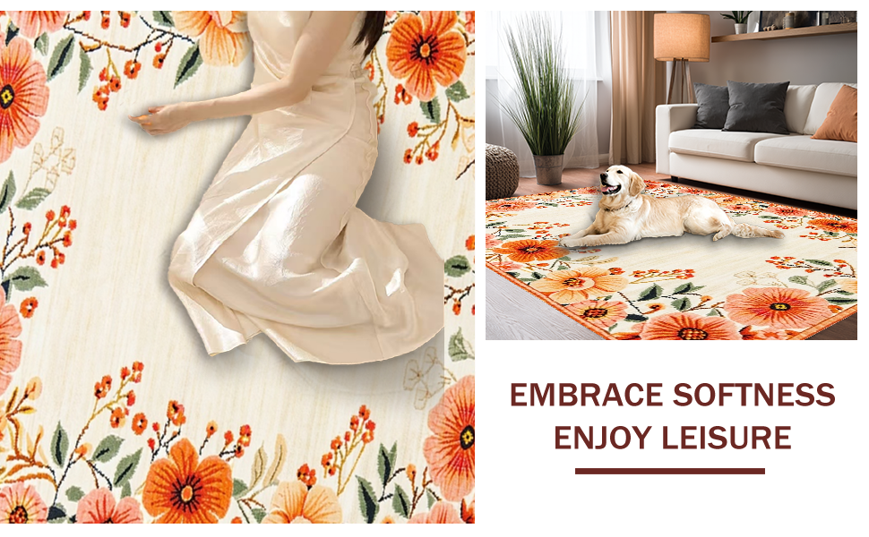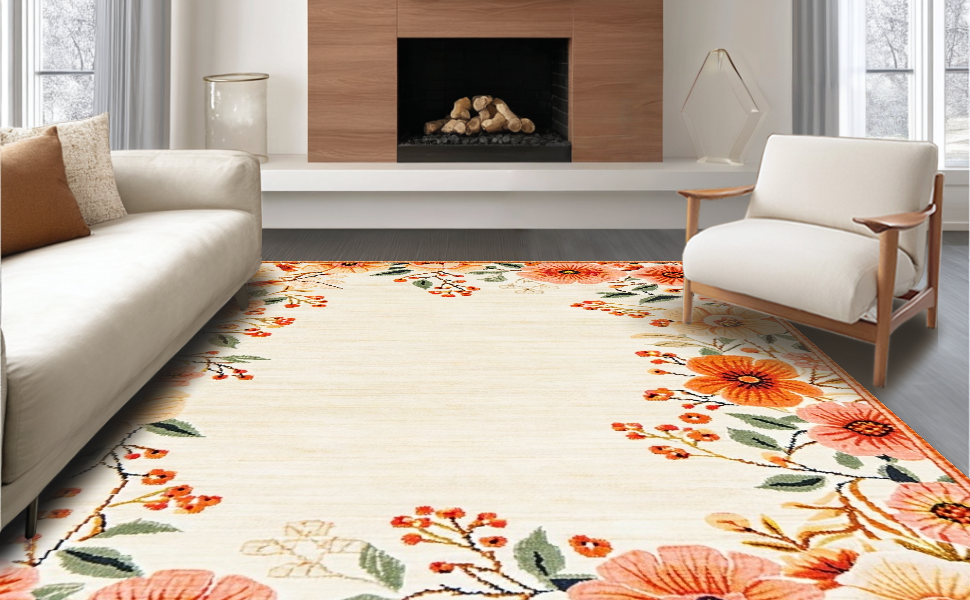 Ultra Soft Area Rug, Non Slip, Stain Resistant, Washable Area Rugs for Living Room, Bedroom, Bold Modern Nature Motif(Beige) Overview: