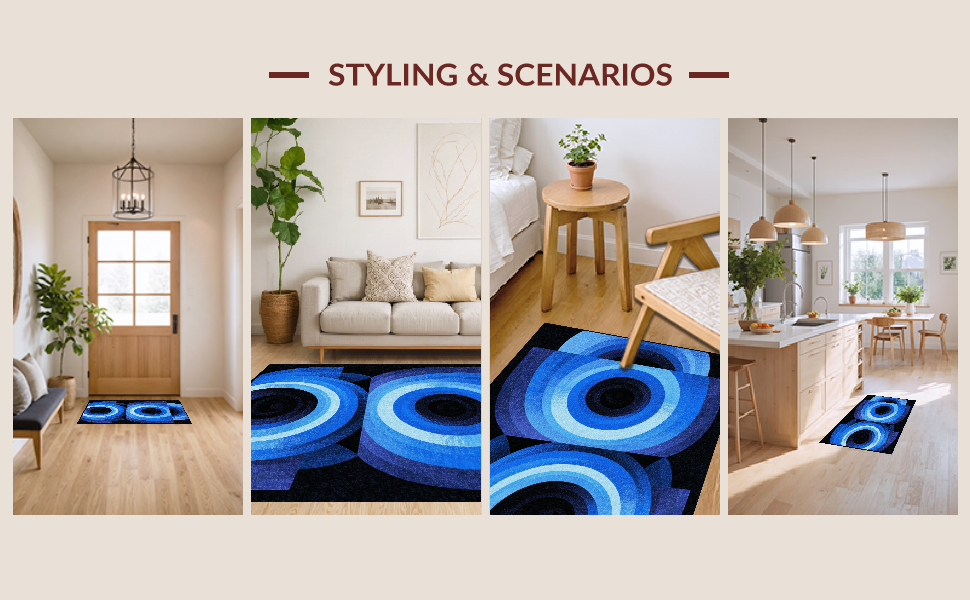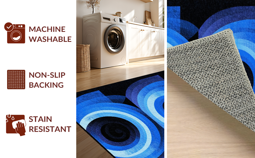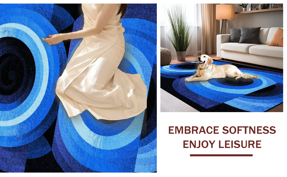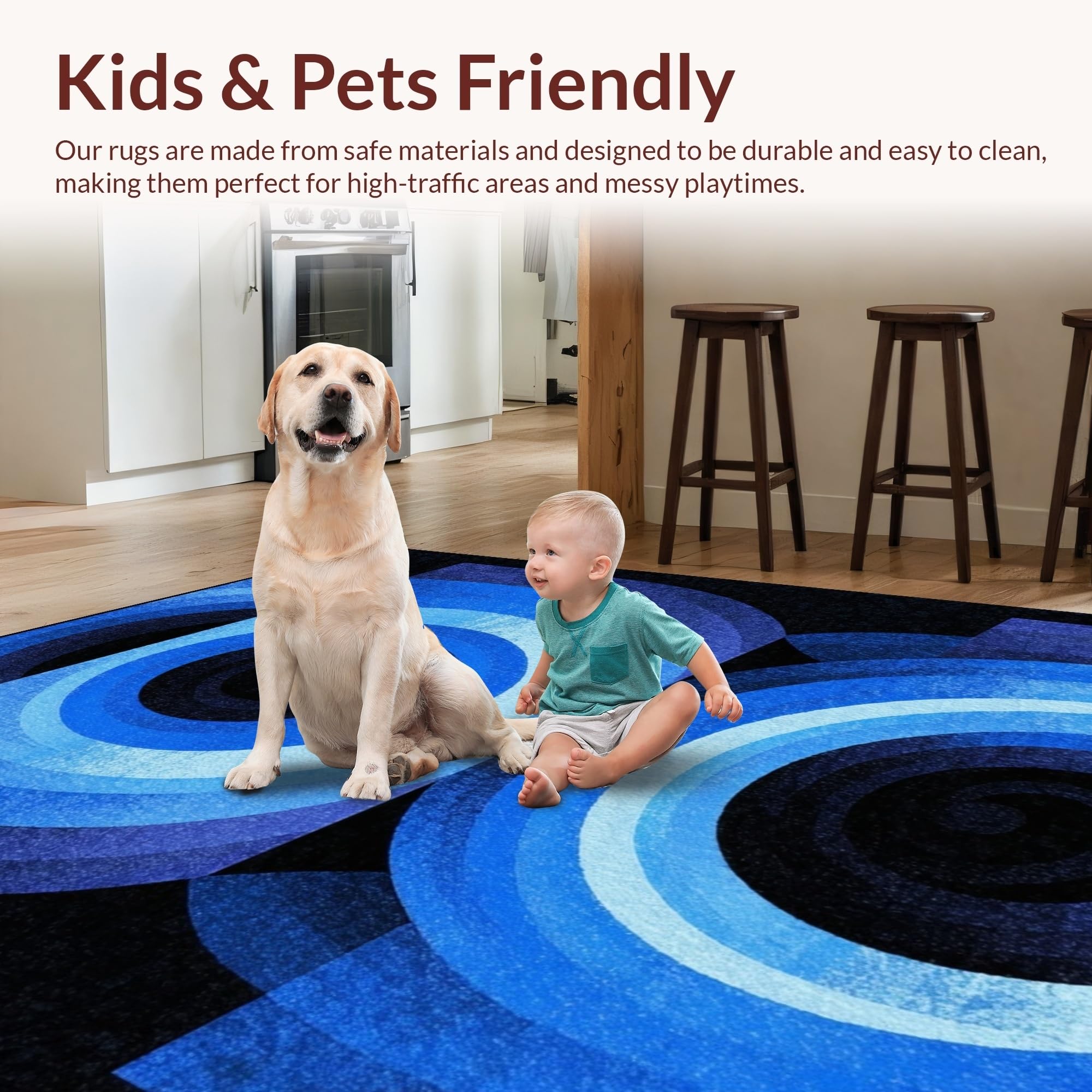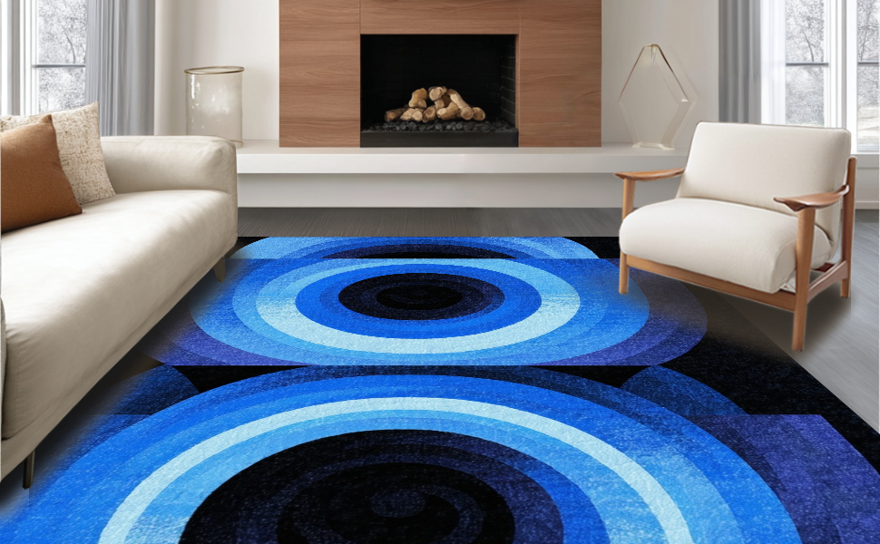 Ultra Soft Area Rug, Non Slip, Stain Resistant, Washable Area Rugs for Living Room, Bedroom, Bold Modern Spiral Aesthetic(Blue) Overview: