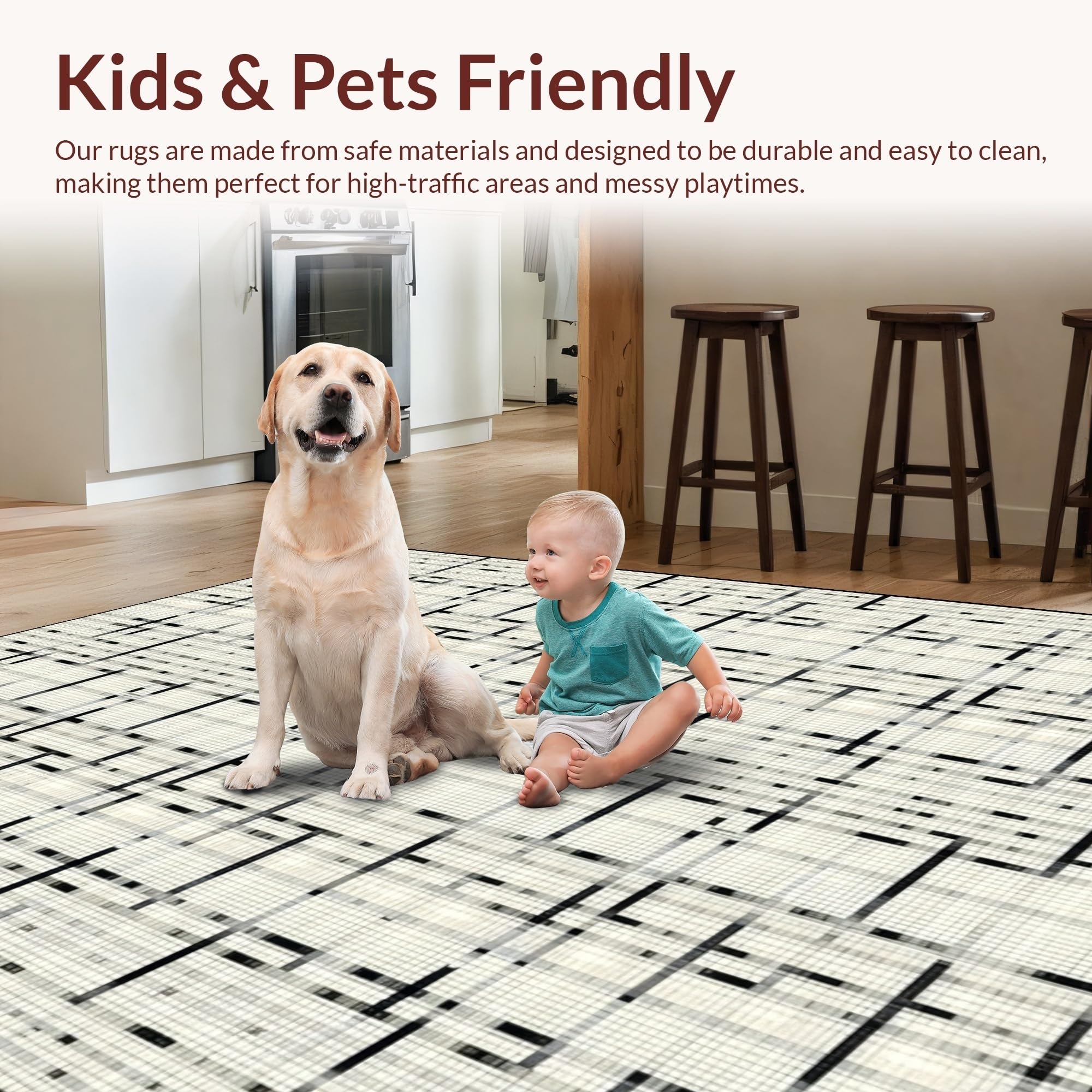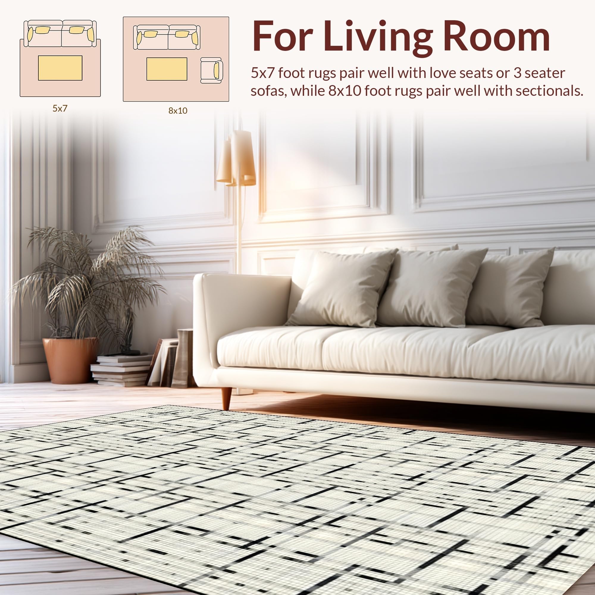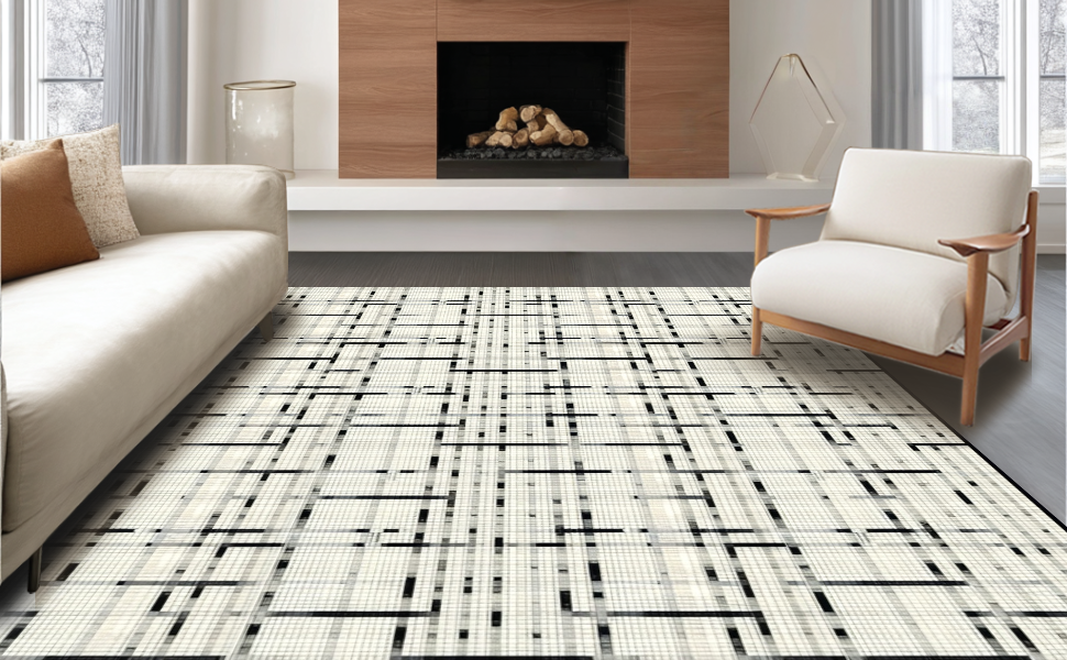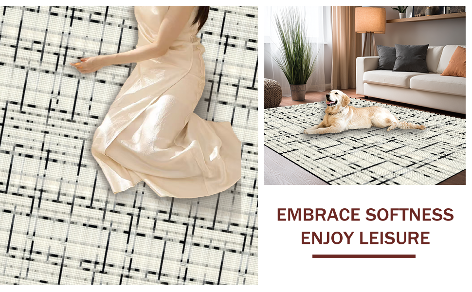 Ultra Soft Area Rug, Non Slip, Stain Resistant, Washable Area Rugs for Living Room, Bedroom, Bold Modernist Graphic Composition(Beige) Overview: