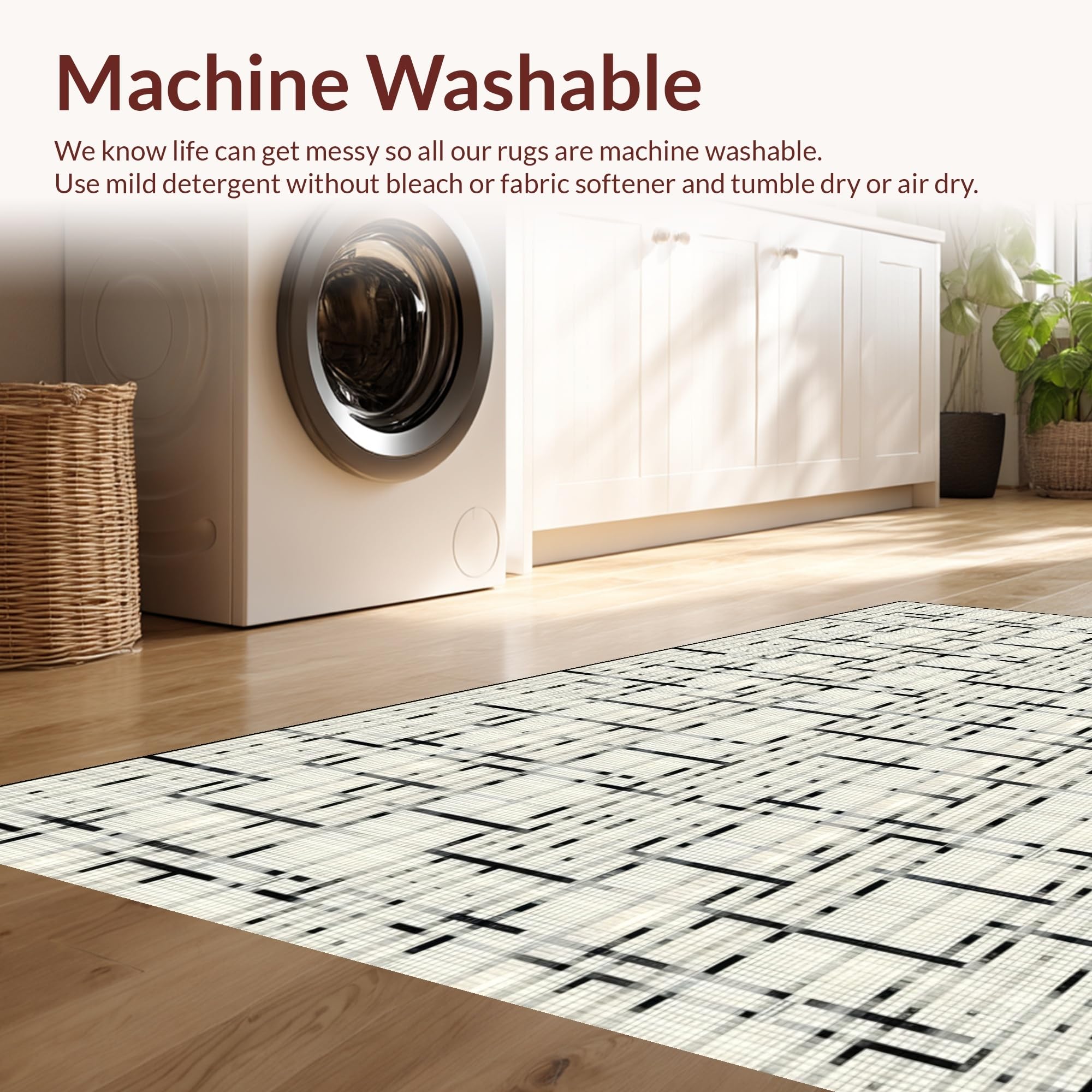 - Machine Washable: Our rugs can be easily thrown in the wash machine.