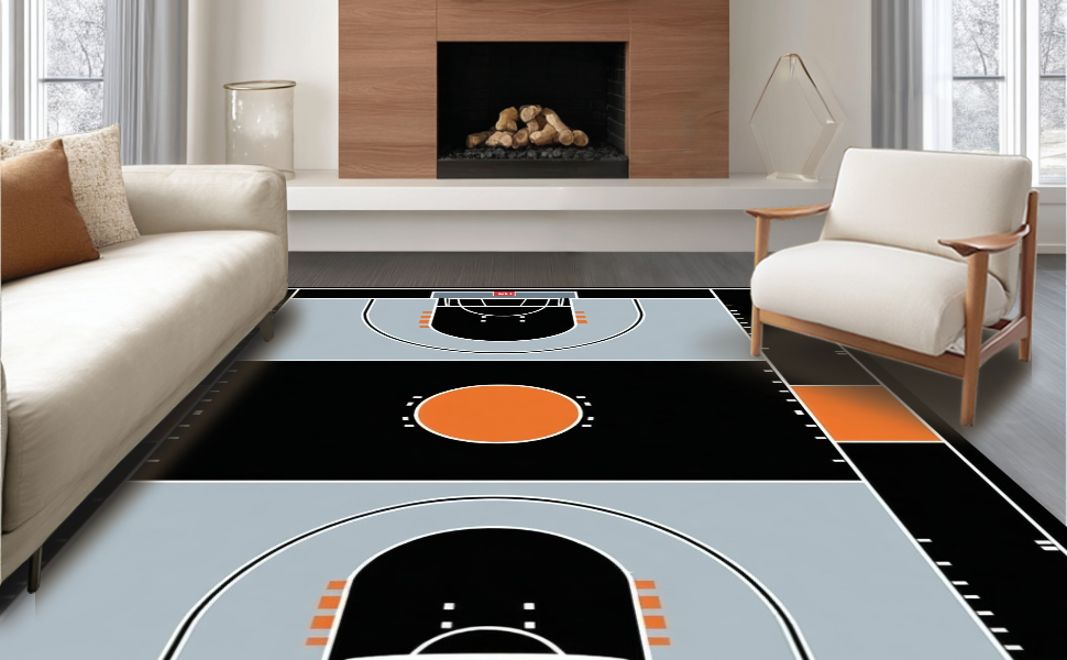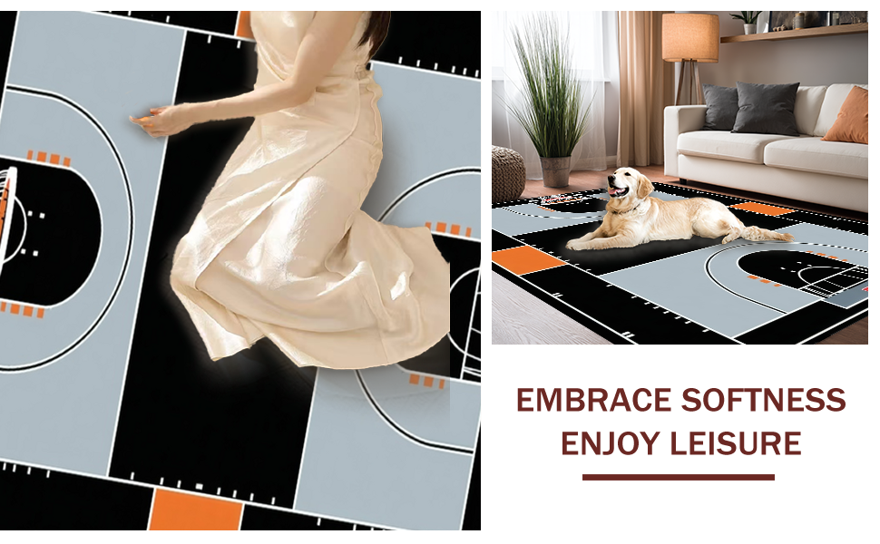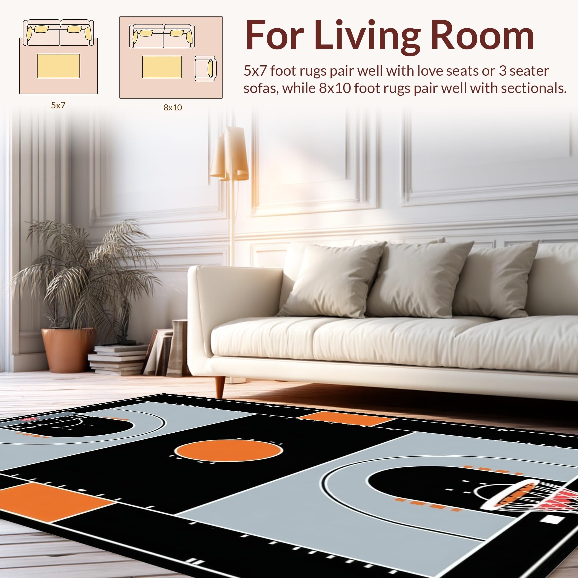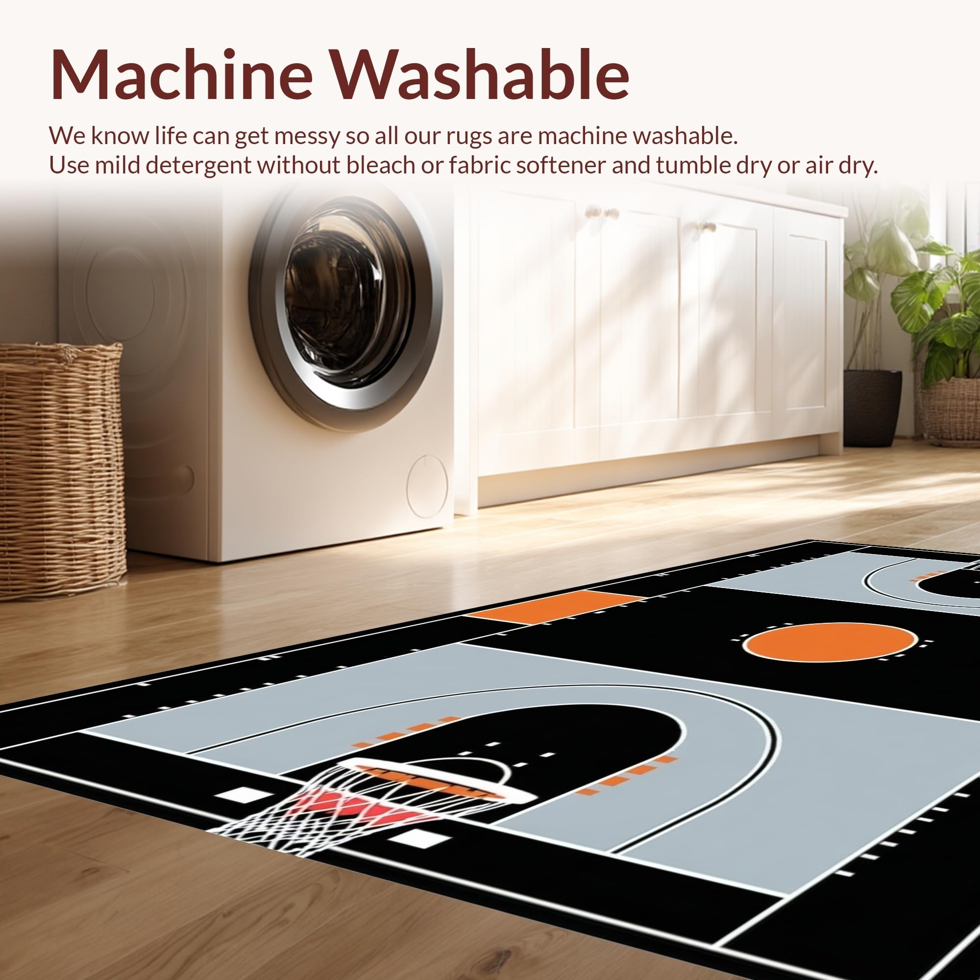 Ultra Soft Area Rug, Non Slip, Stain Resistant, Washable Area Rugs for Living Room, Bedroom, Bold Monochrome Athletic Theme(Black) Overview: