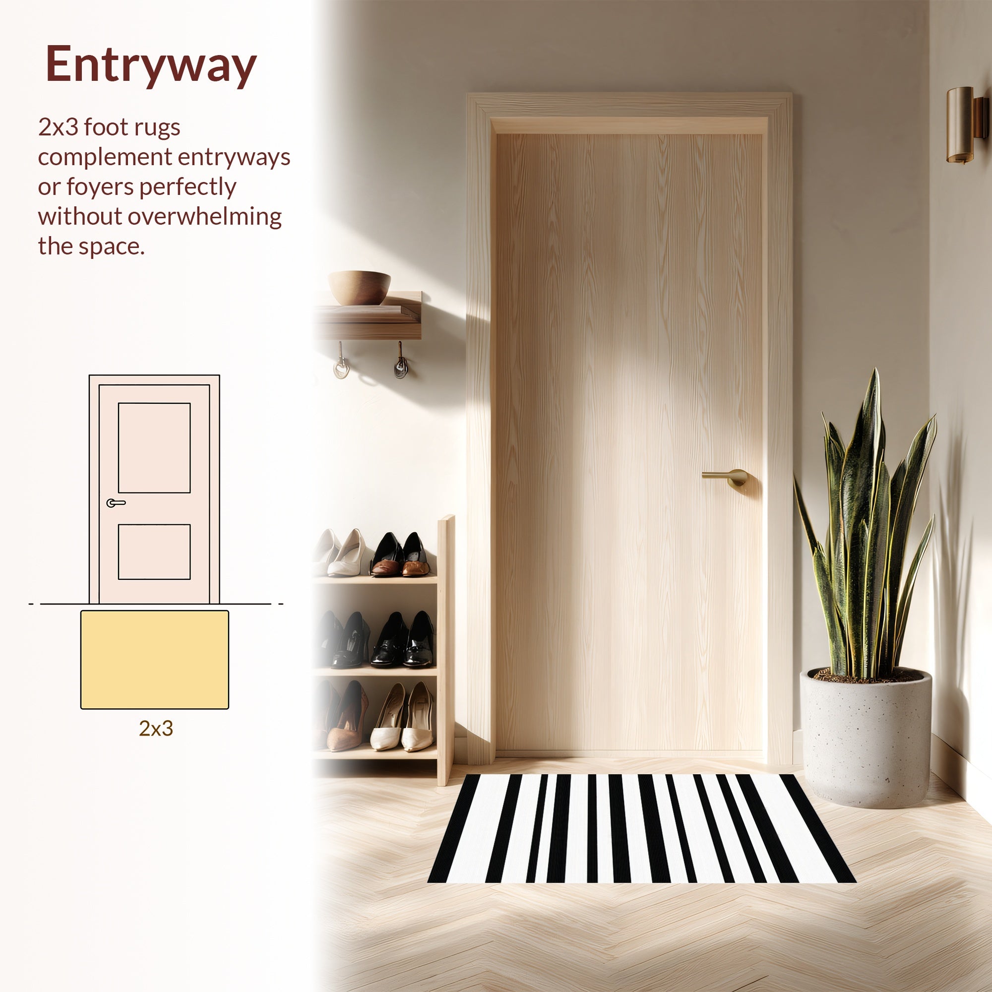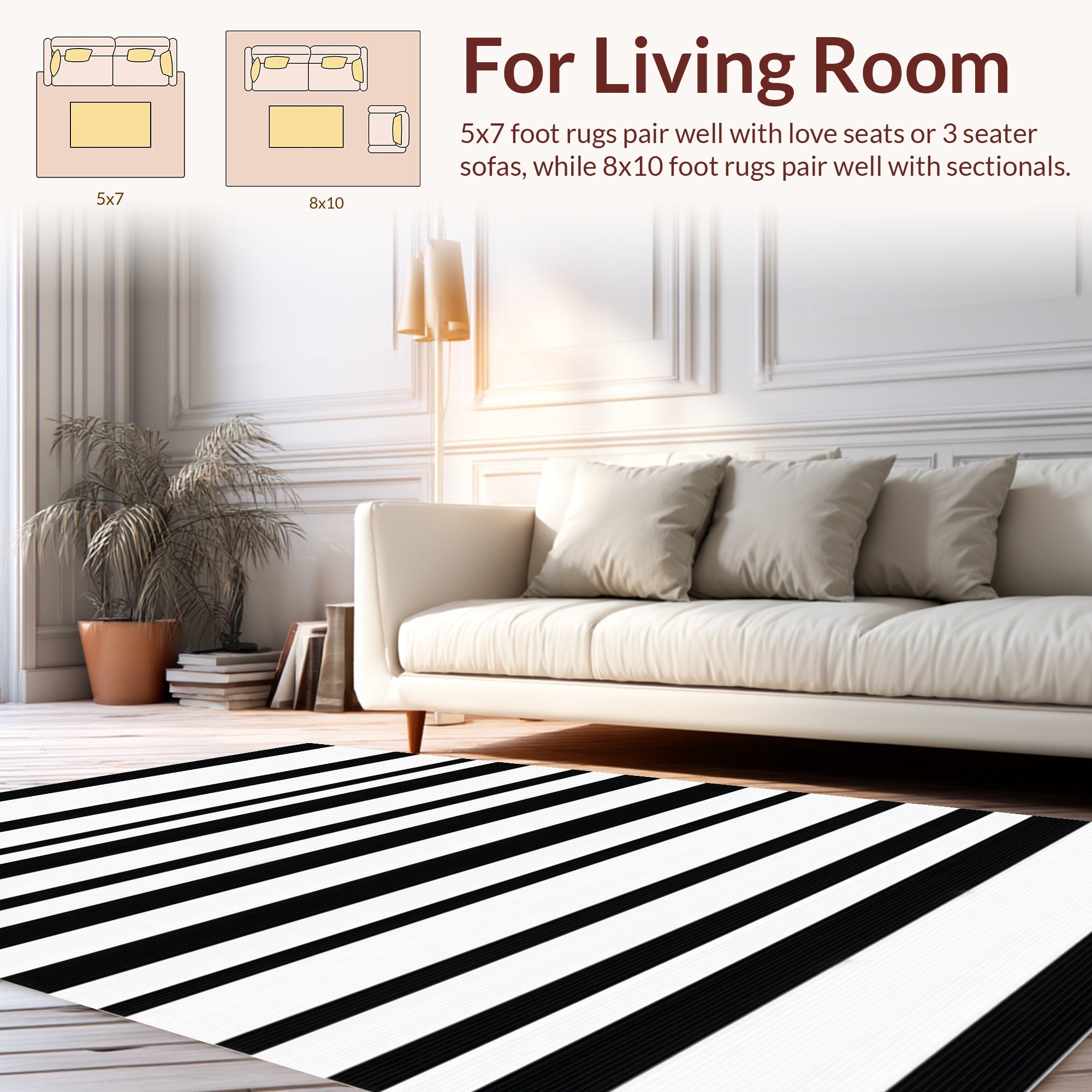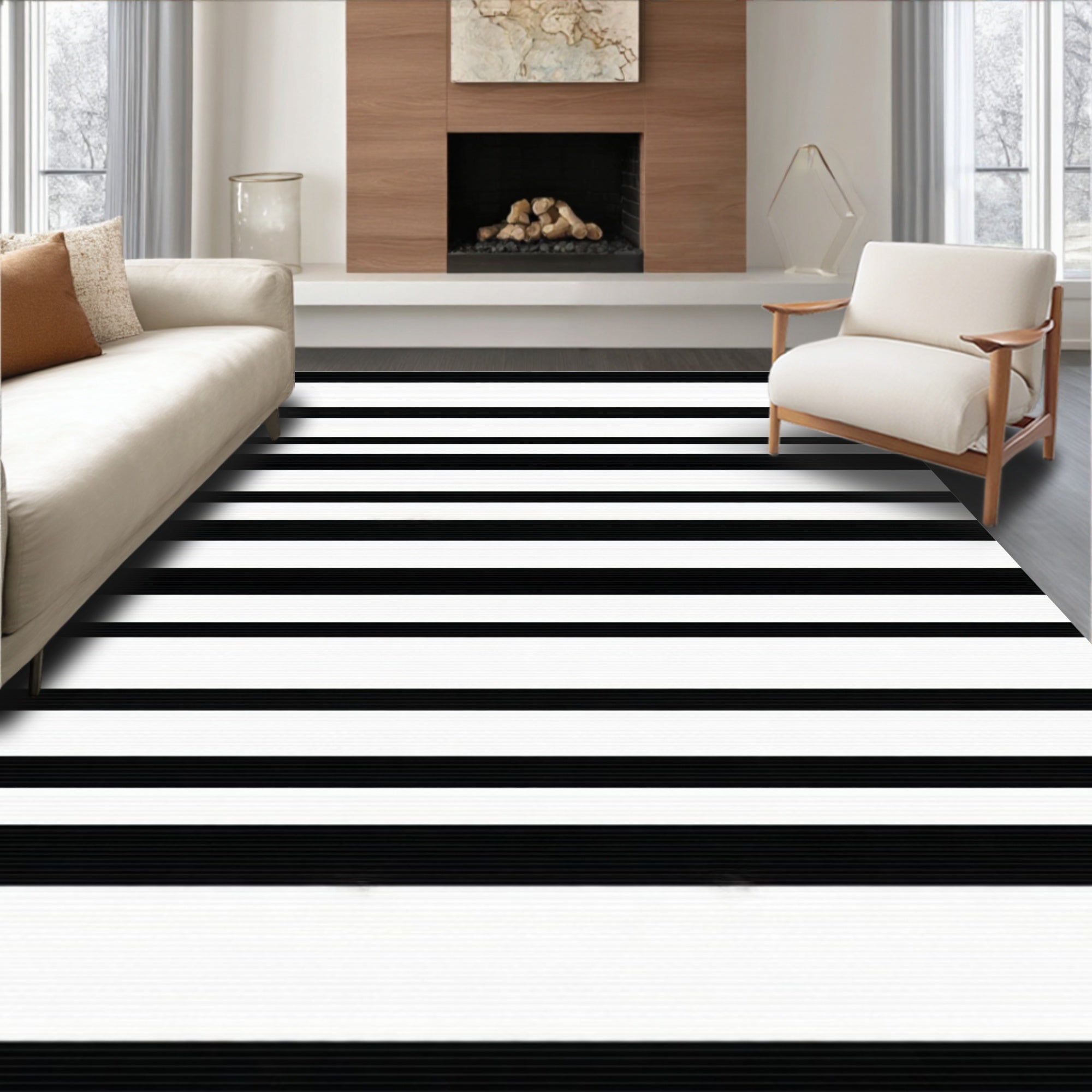 Flatwoven High Traffic Area Rug, Bold Monochrome Striped for Versatile Accents, Non Slip, Stain Resistant, Washable Area Rugs for Living Room, Bedroom (Black) Overview: