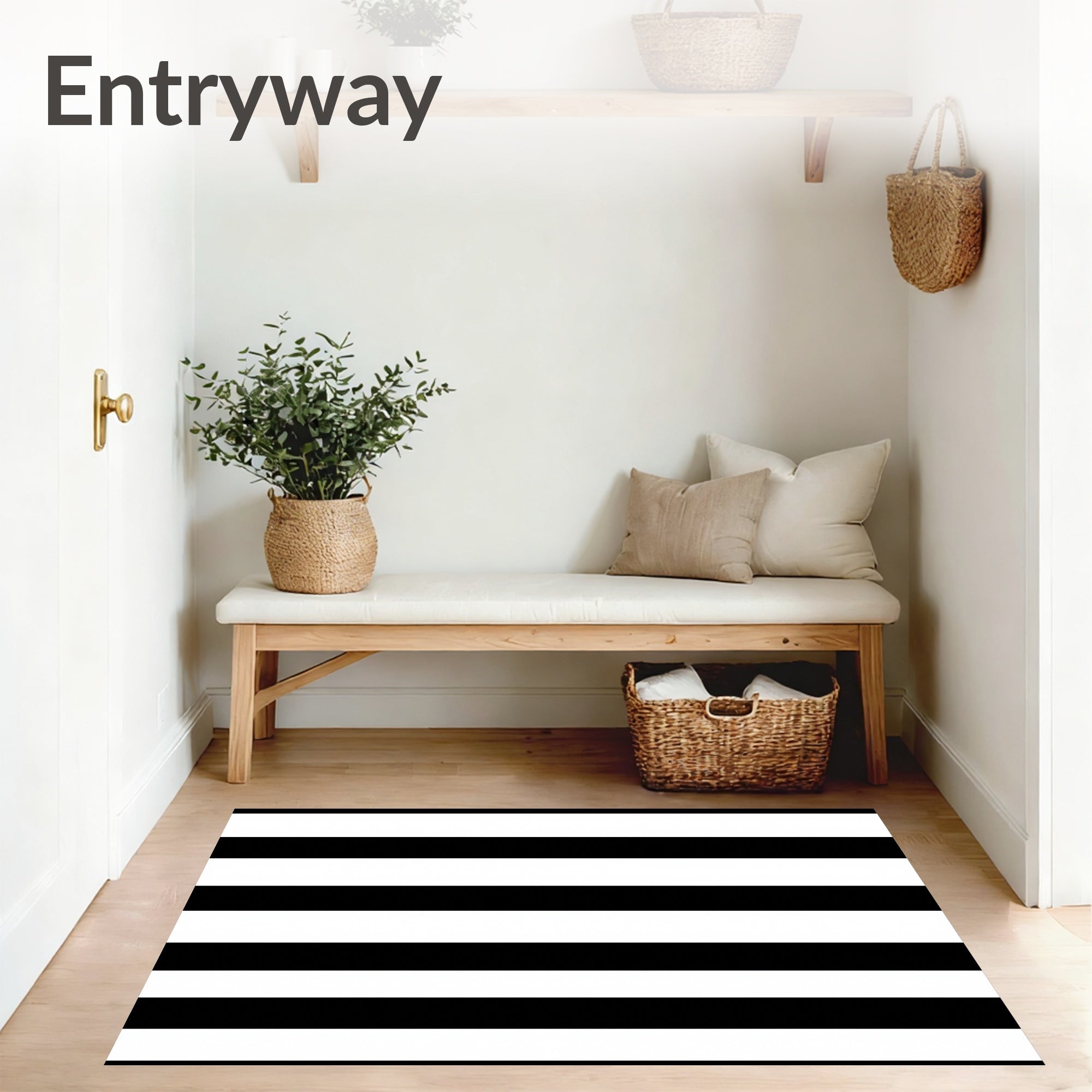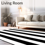 Ultra Soft Area Rug, Non Slip, Stain Resistant, Washable Area Rugs for Living Room, Bedroom, Bold Monochrome Striped with Contemporary Design(Black) Overview: