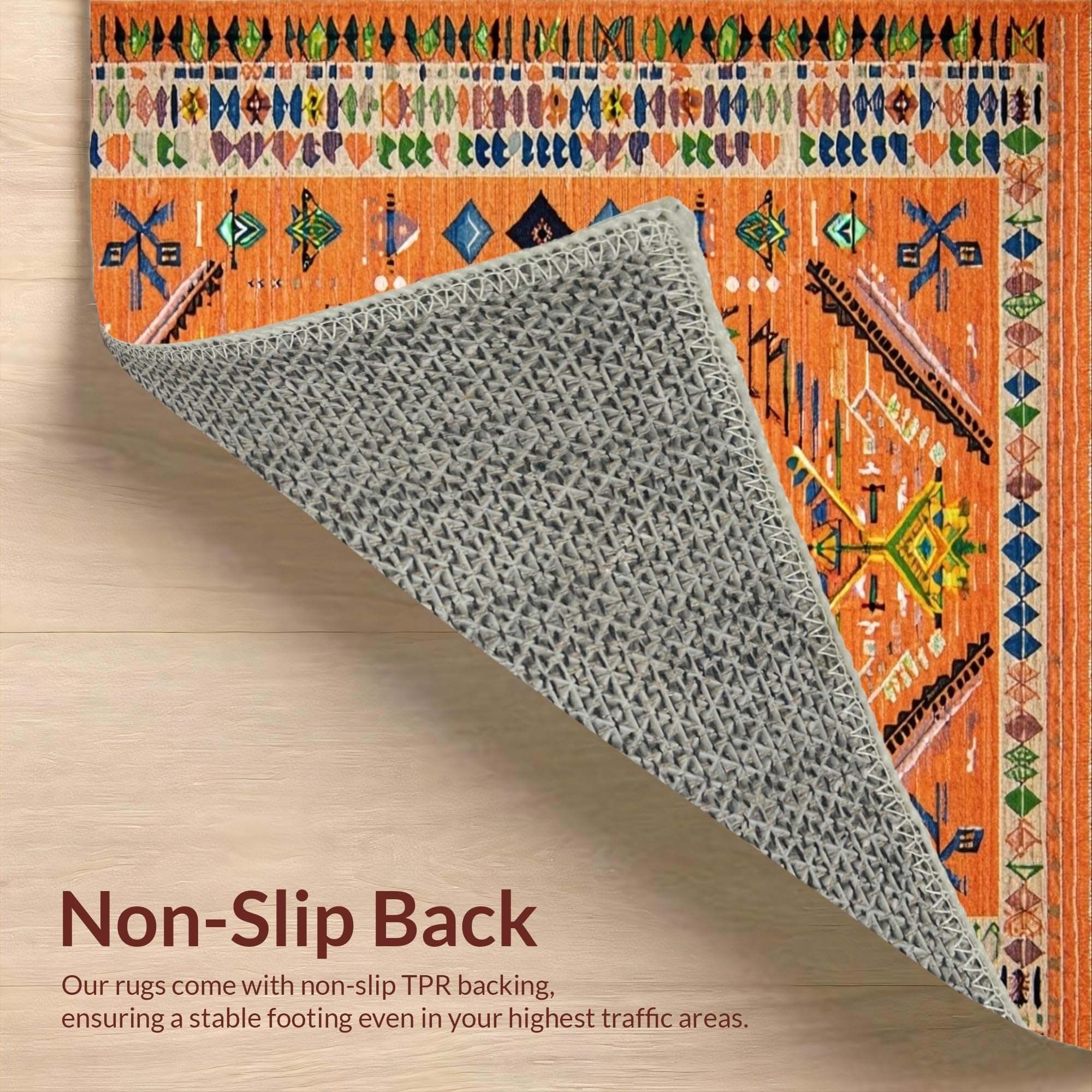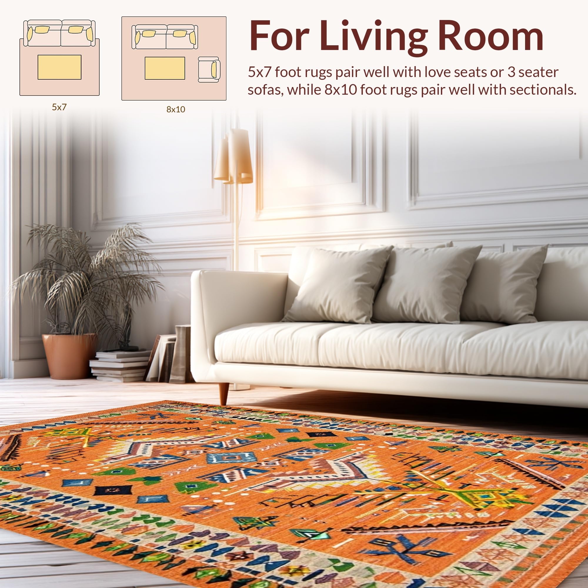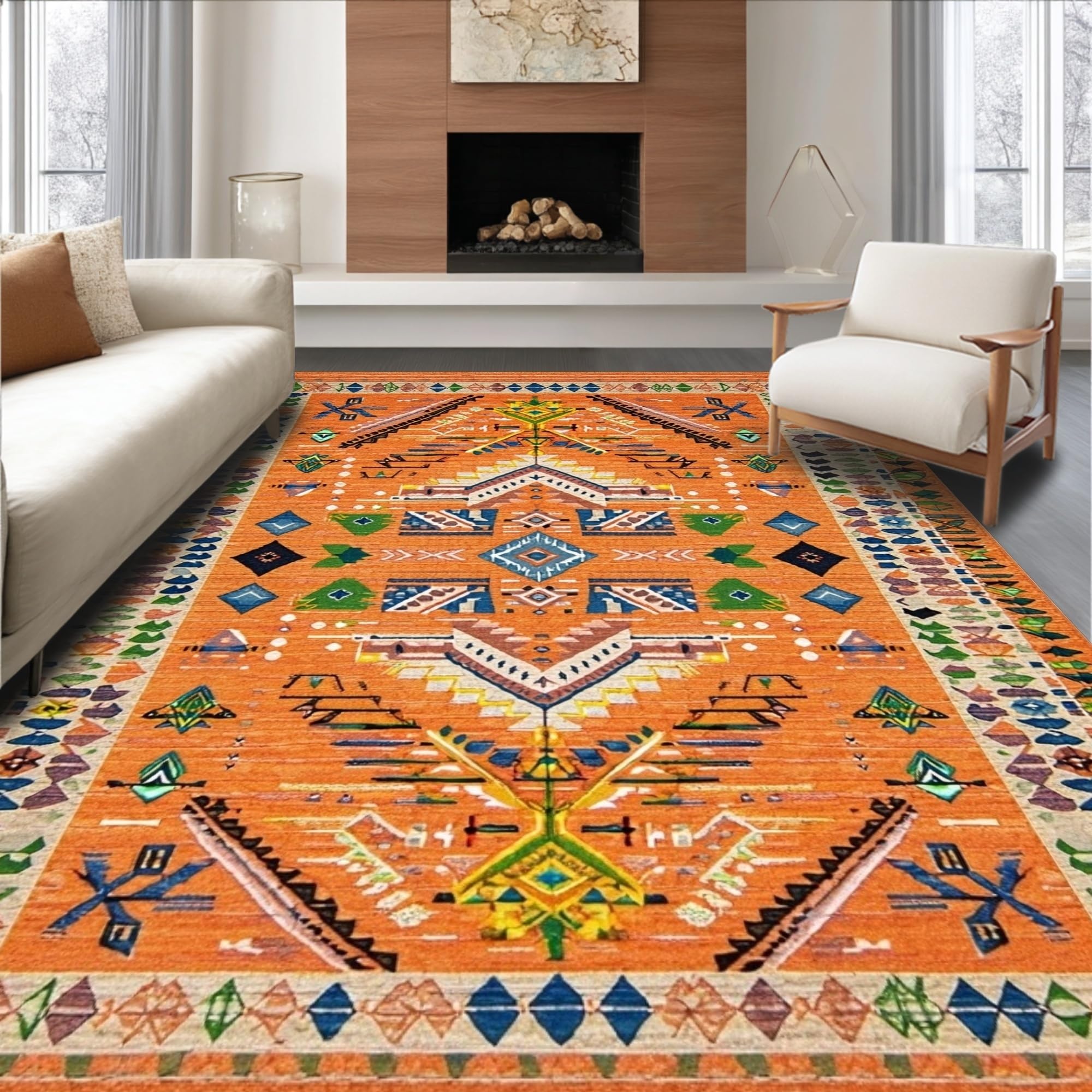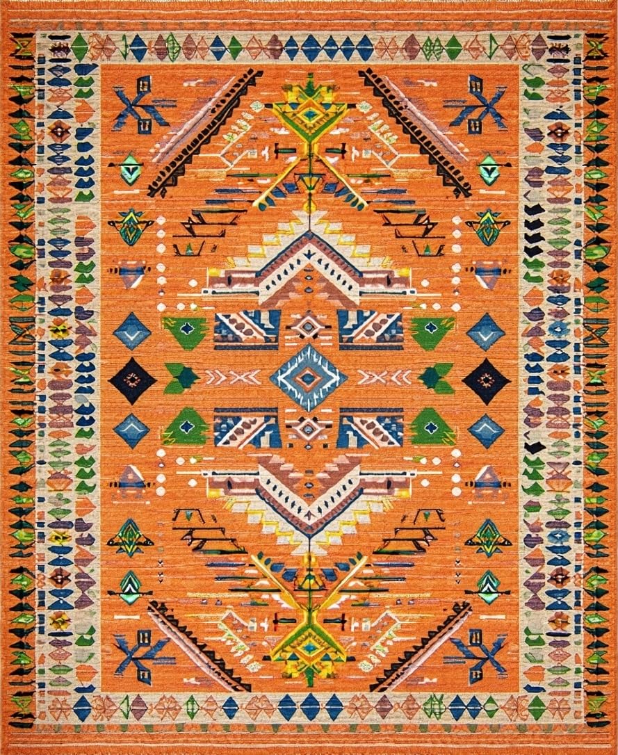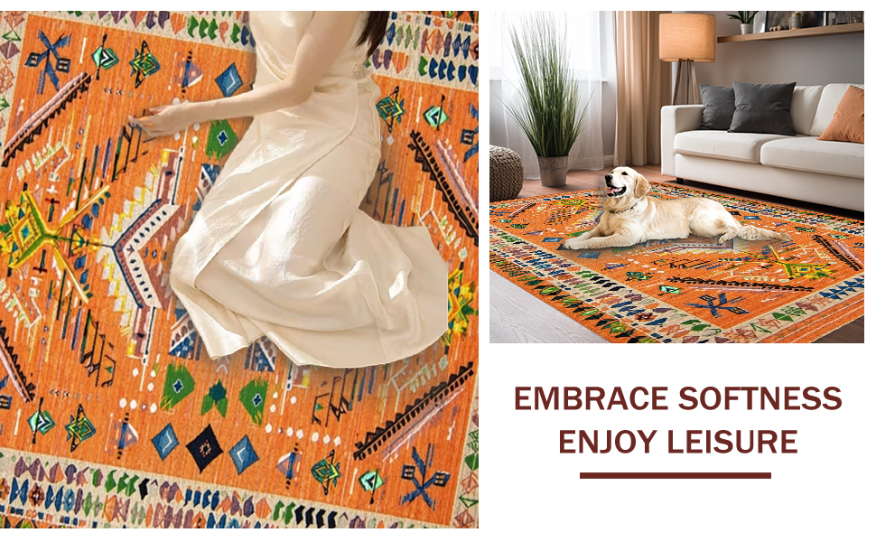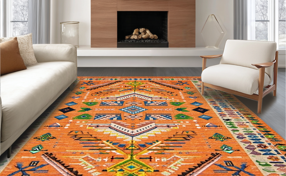 Ultra Soft Area Rug, Non Slip, Stain Resistant, Washable Area Rugs for Living Room, Bedroom, Bold Oceanic Wave Motif(Orange) Overview: