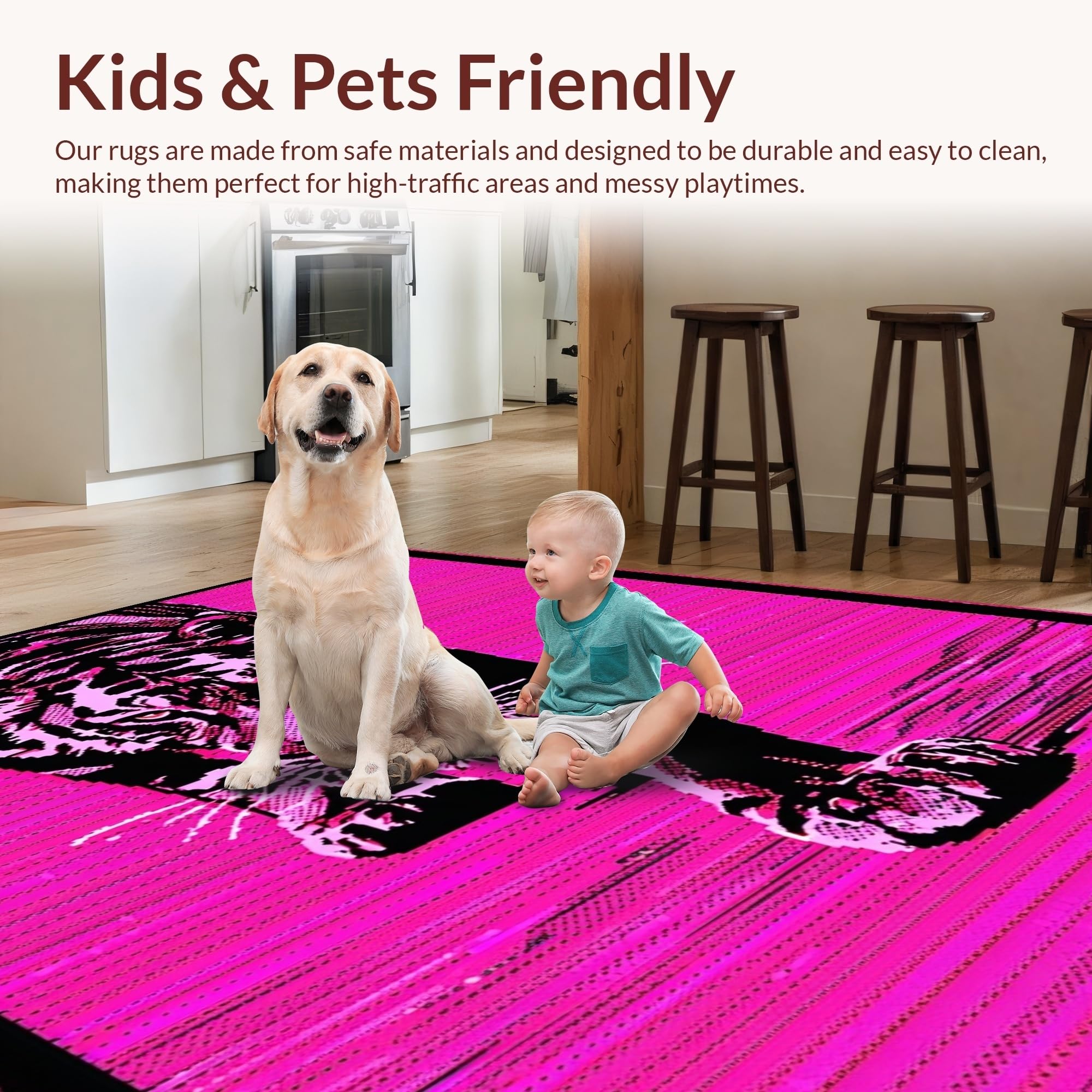 Ultra Soft Area Rug, Non Slip, Stain Resistant, Washable Area Rugs for Living Room, Bedroom, Bold Pink Abstract Aesthetic(Pink) Overview: