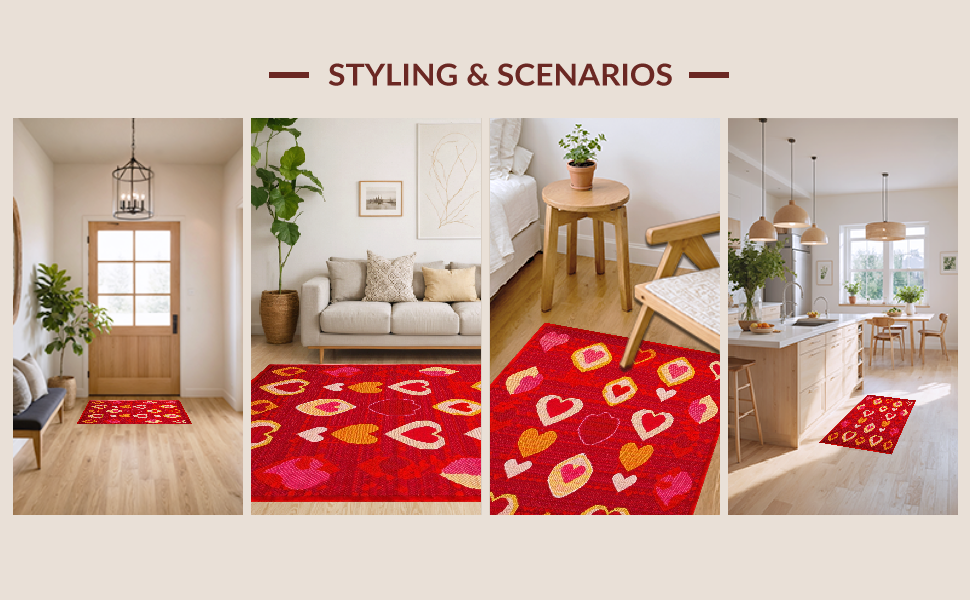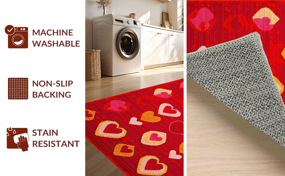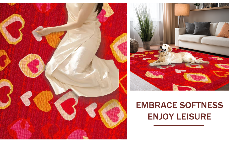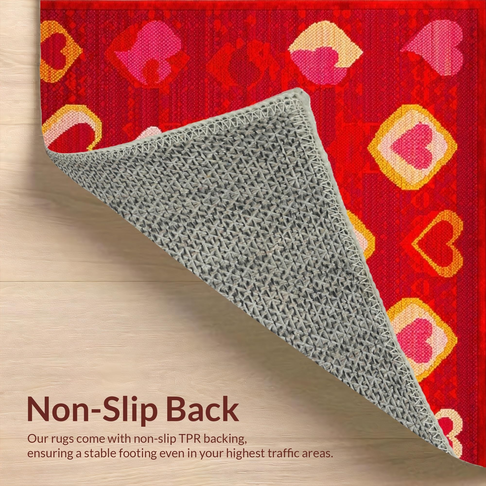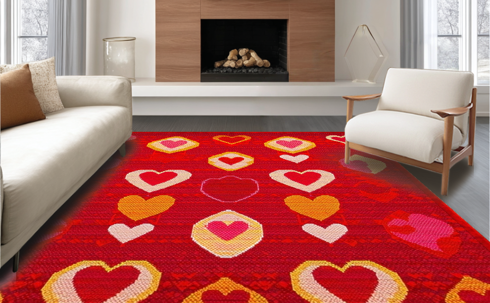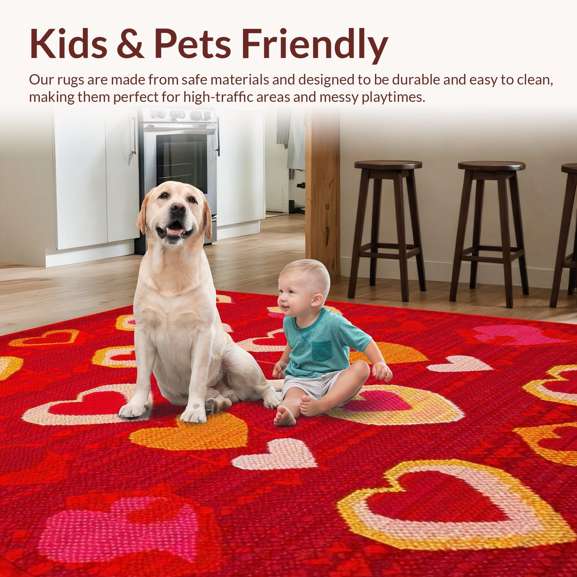 Ultra Soft Area Rug, Non Slip, Stain Resistant, Washable Area Rugs for Living Room, Bedroom, Bold Retro Heart Shape(Red) Overview: