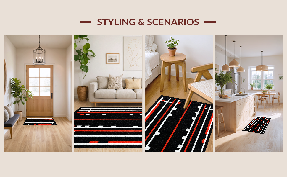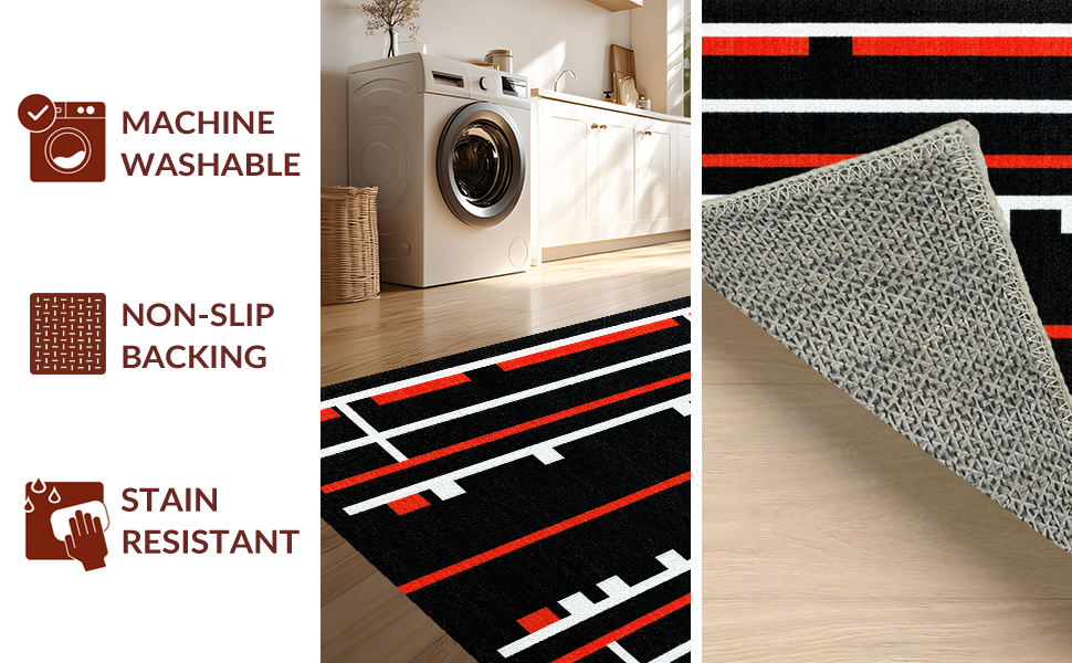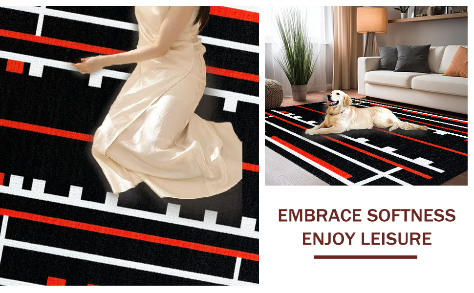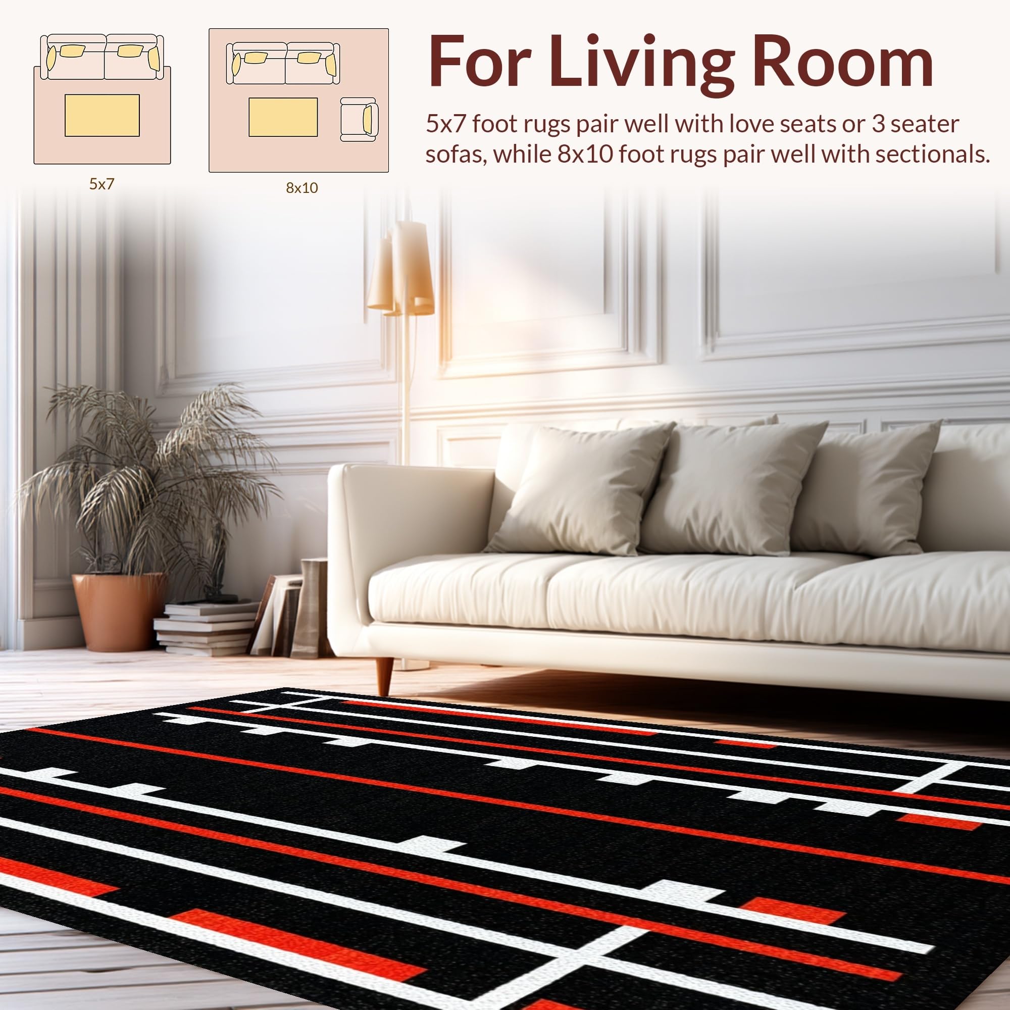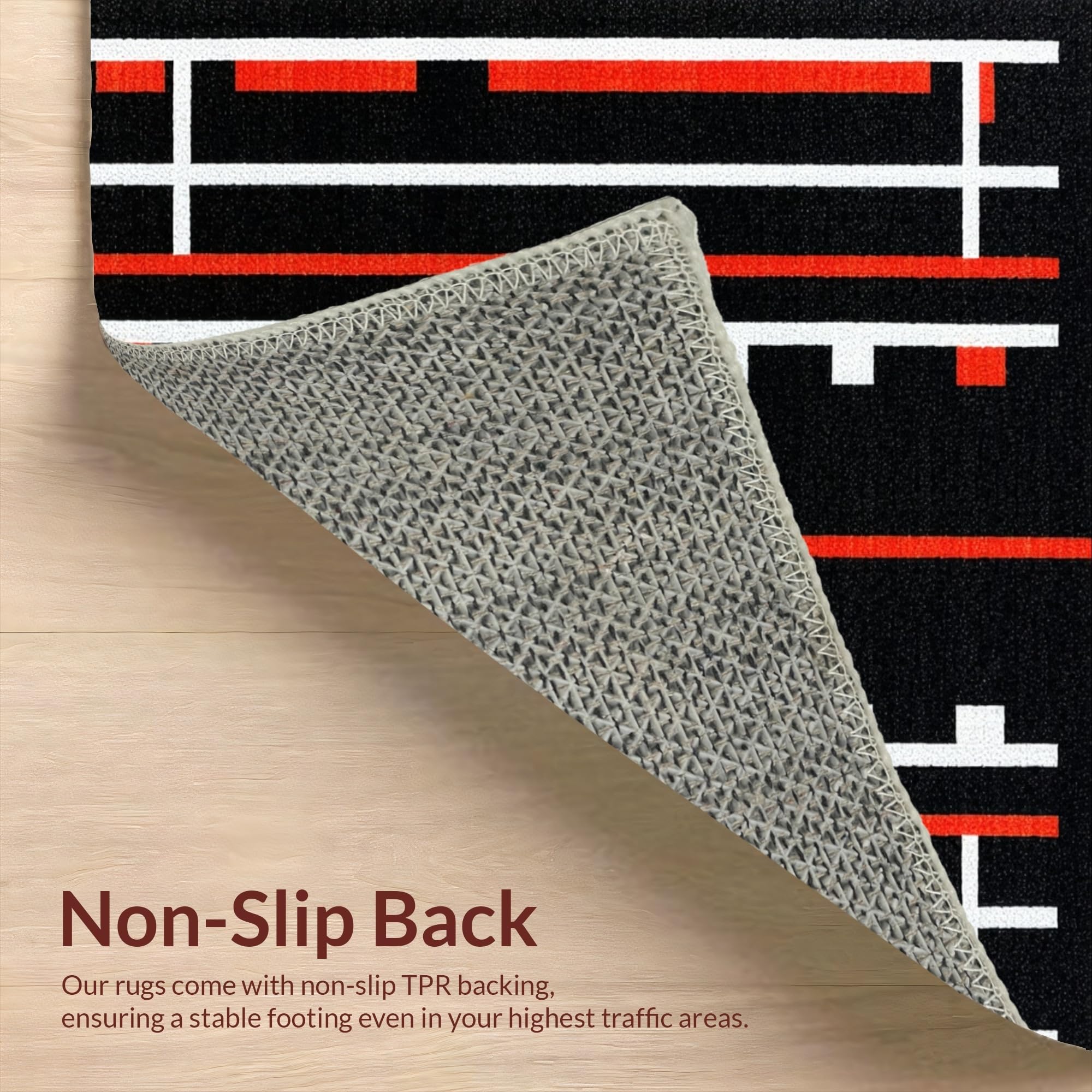 Ultra Soft Area Rug, Non Slip, Stain Resistant, Washable Area Rugs for Living Room, Bedroom, Bold Speed Route Visual Appeal(Black) Overview:
