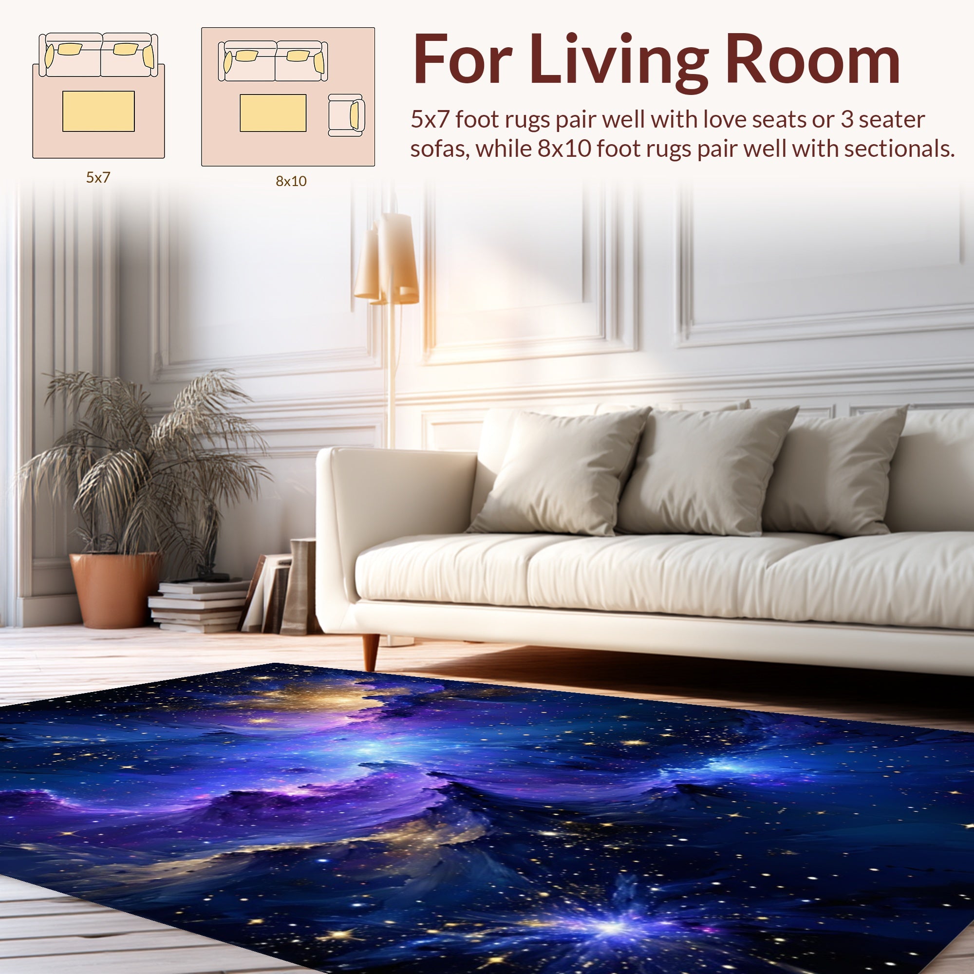 Flatwoven High Traffic Area Rug, Bold Stellar Color Concept, Non Slip, Stain Resistant, Washable Area Rugs for Living Room, Bedroom (Purple) Overview: