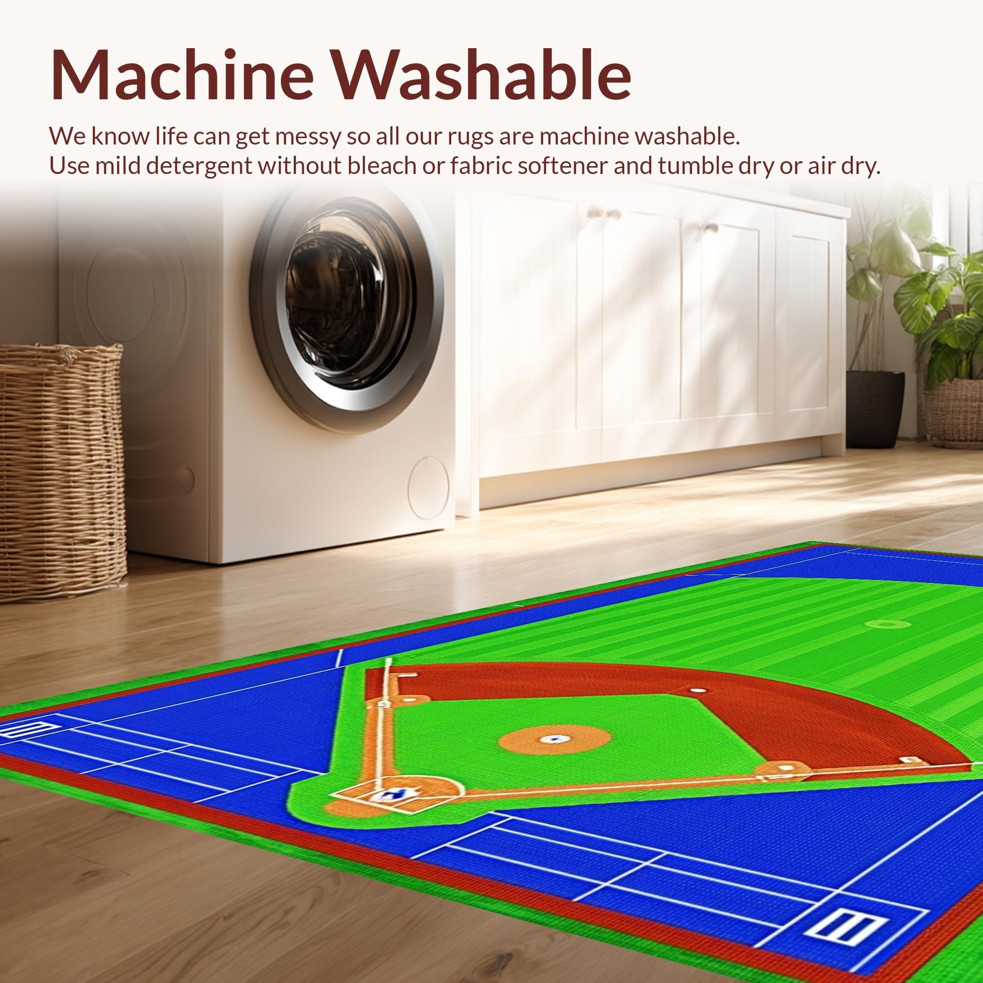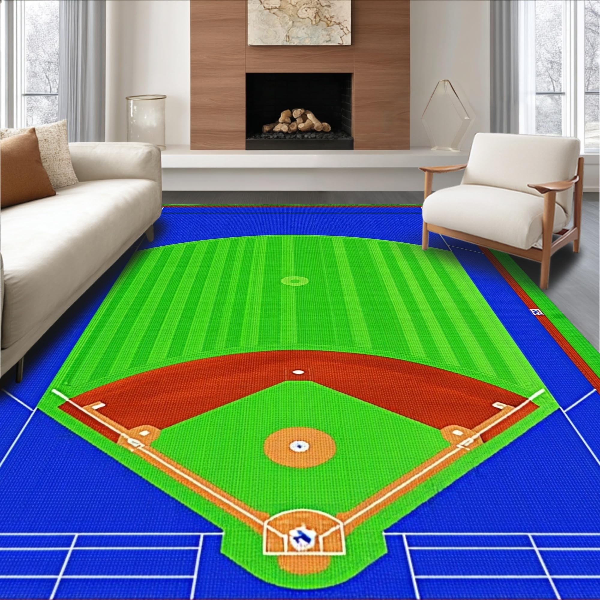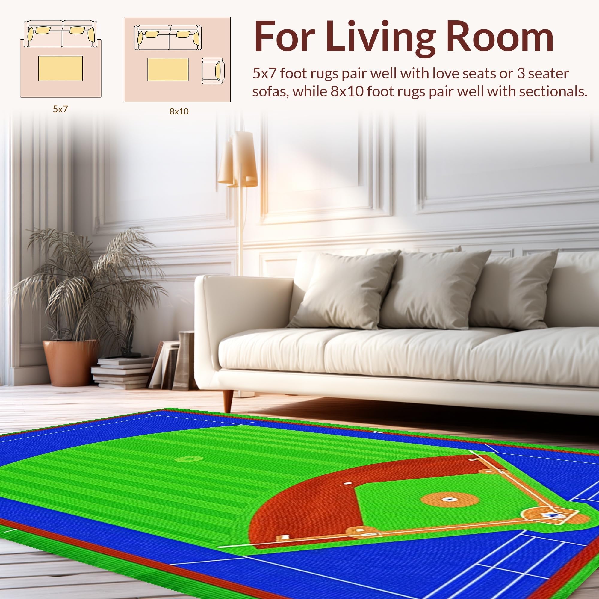 Ultra Soft Area Rug, Non Slip, Stain Resistant, Washable Area Rugs for Living Room, Bedroom, Bold Striking Baseball Graphic Design(Blue) Overview: