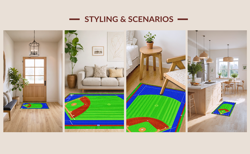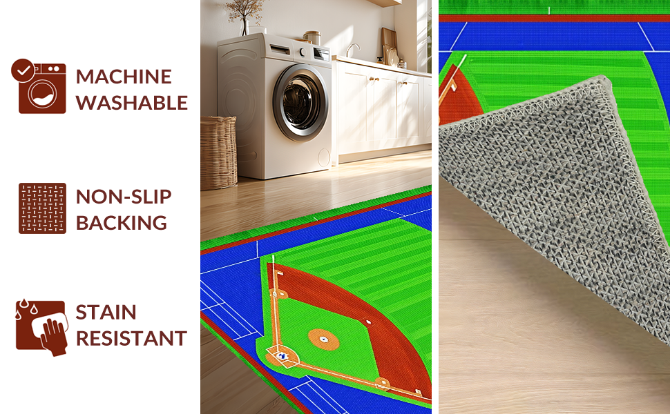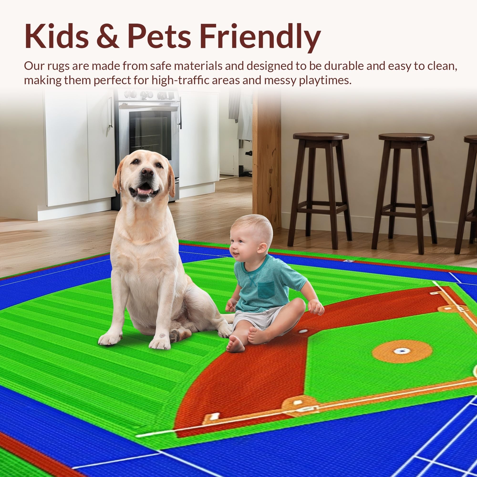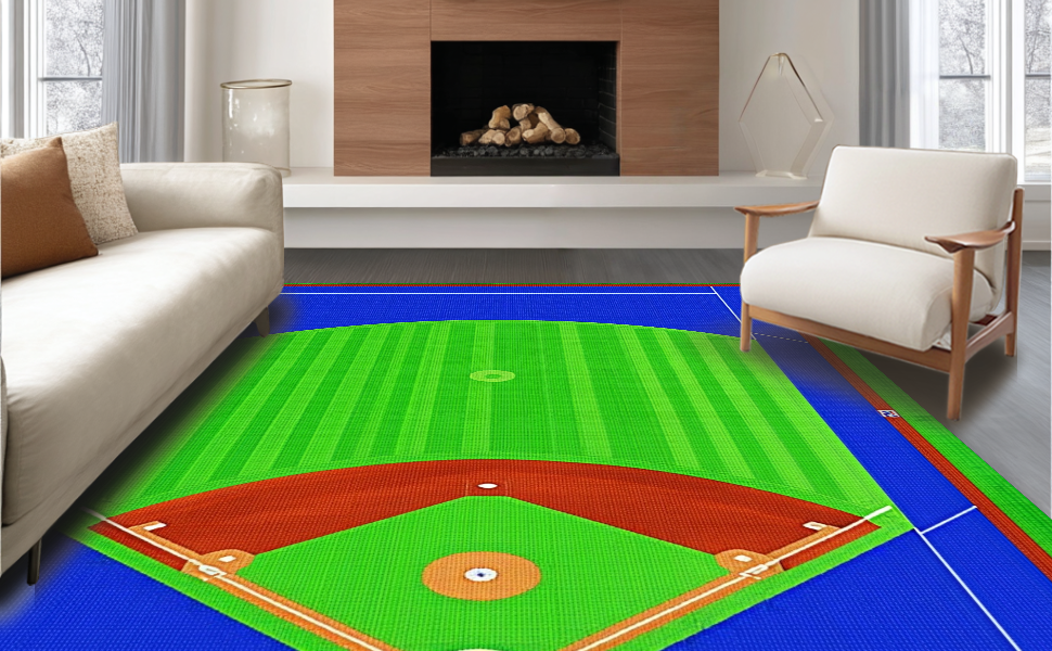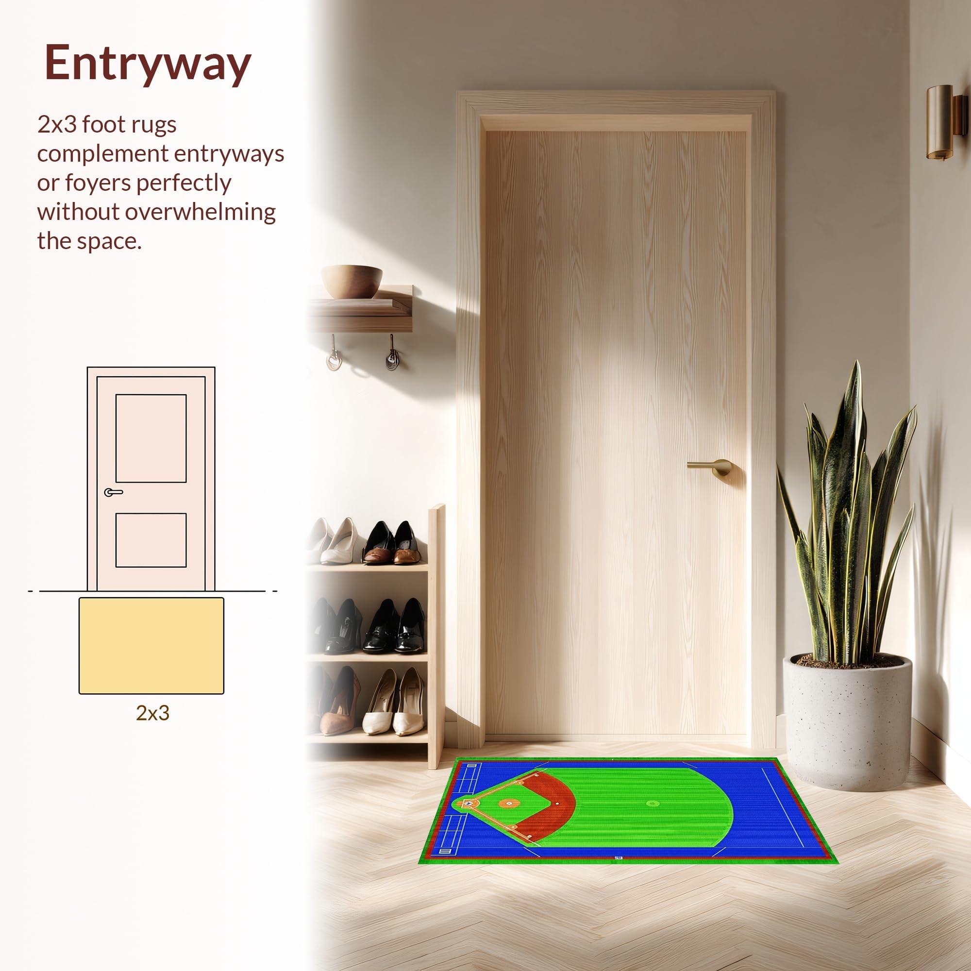 Ultra Soft Area Rug, Non Slip, Stain Resistant, Washable Area Rugs for Living Room, Bedroom, Bold Striking Baseball Graphic Design(Blue) Overview: