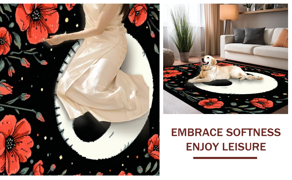 Ultra Soft Area Rug, Non Slip, Stain Resistant, Washable Area Rugs for Living Room, Bedroom, Bold Striking Monochrome Design(Black) Overview: