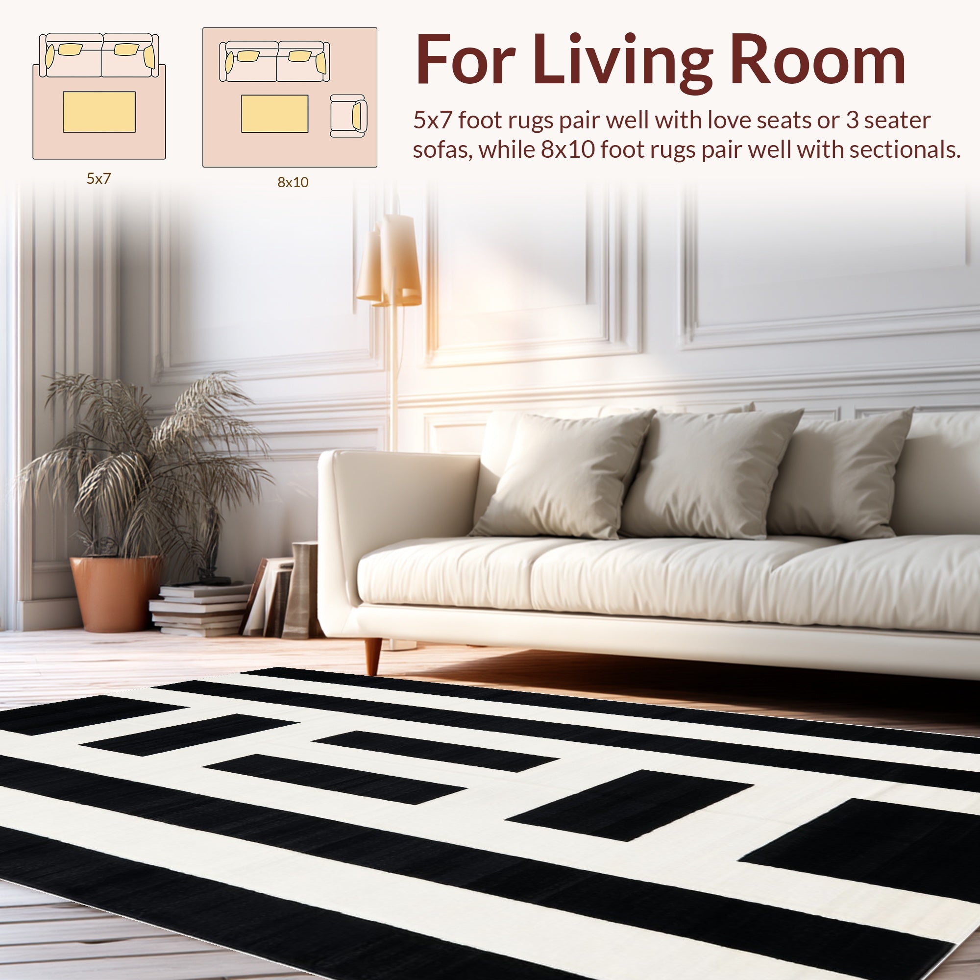 Ultra Soft Area Rug, Non Slip, Stain Resistant, Washable Area Rugs for Living Room, Bedroom, Bold Stripe Area Rug, Contrasting Hues(Black) Overview: