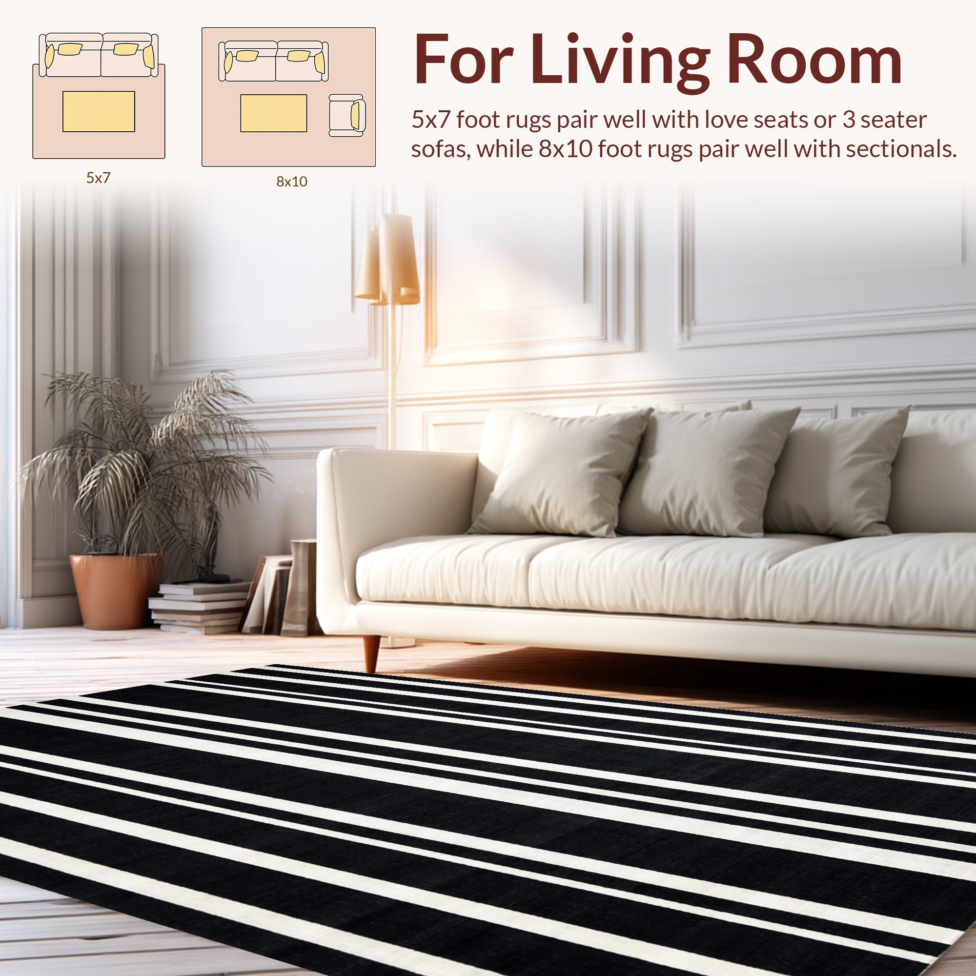 Ultra Soft Area Rug, Non Slip, Stain Resistant, Washable Area Rugs for Living Room, Bedroom, Bold Striped Accent Carpet with Modern Flair(Black) Overview:
