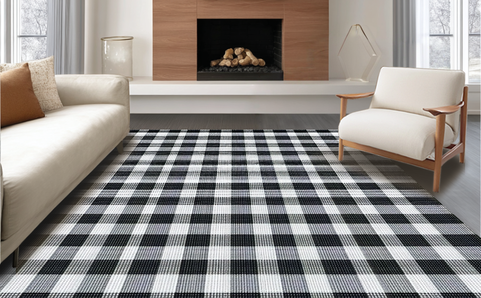 Ultra Soft Area Rug, Non Slip, Stain Resistant, Washable Area Rugs for Living Room, Bedroom, Bold Striped Black and White Concept(Black) Overview: