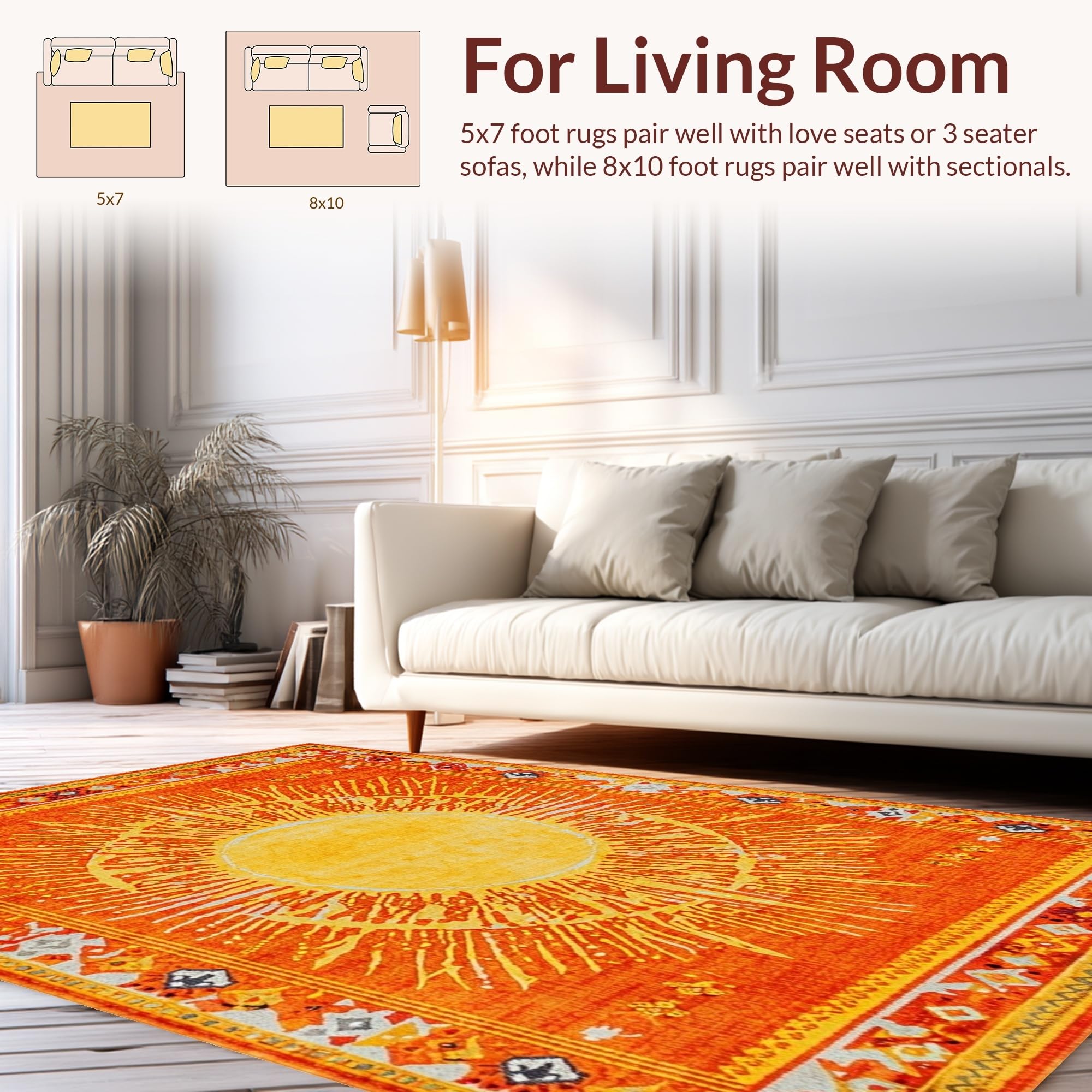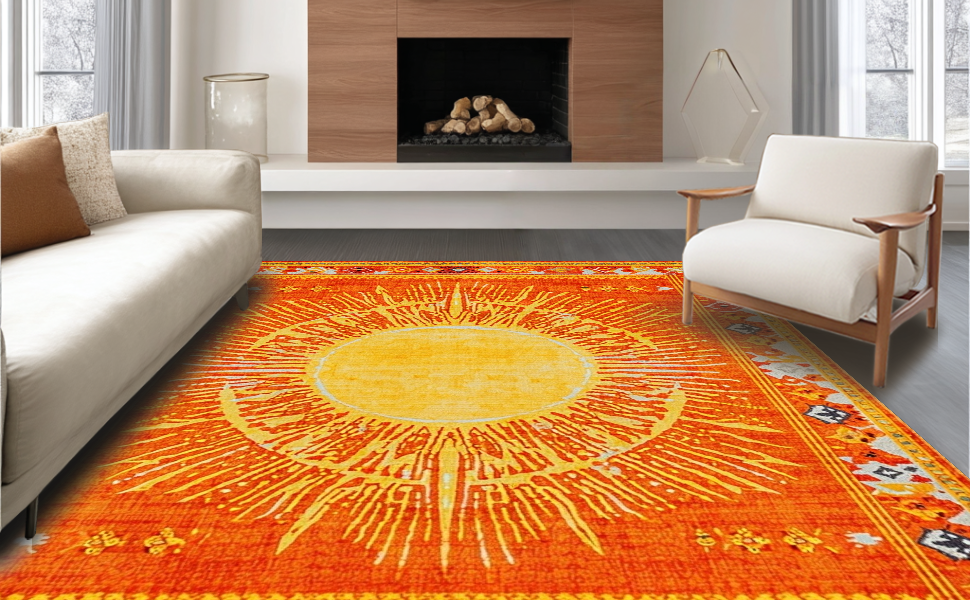 Ultra Soft Area Rug, Non Slip, Stain Resistant, Washable Area Rugs for Living Room, Bedroom, Bold Sunny Ombre Design Theme(Yellow) Overview: