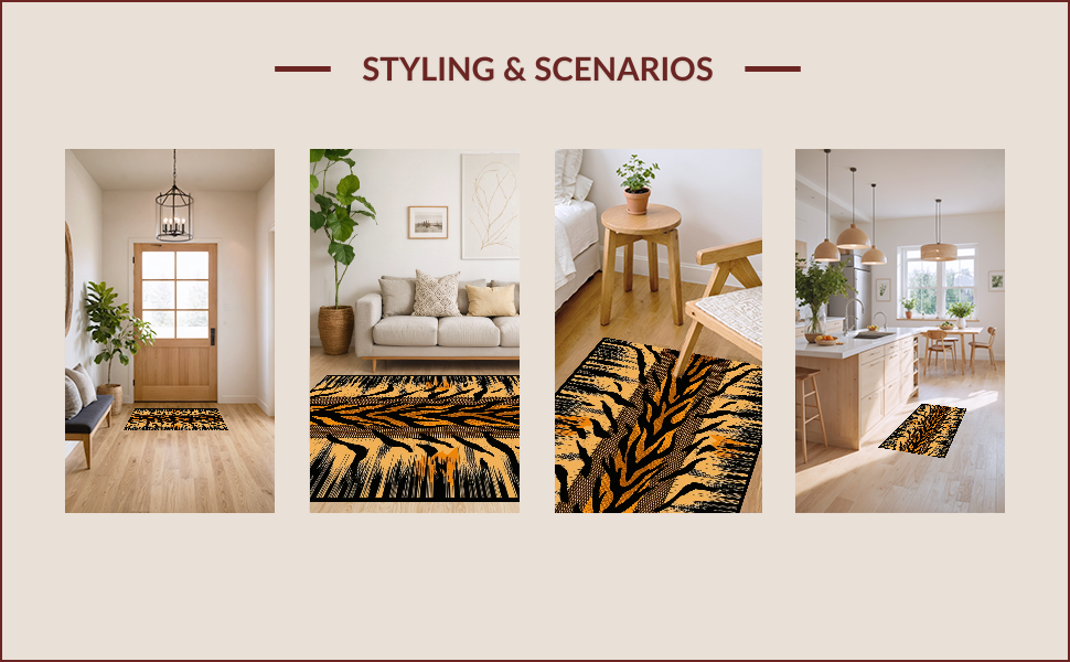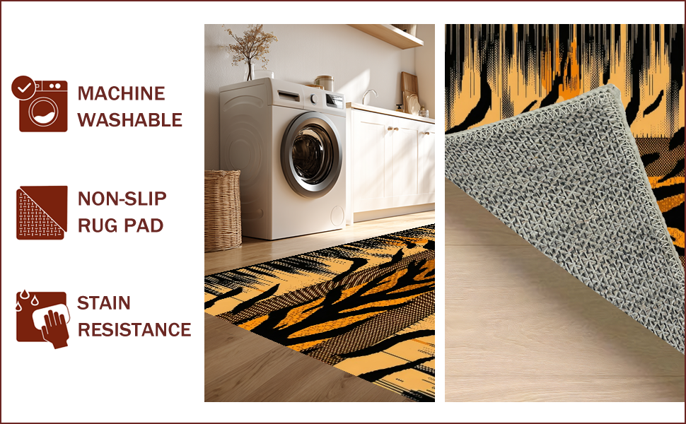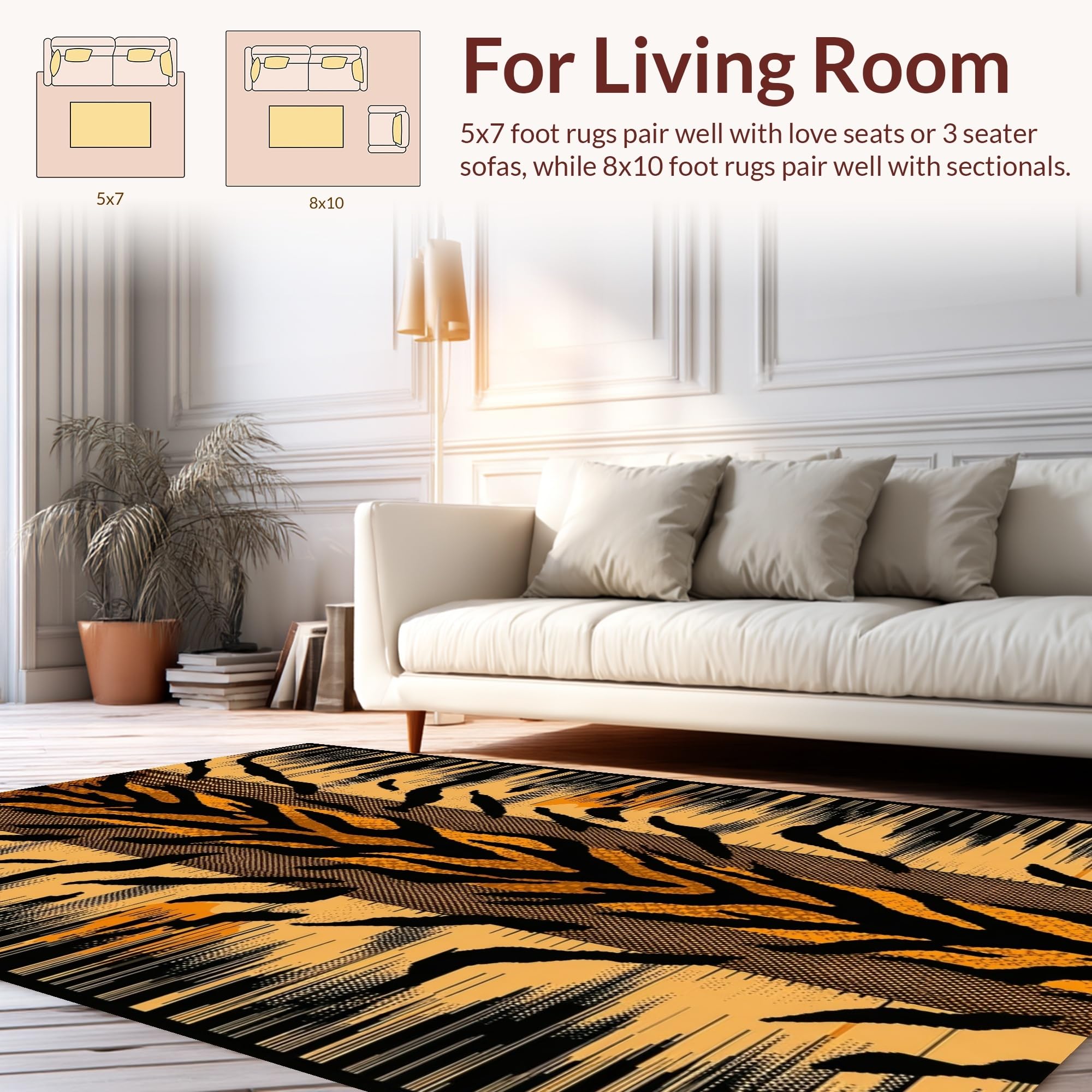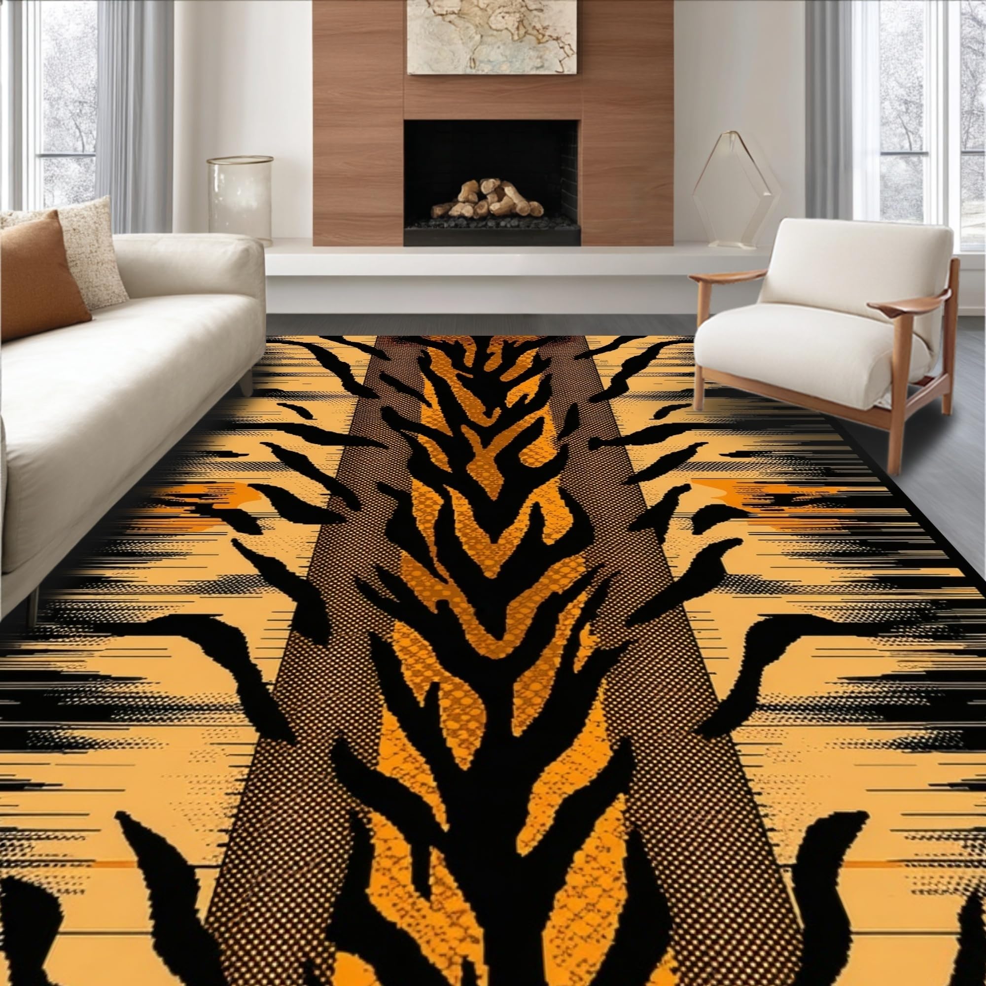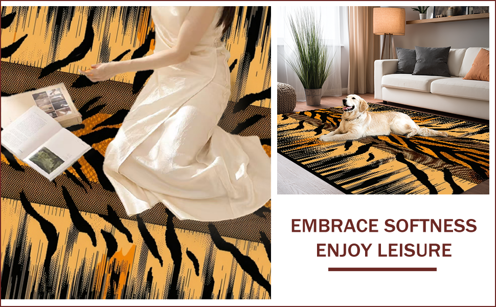 Ultra Soft Area Rug, Non Slip, Stain Resistant, Washable Area Rugs for Living Room, Bedroom, Bold Tiger Print Decorative Accent(Beige) Overview: