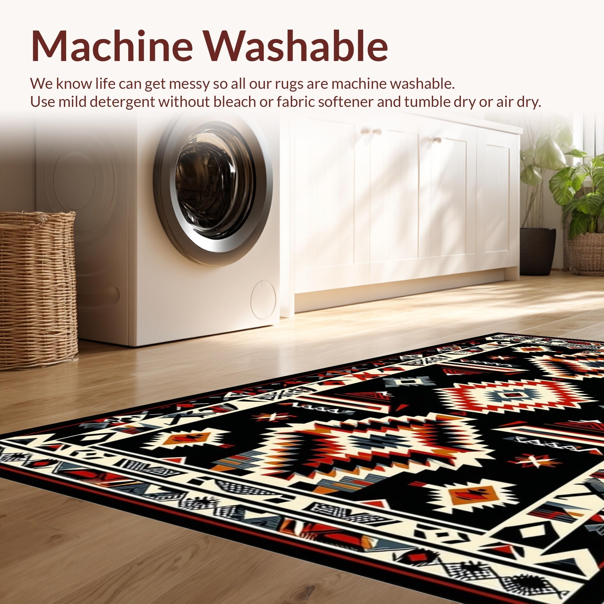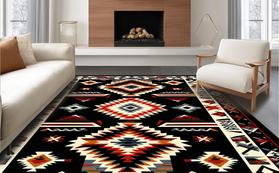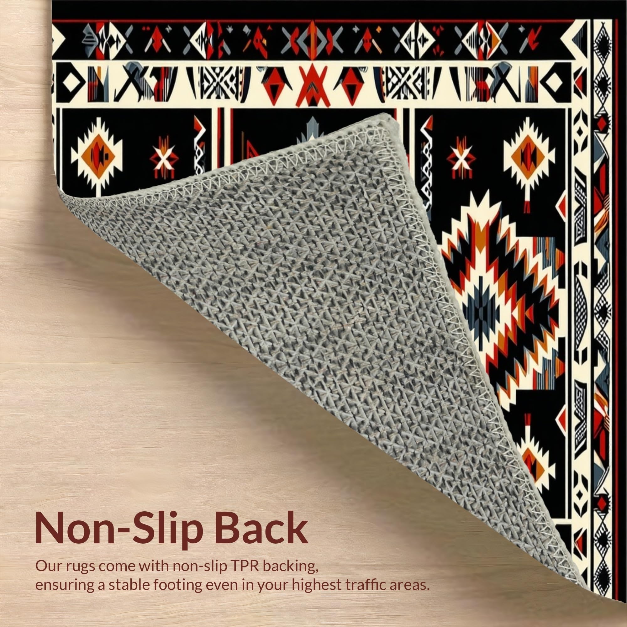 Ultra Soft Area Rug, Non Slip, Stain Resistant, Washable Area Rugs for Living Room, Bedroom, Bold Tribal Contrast Composition(Black) Overview: