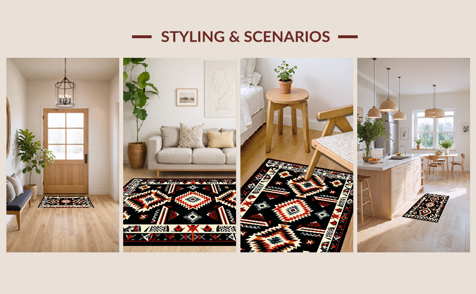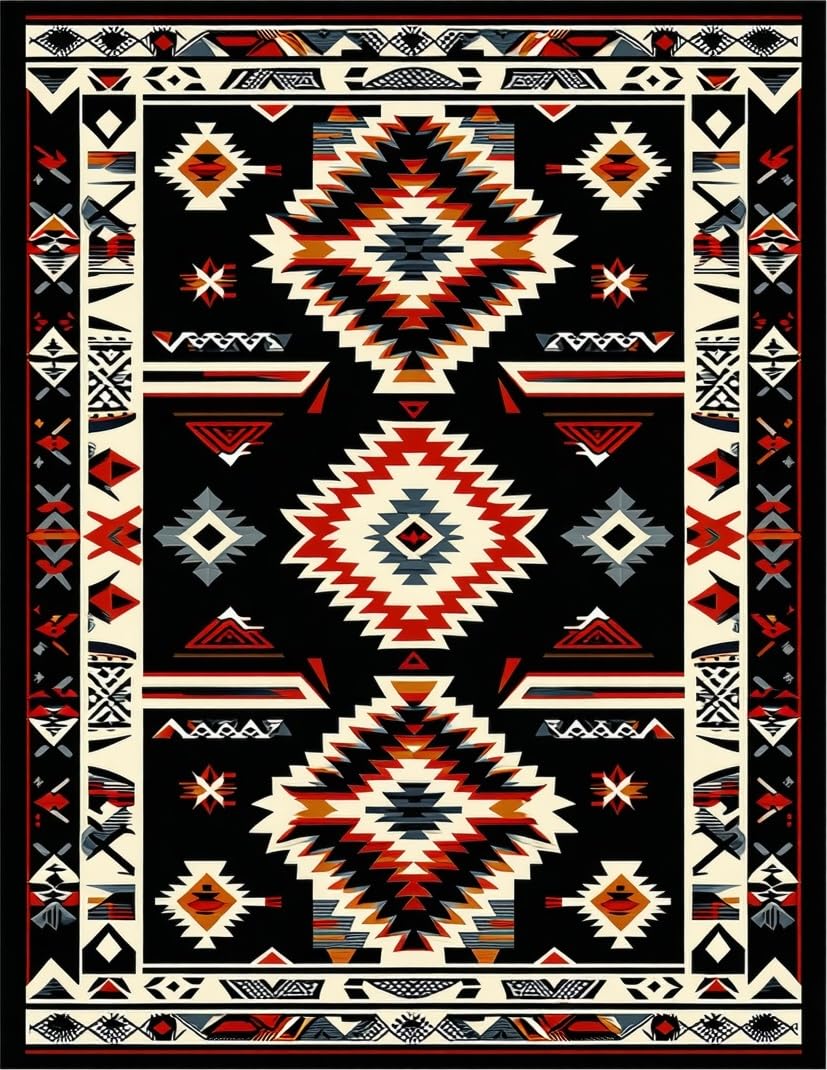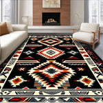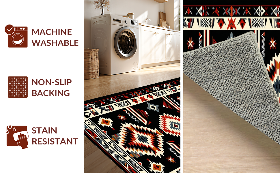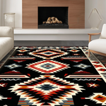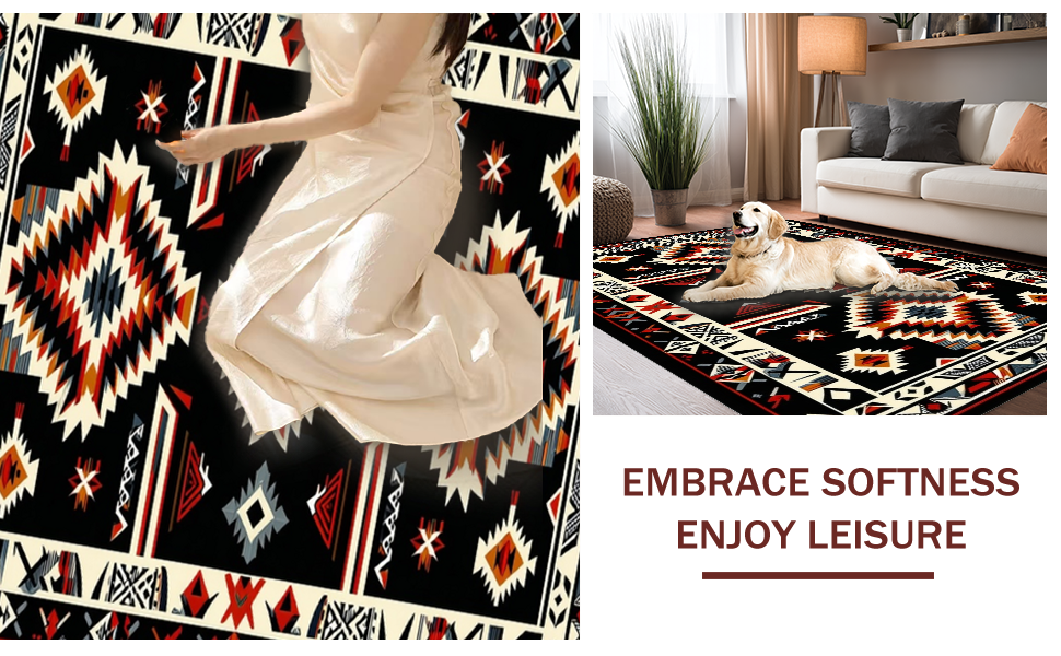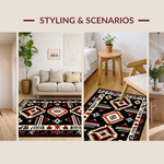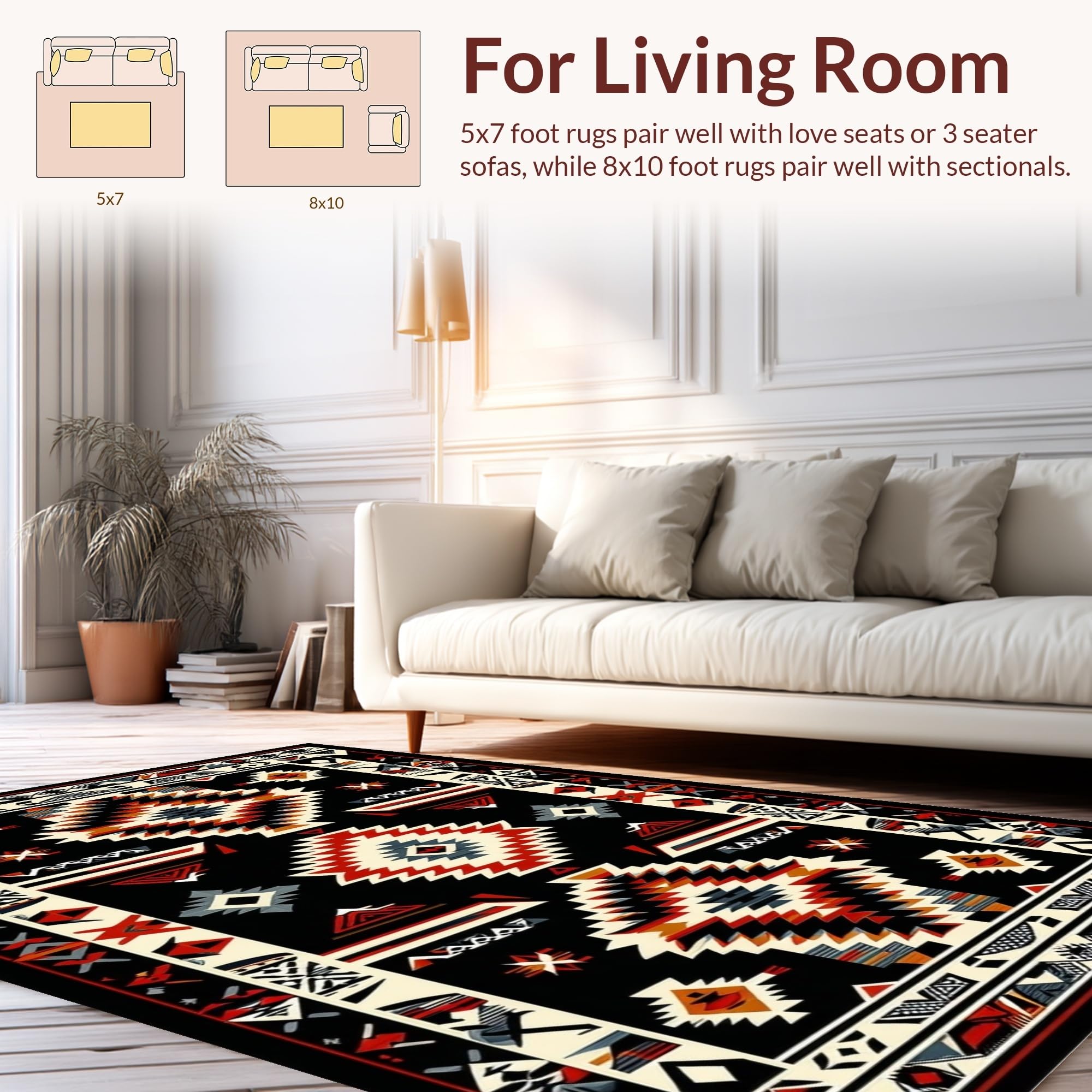 Ultra Soft Area Rug, Non Slip, Stain Resistant, Washable Area Rugs for Living Room, Bedroom, Bold Tribal Contrast Composition(Black) Overview: