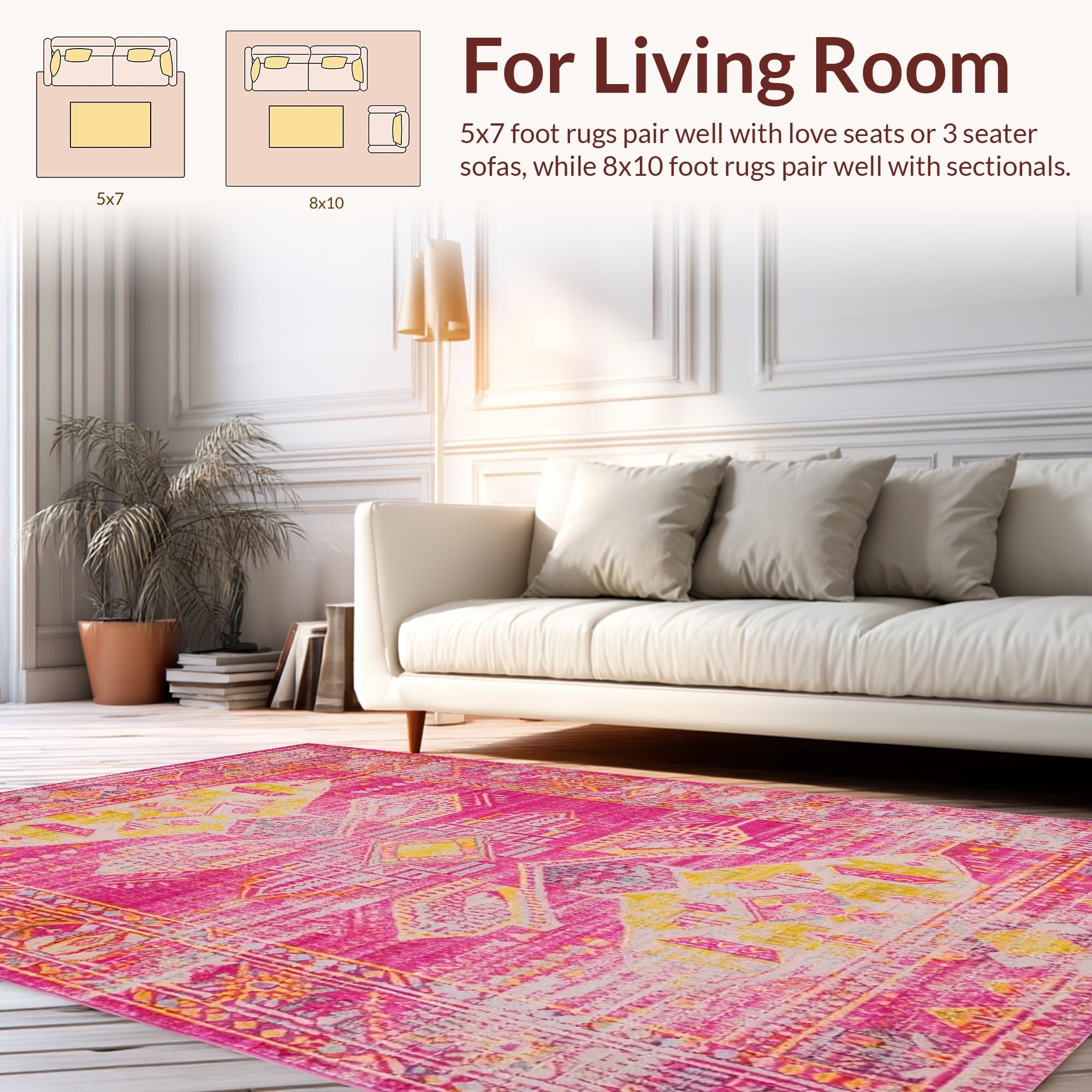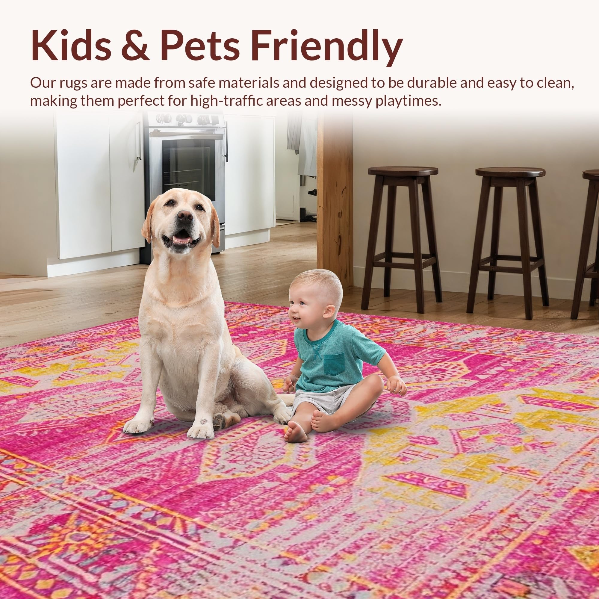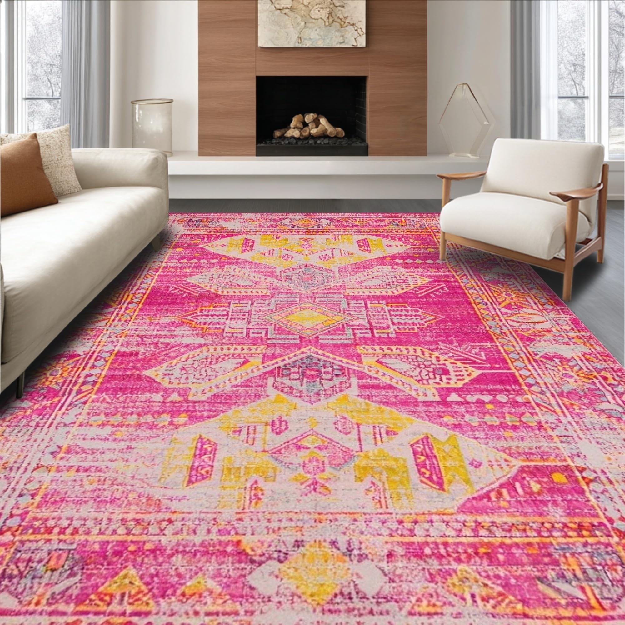 Ultra Soft Area Rug, Non Slip, Stain Resistant, Washable Area Rugs for Living Room, Bedroom, Bold Tribal Medallion Visual Appeal(Pink) Overview:
