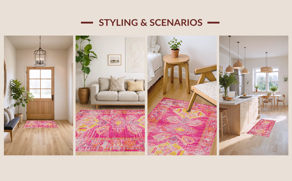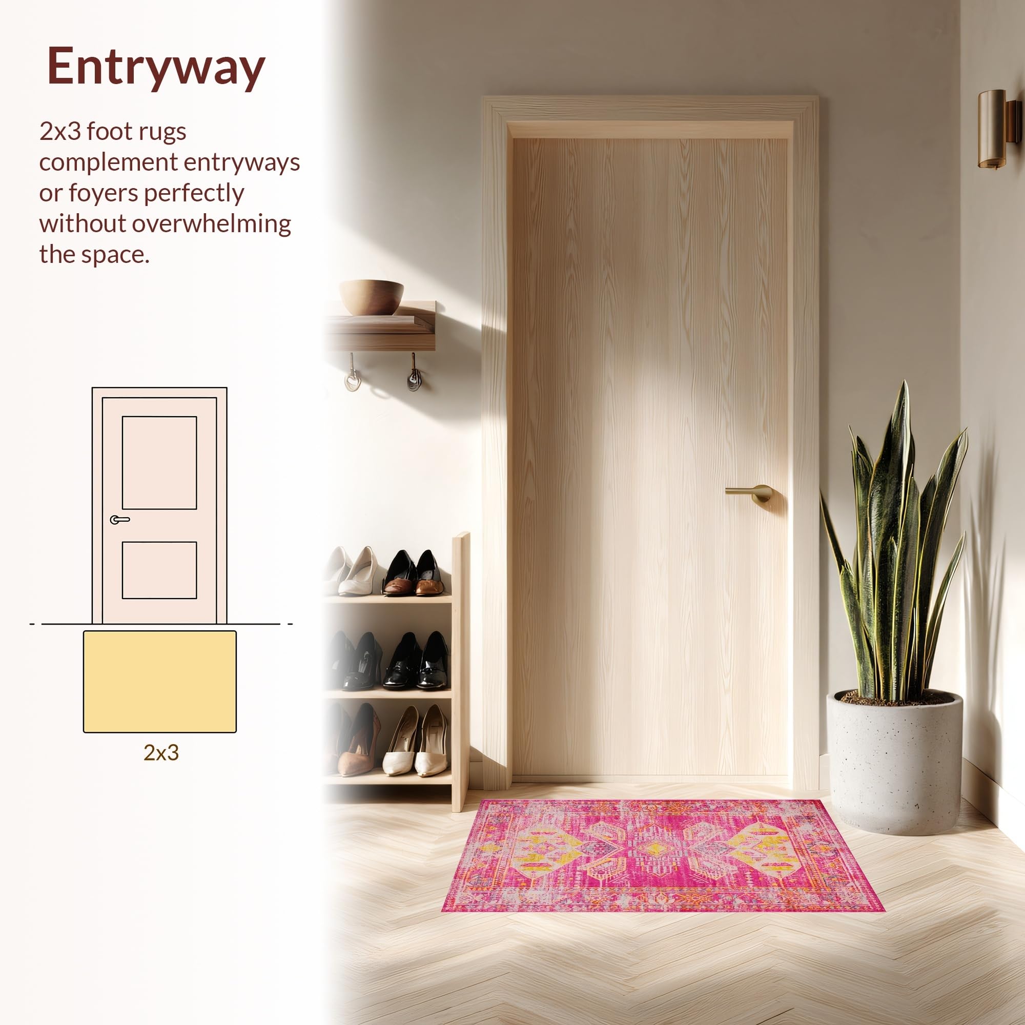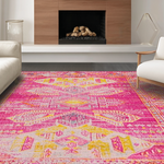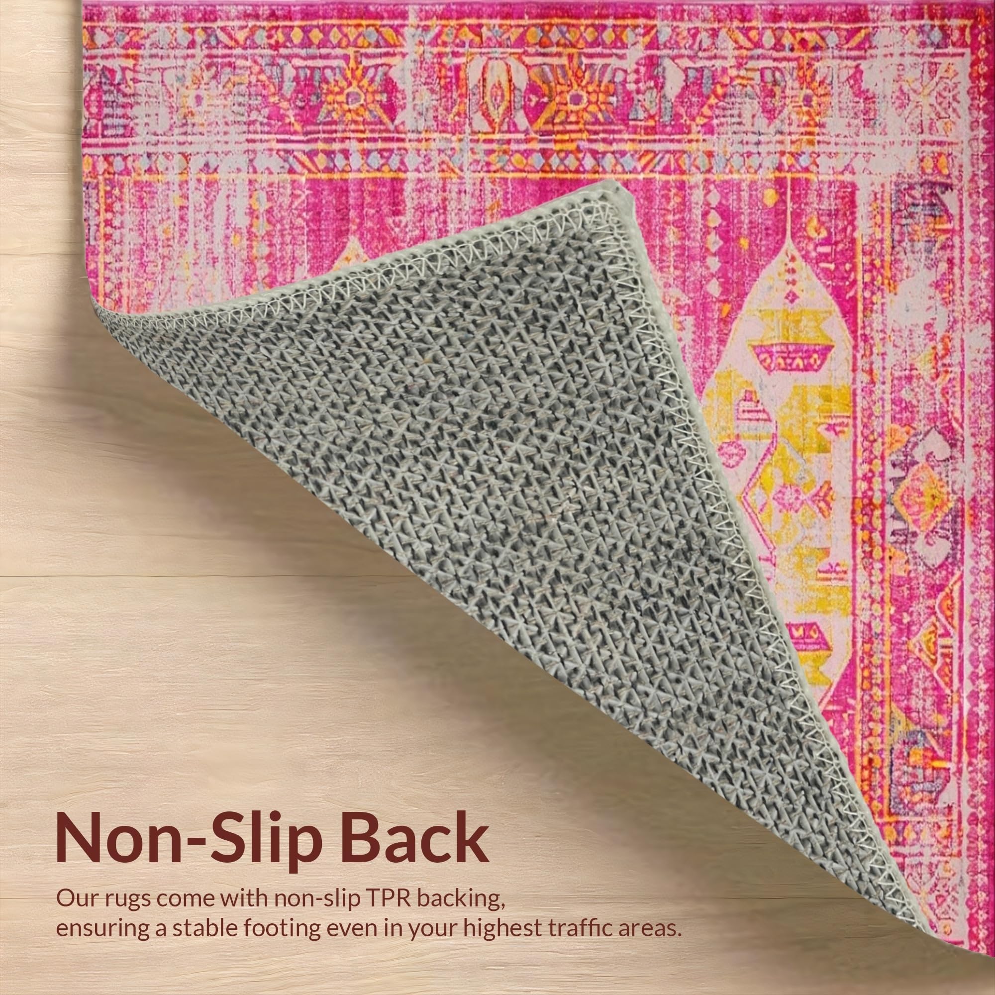 Ultra Soft Area Rug, Non Slip, Stain Resistant, Washable Area Rugs for Living Room, Bedroom, Bold Tribal Medallion Visual Appeal(Pink) Overview: