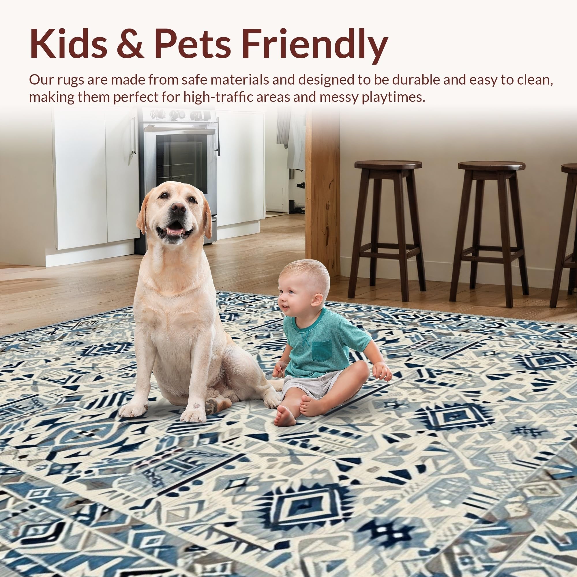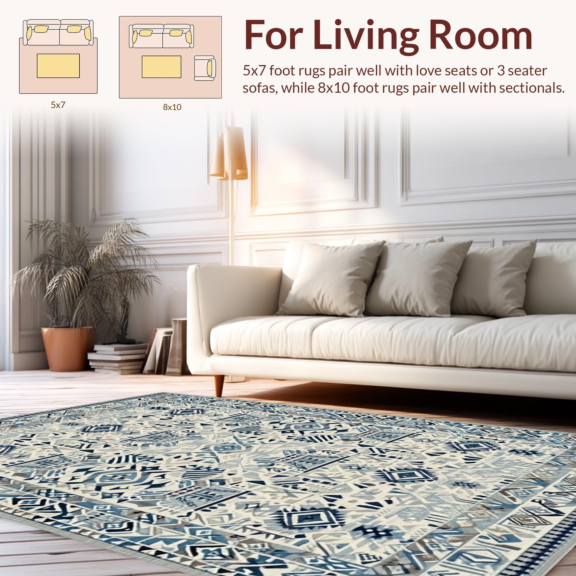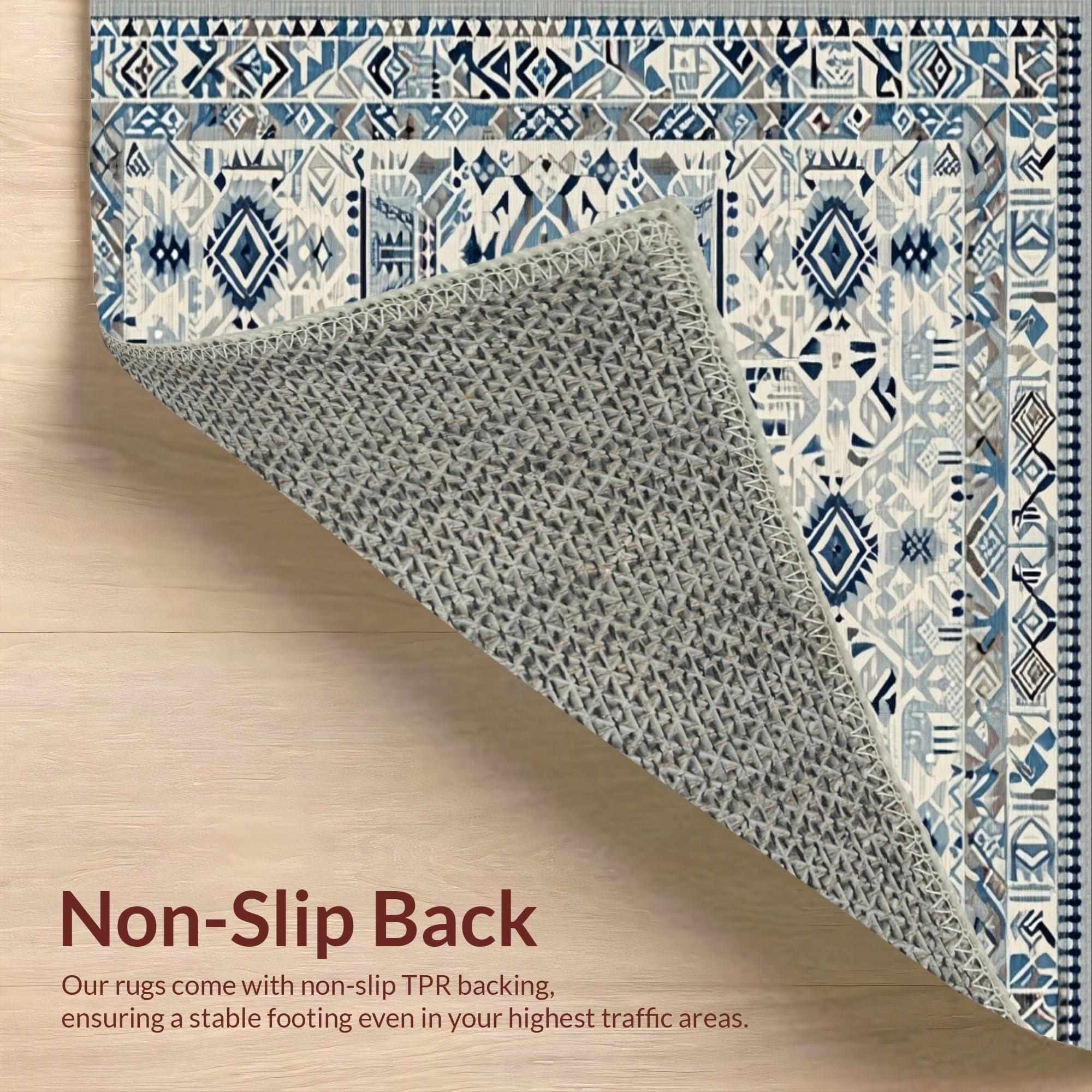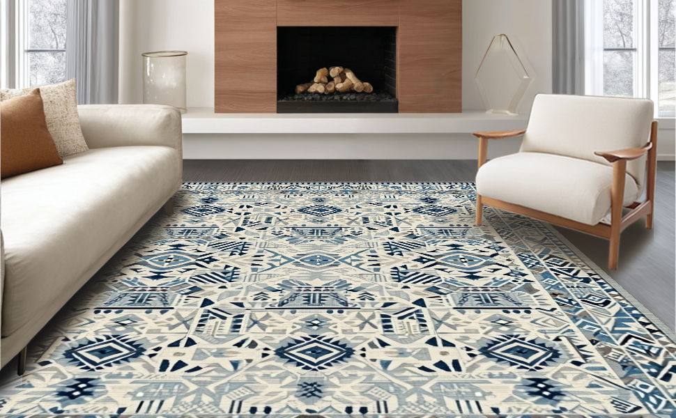 Ultra Soft Area Rug, Non Slip, Stain Resistant, Washable Area Rugs for Living Room, Bedroom, Bold Vintage Diamond Arrangement(Blue) Overview: