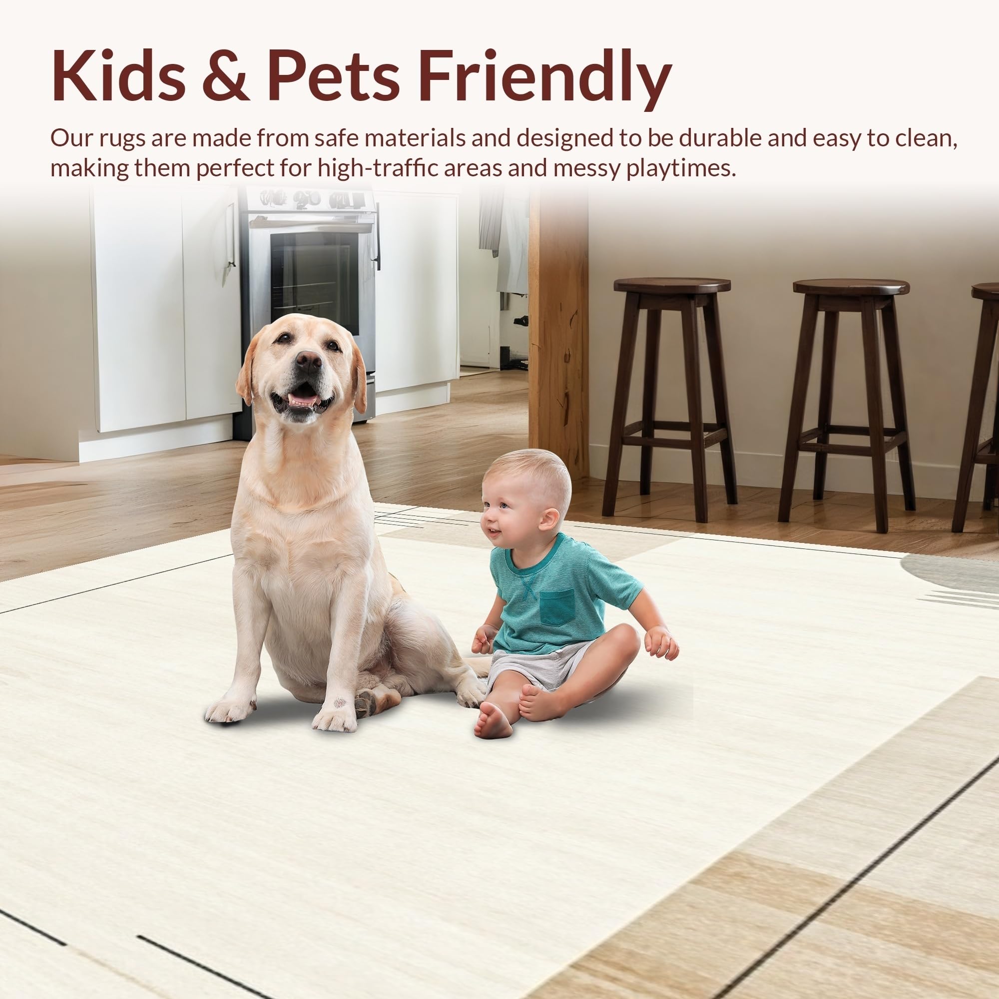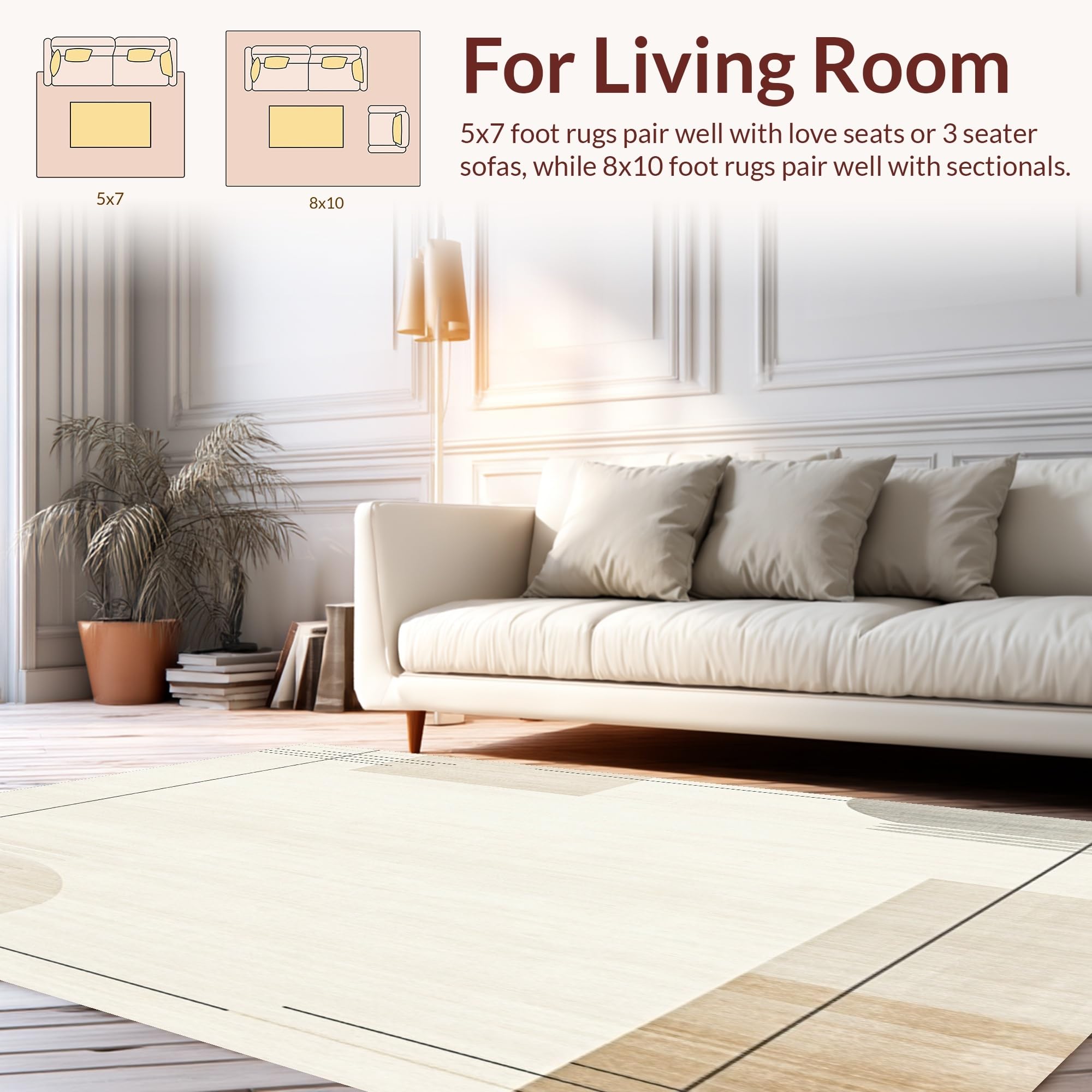 Ultra Soft Area Rug, Non Slip, Stain Resistant, Washable Area Rugs for Living Room, Bedroom, Bordered Accent Area Modern Low Pile Beige(Beige) Overview: