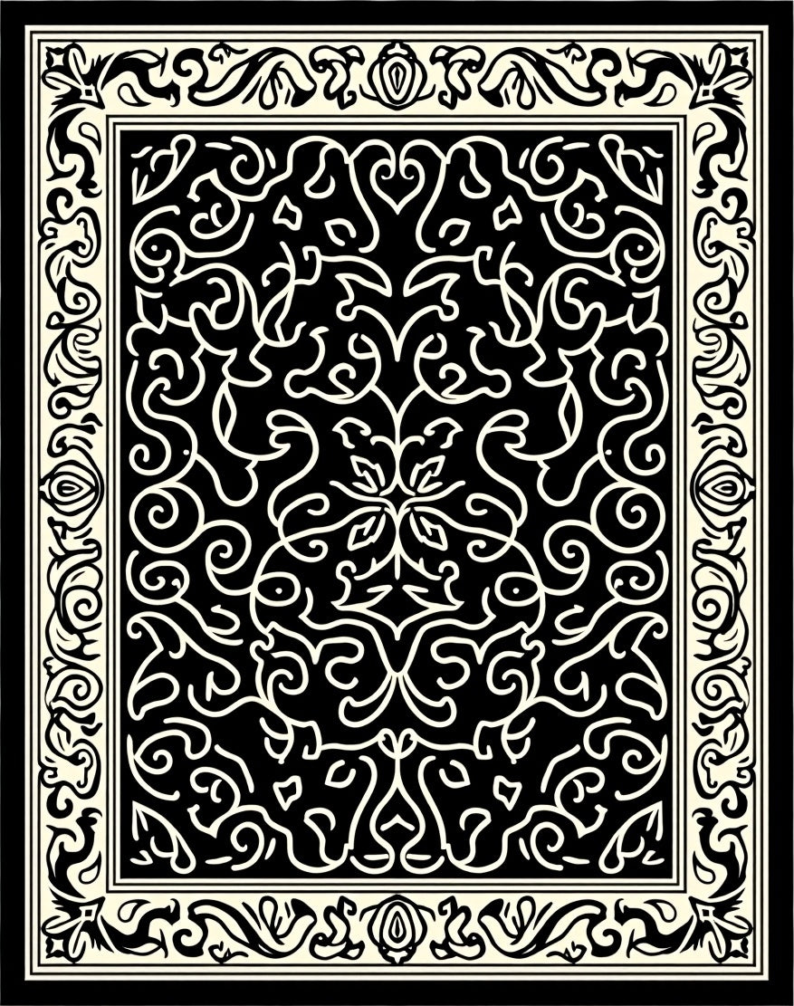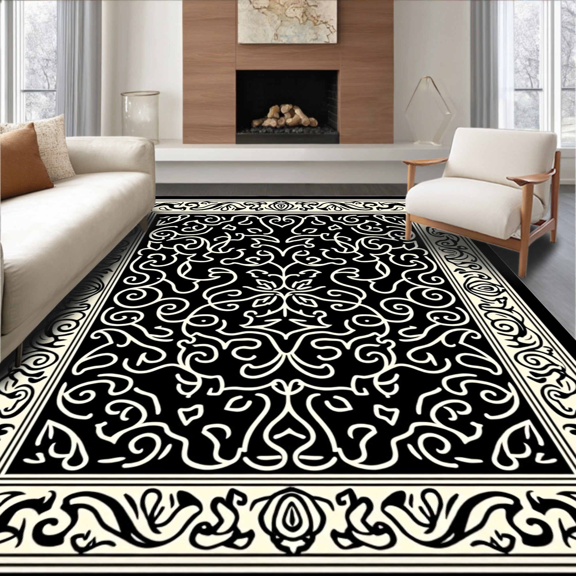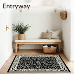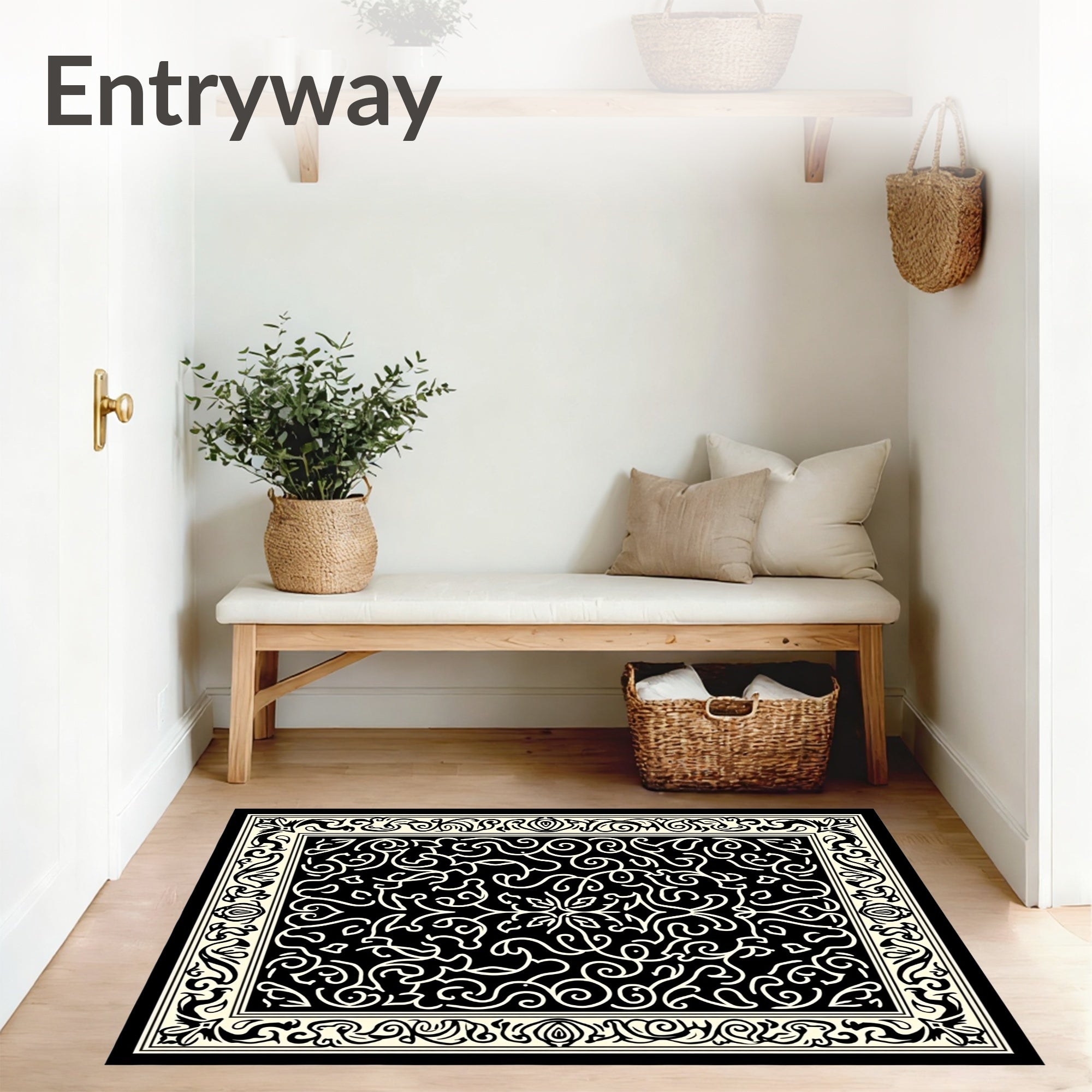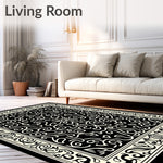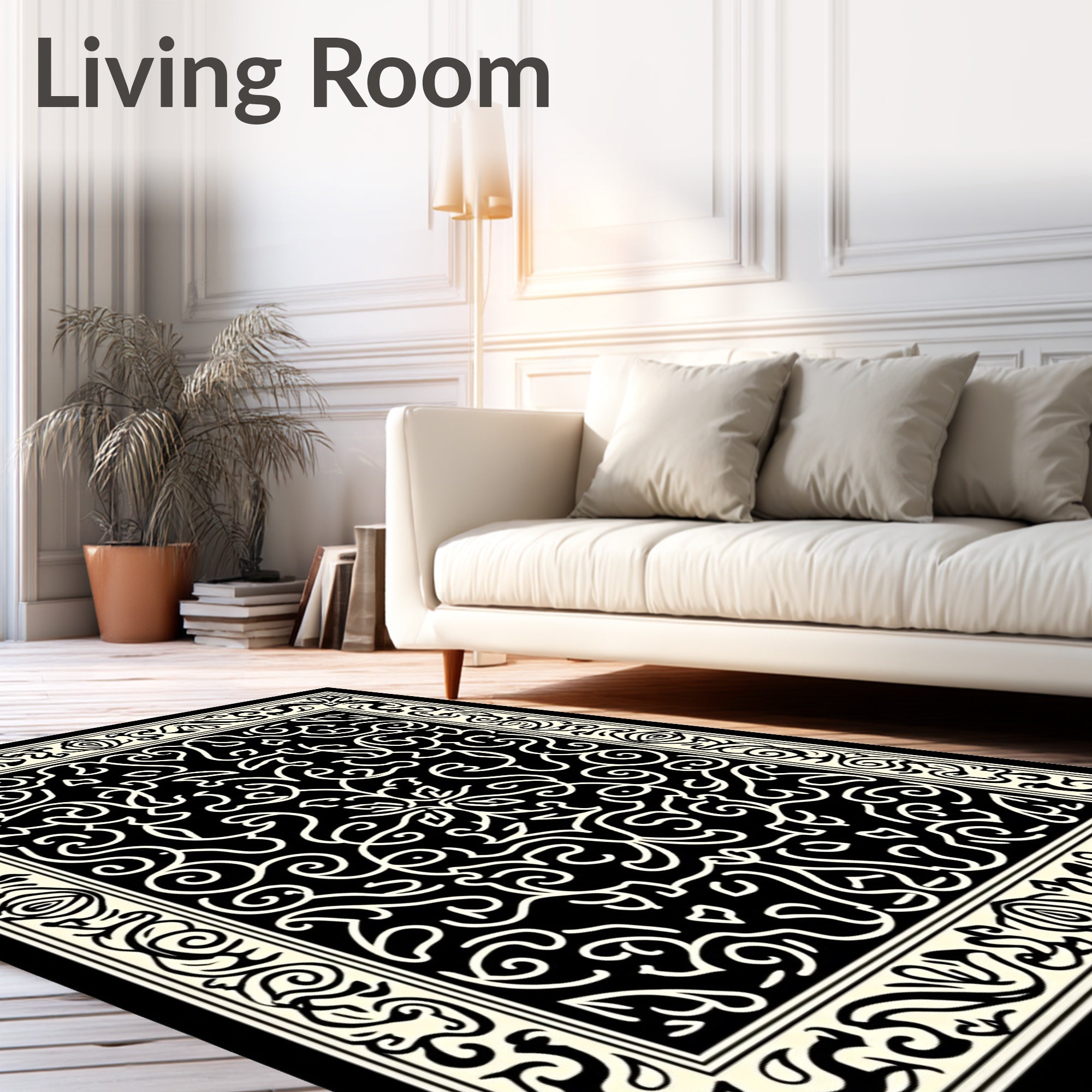 Ultra Soft Area Rug, Non Slip, Stain Resistant, Washable Area Rugs for Living Room, Bedroom, Botanical Arabesque Flourish with Stylized Vine Scrolls(Black) Overview: