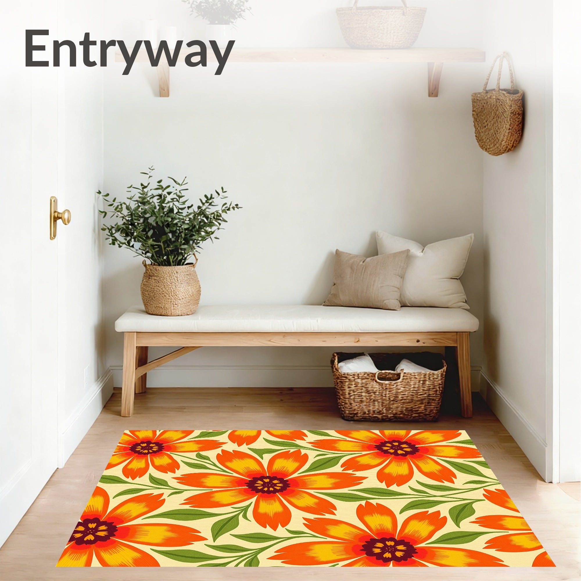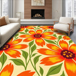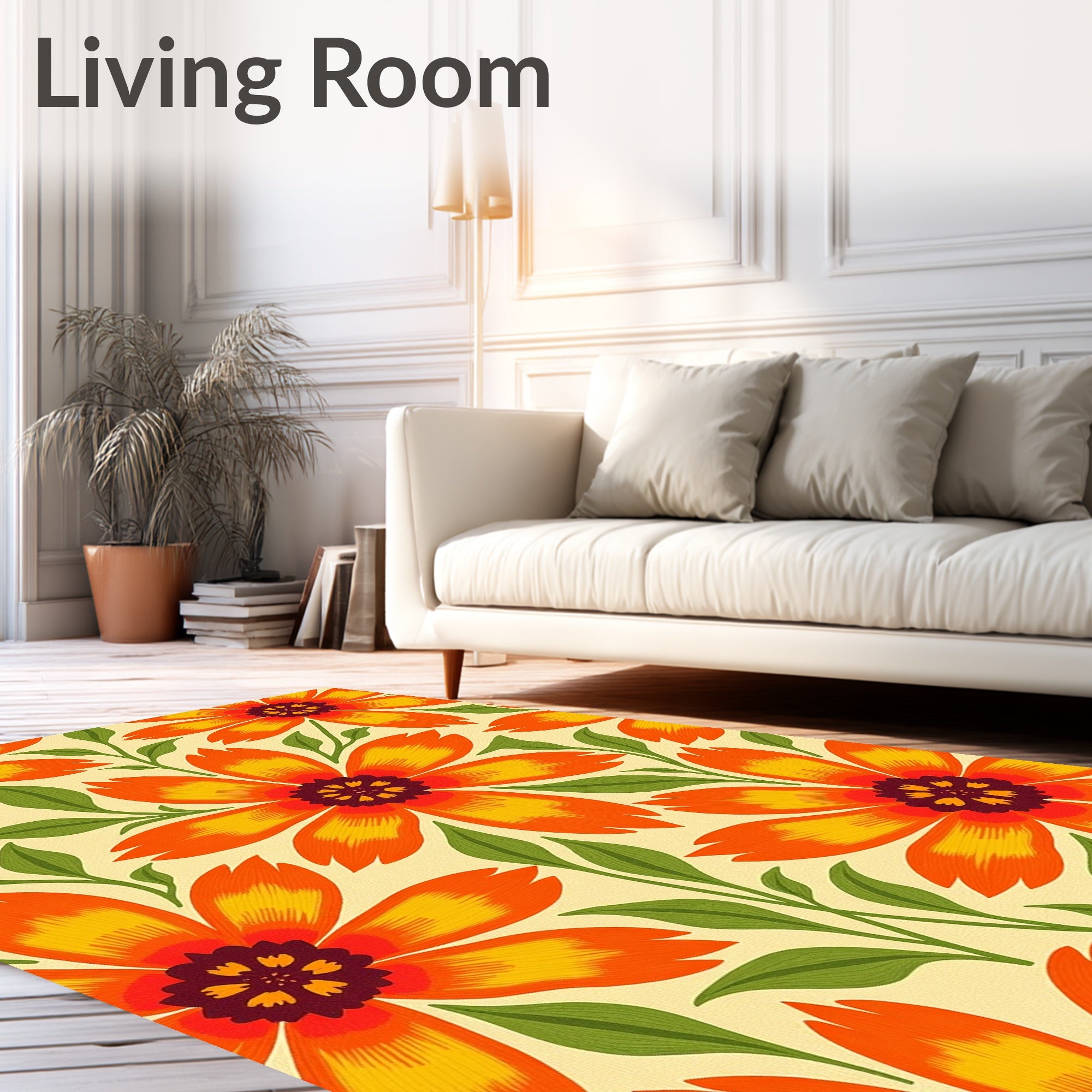 Ultra Soft Area Rug, Non Slip, Stain Resistant, Washable Area Rugs for Living Room, Bedroom, Botanical Bloom Showcasing Layered Petal Silhouettes(Orange) Overview: