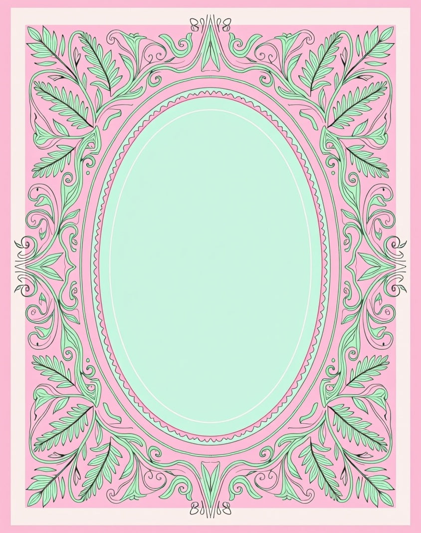 Botanical Fern Medallion with Flowing Vines and Leaf Motifs(Pink)