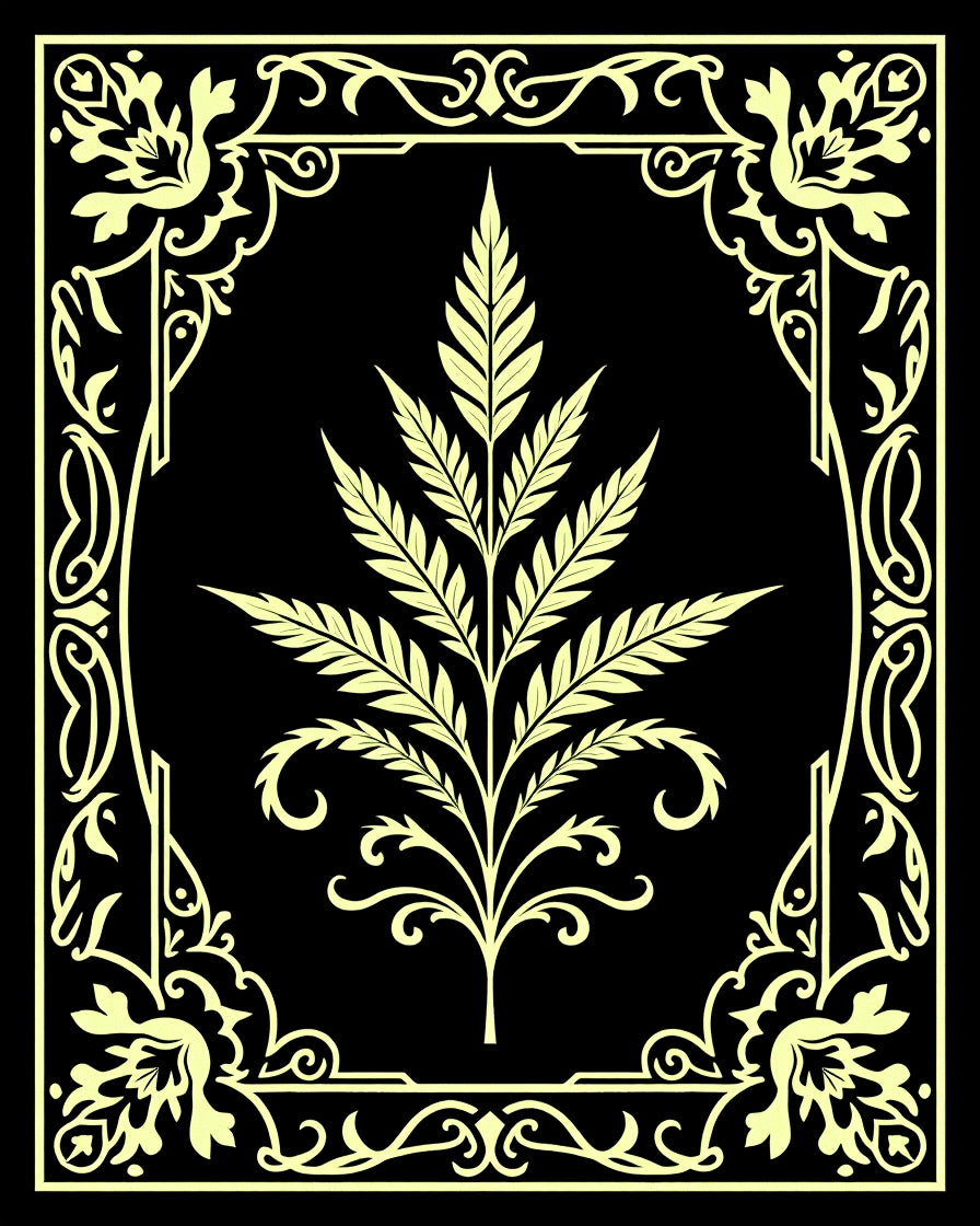 Botanical Fern Medallion with Intricate Scrollwork Motifs(Black)