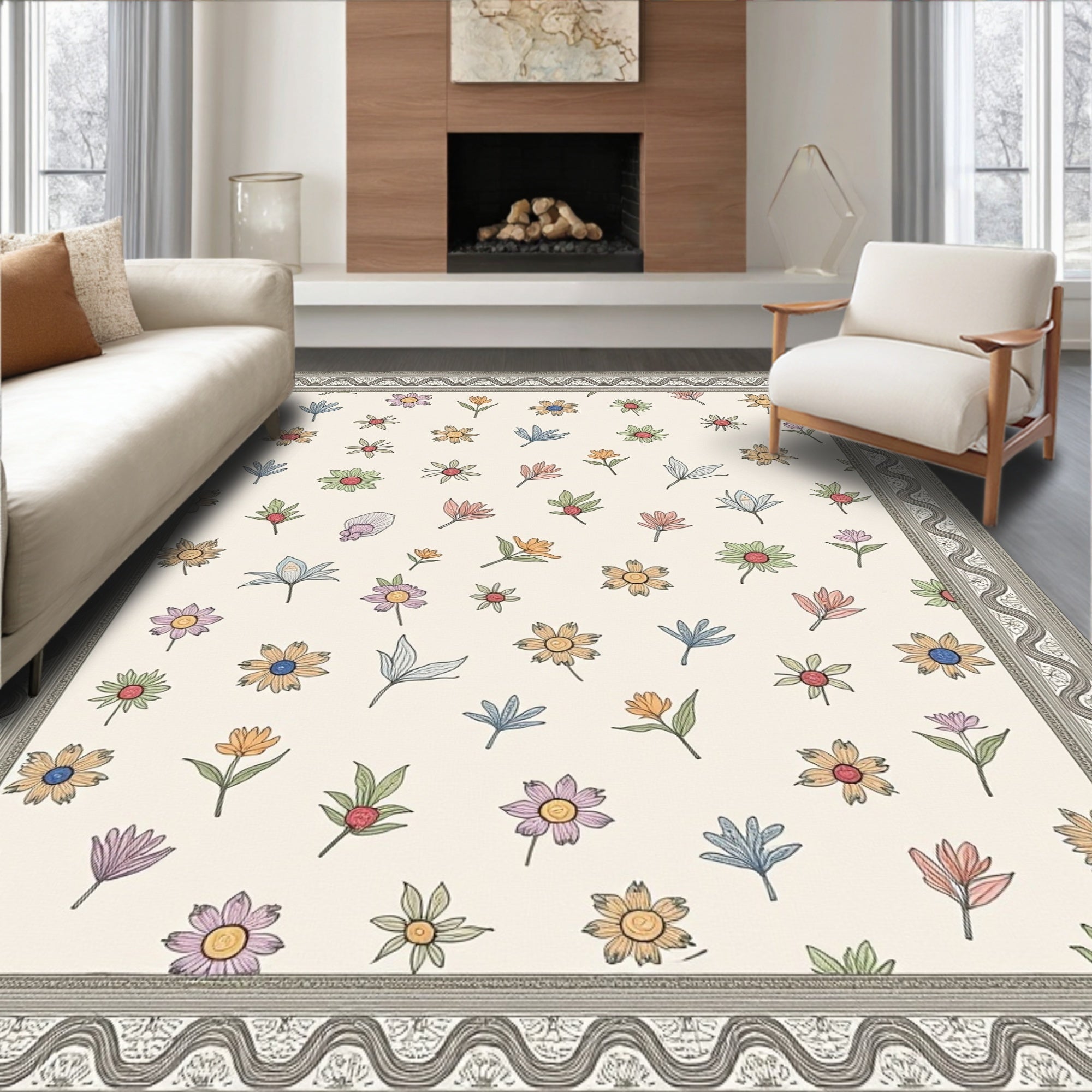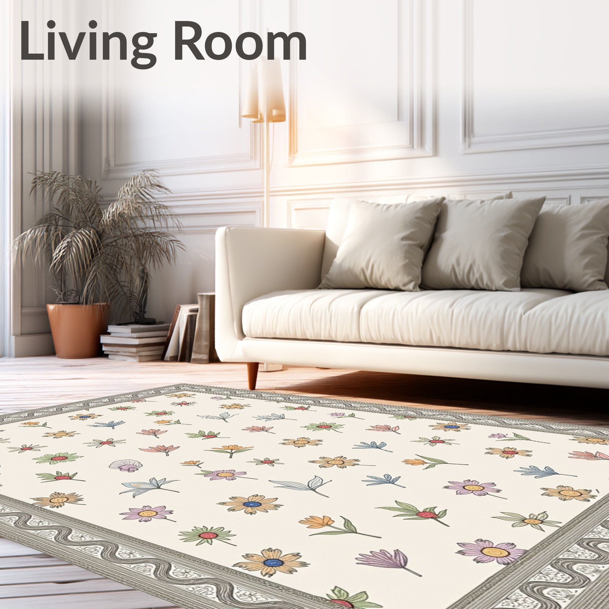 Ultra Soft Area Rug, Non Slip, Stain Resistant, Washable Area Rugs for Living Room, Bedroom, Botanical Garden Flourish Antiqued Distressed Heirloom(Beige) Overview: