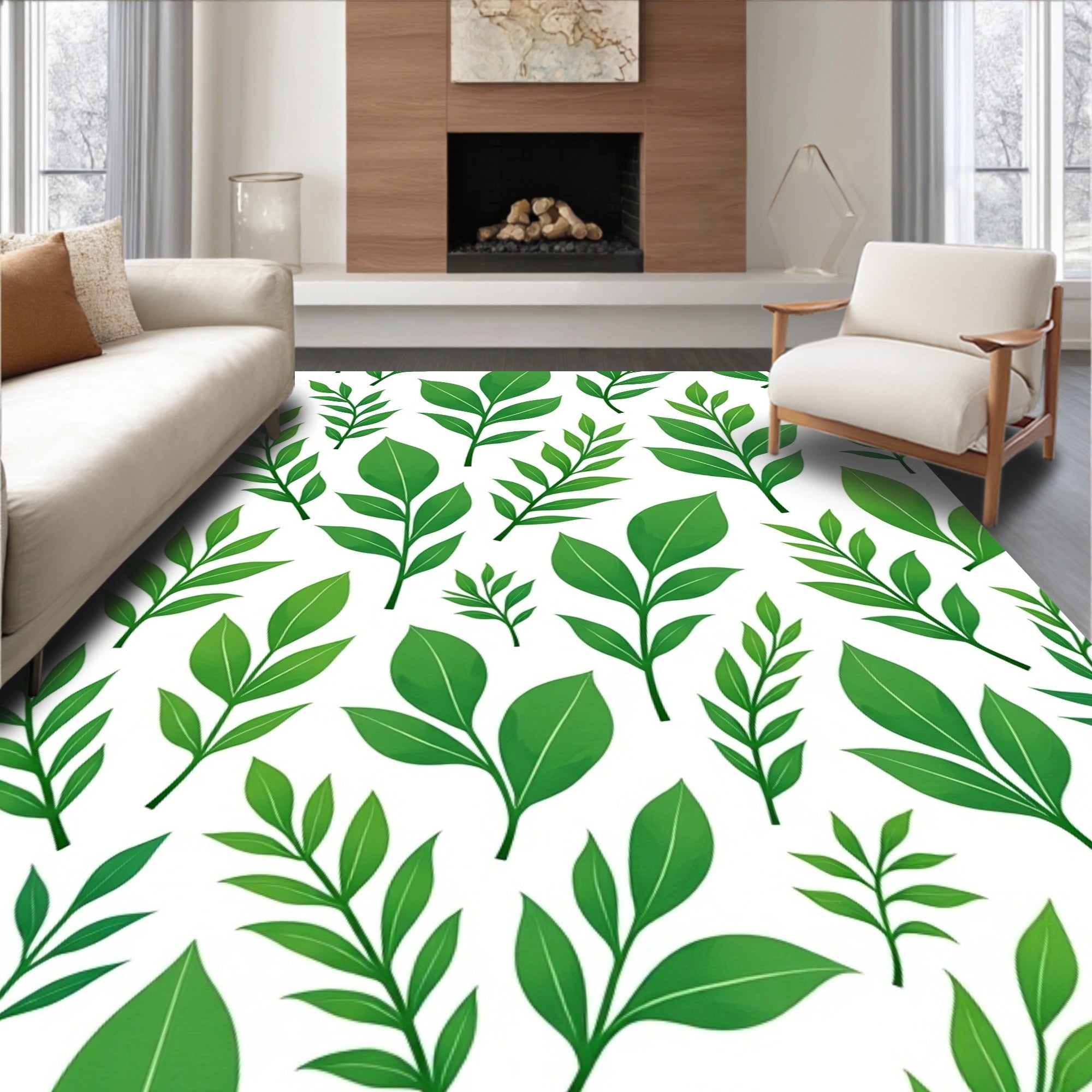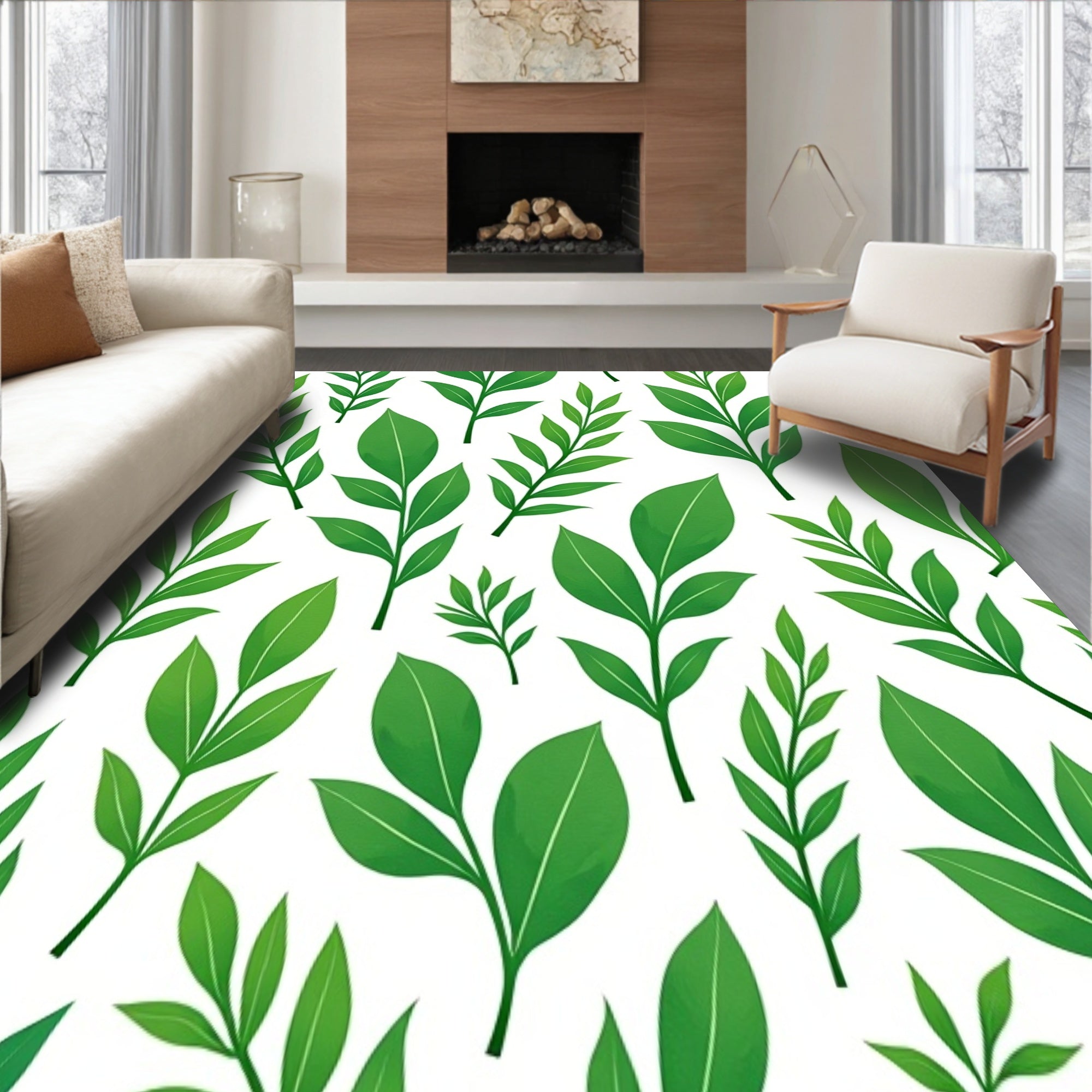 Ultra Soft Area Rug, Non Slip, Stain Resistant, Washable Area Rugs for Living Room, Bedroom, Botanical Garden Leaves Branches Nature Inspired Foliage(Green) Overview:
