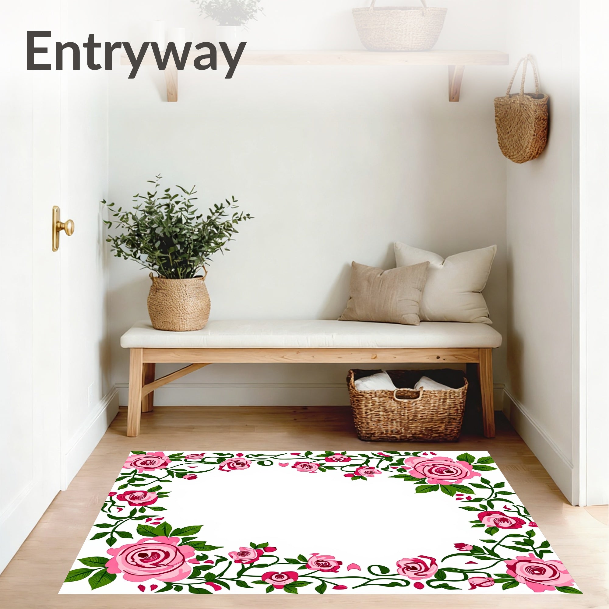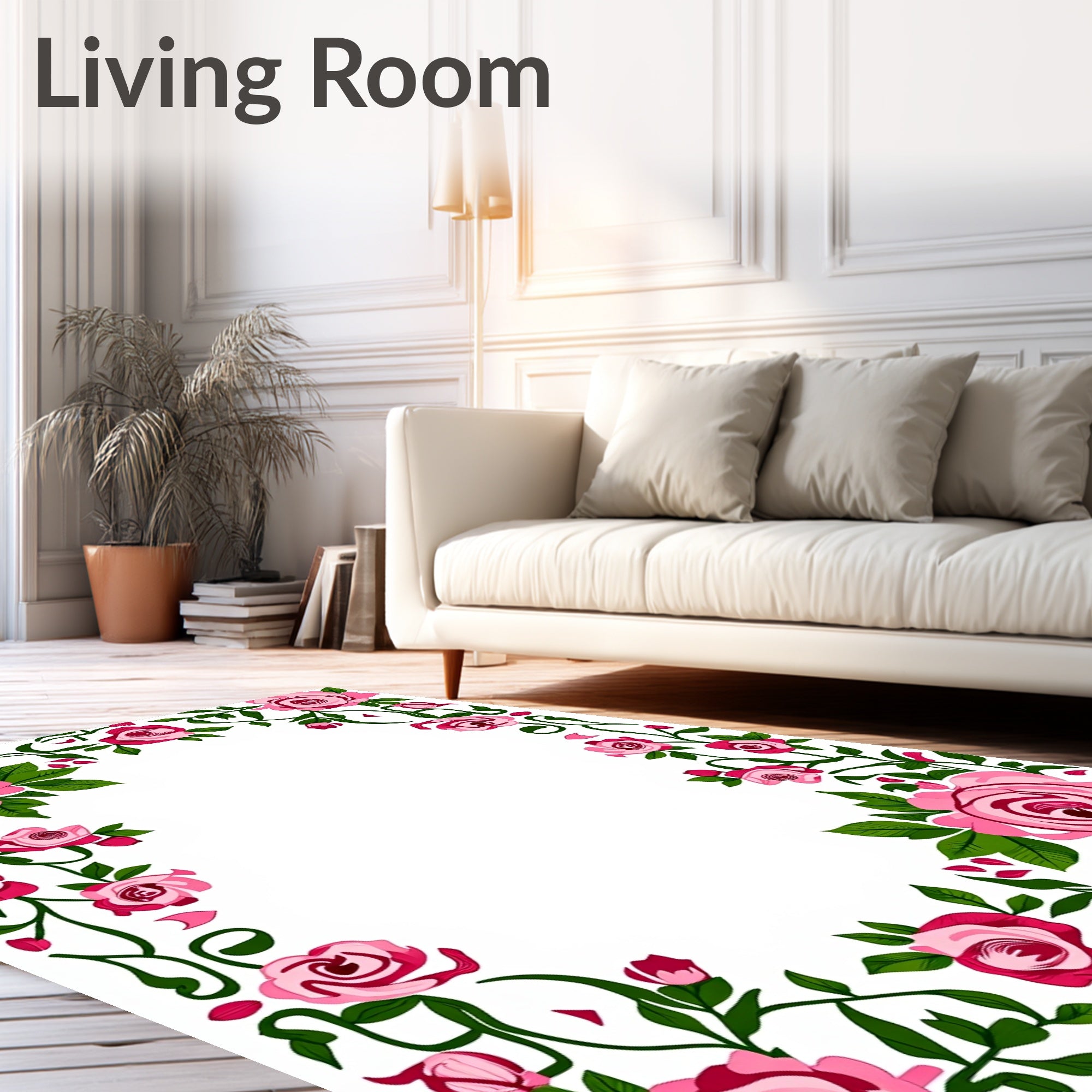 Ultra Soft Area Rug, Non Slip, Stain Resistant, Washable Area Rugs for Living Room, Bedroom, Botanical Garden Tapestry with Blooming Rose Vines(Pink) Overview: