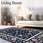 Ultra Soft Area Rug, Non Slip, Stain Resistant, Washable Area Rugs for Living Room, Bedroom, Botanical Garden Tapestry With Vintage Artistic Flourishes(Blue) Overview: