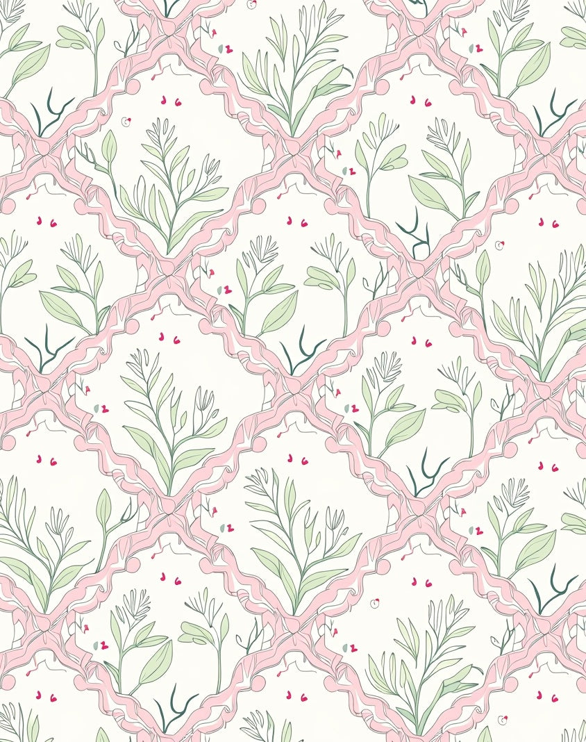 Botanical Garden Vine Trellis with Delicate Leaf Silhouettes(Pink)