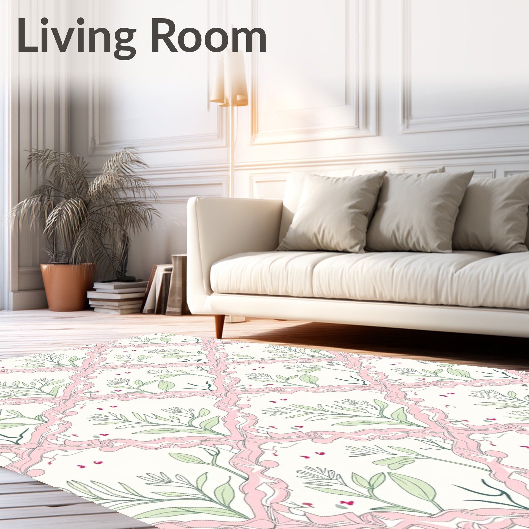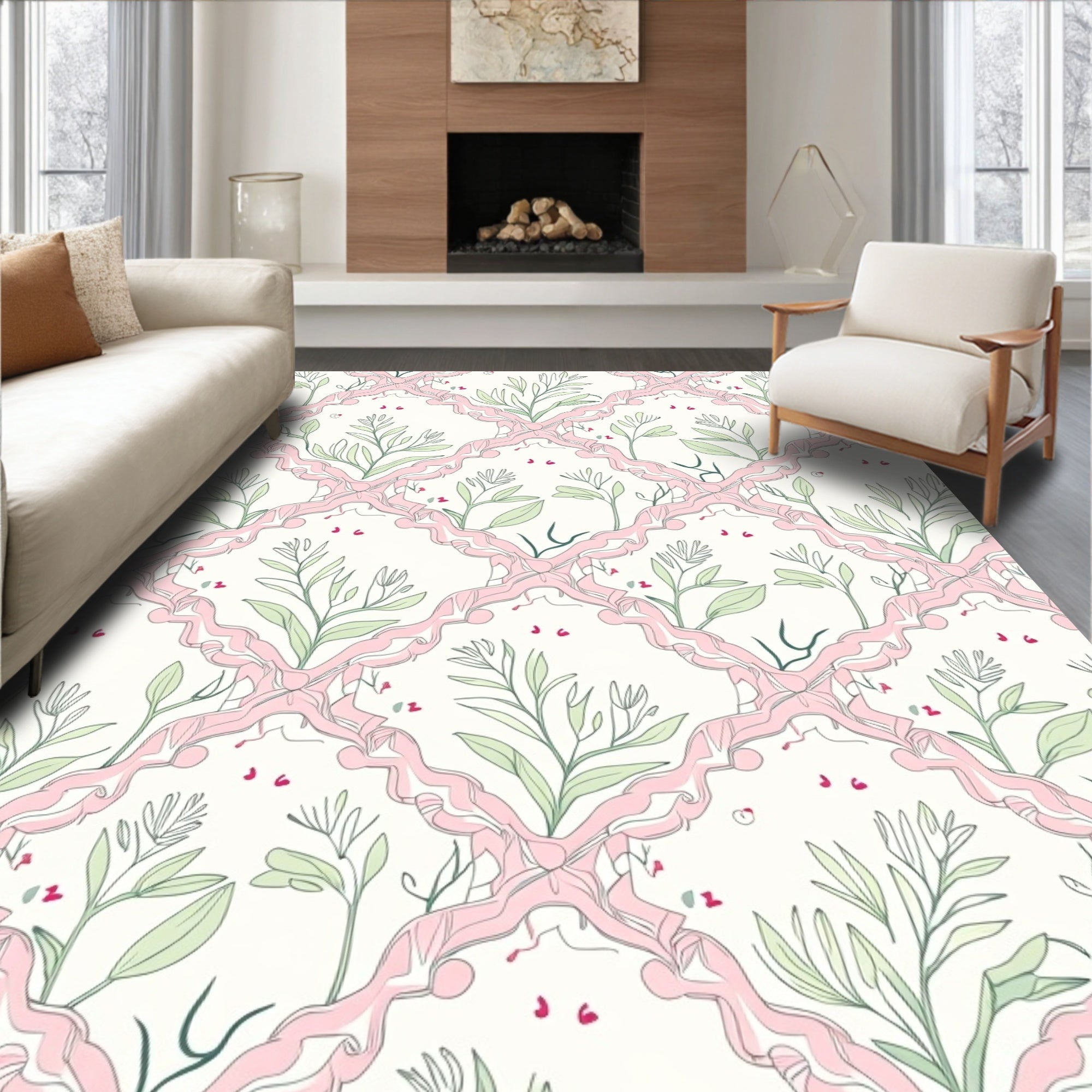 Ultra Soft Area Rug, Non Slip, Stain Resistant, Washable Area Rugs for Living Room, Bedroom, Botanical Garden Vine Trellis with Delicate Leaf Silhouettes(Pink) Overview: