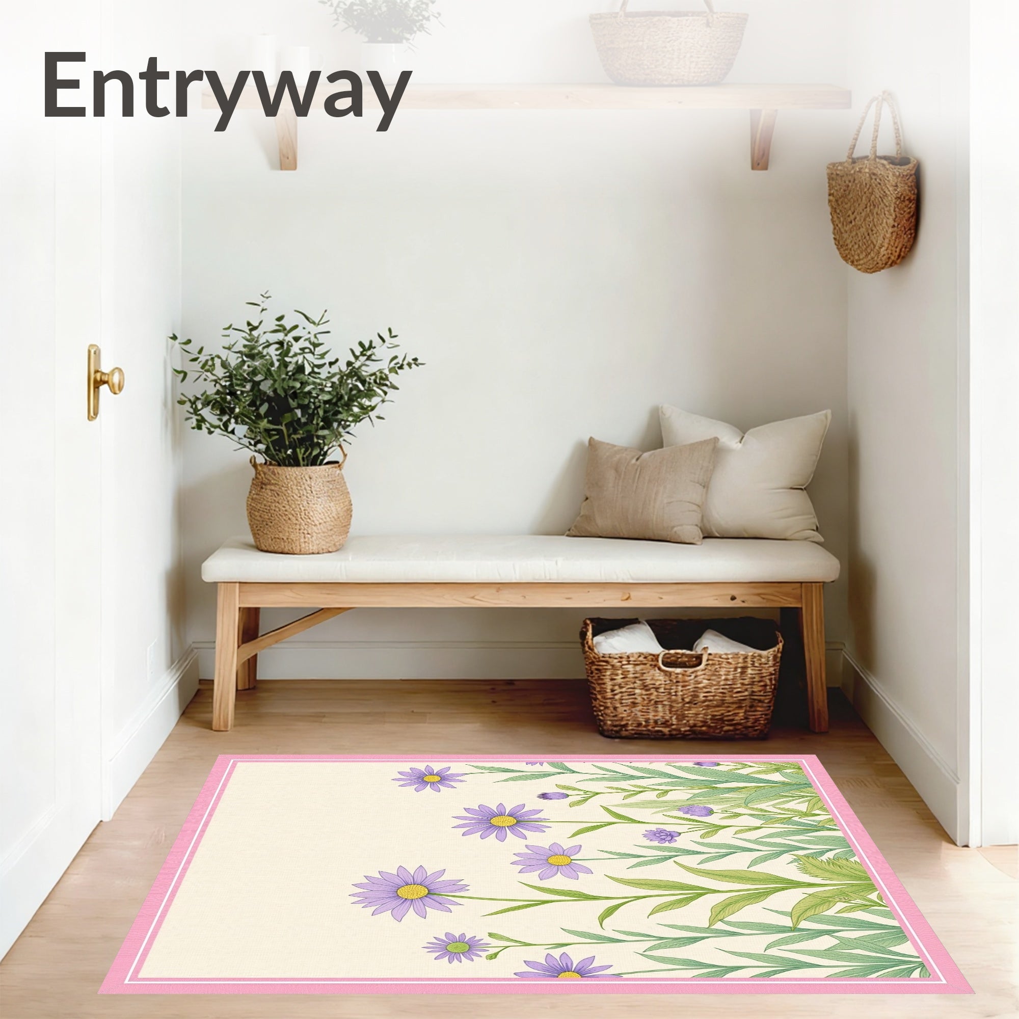 Ultra Soft Area Rug, Non Slip, Stain Resistant, Washable Area Rugs for Living Room, Bedroom, Botanical Garden Wildflower Collection Decorative(Ivory) Overview: