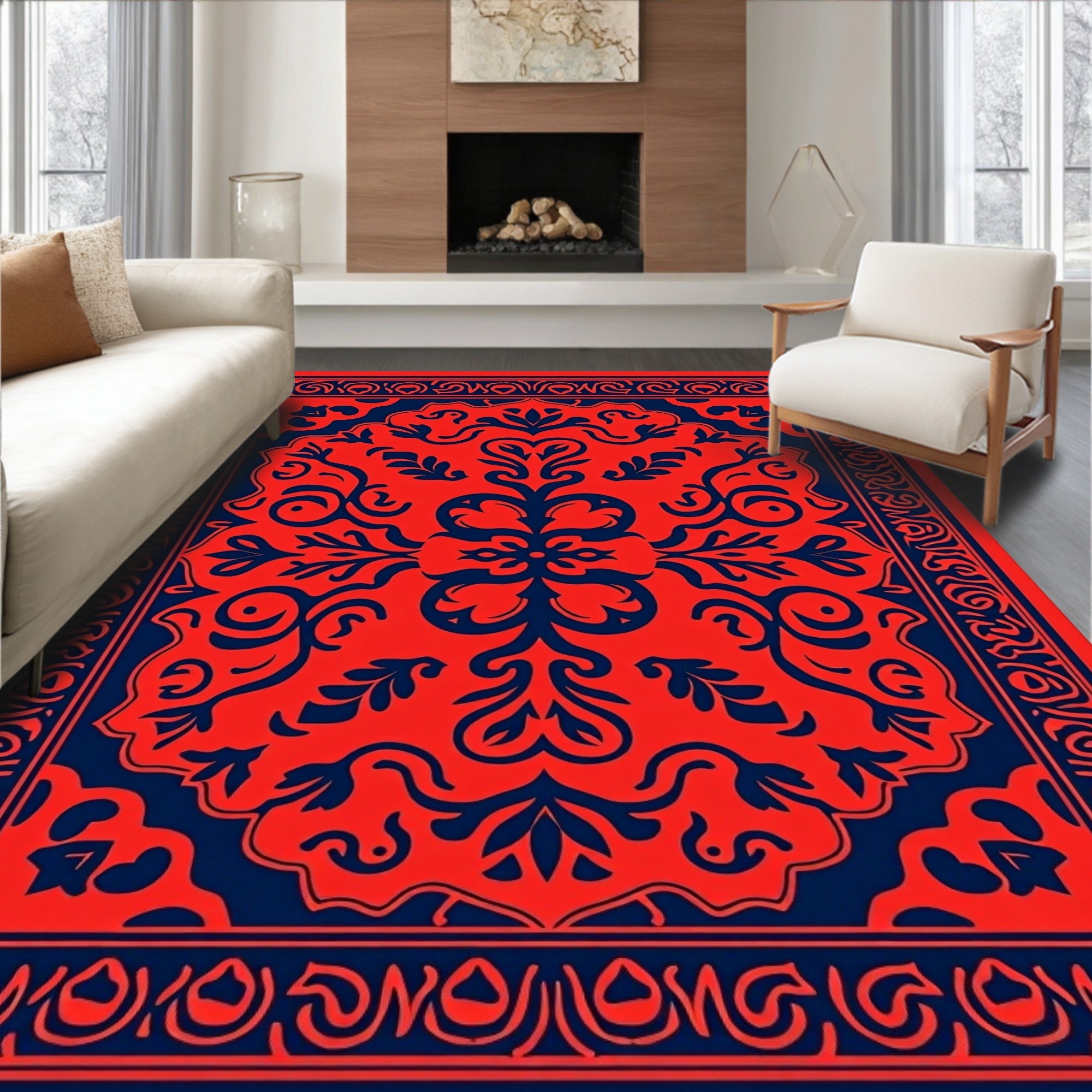 Ultra Soft Area Rug, Non Slip, Stain Resistant, Washable Area Rugs for Living Room, Bedroom, Botanical Interwoven Paisley Enchanting Artisan(Red) Overview:
